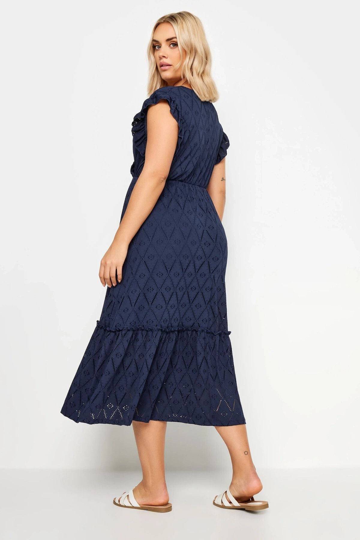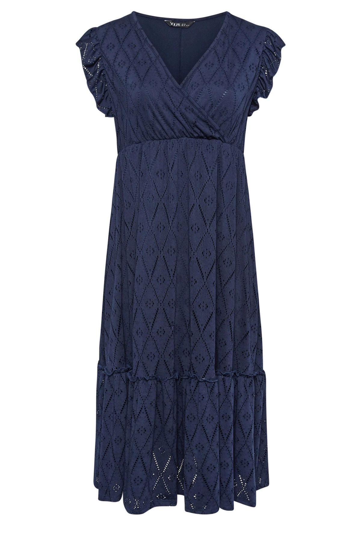 Büyük Beden V Yaka Kısa Fırfır Kol Dantel Detaylı Beli Lastikli Midi Elbise 303287