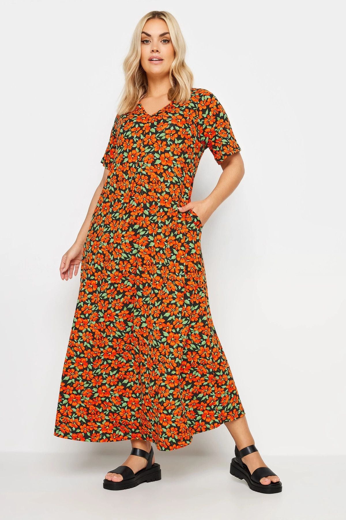 Büyük Beden V Yaka Kısa Kollu Cepli Uzun Elbise 137820
