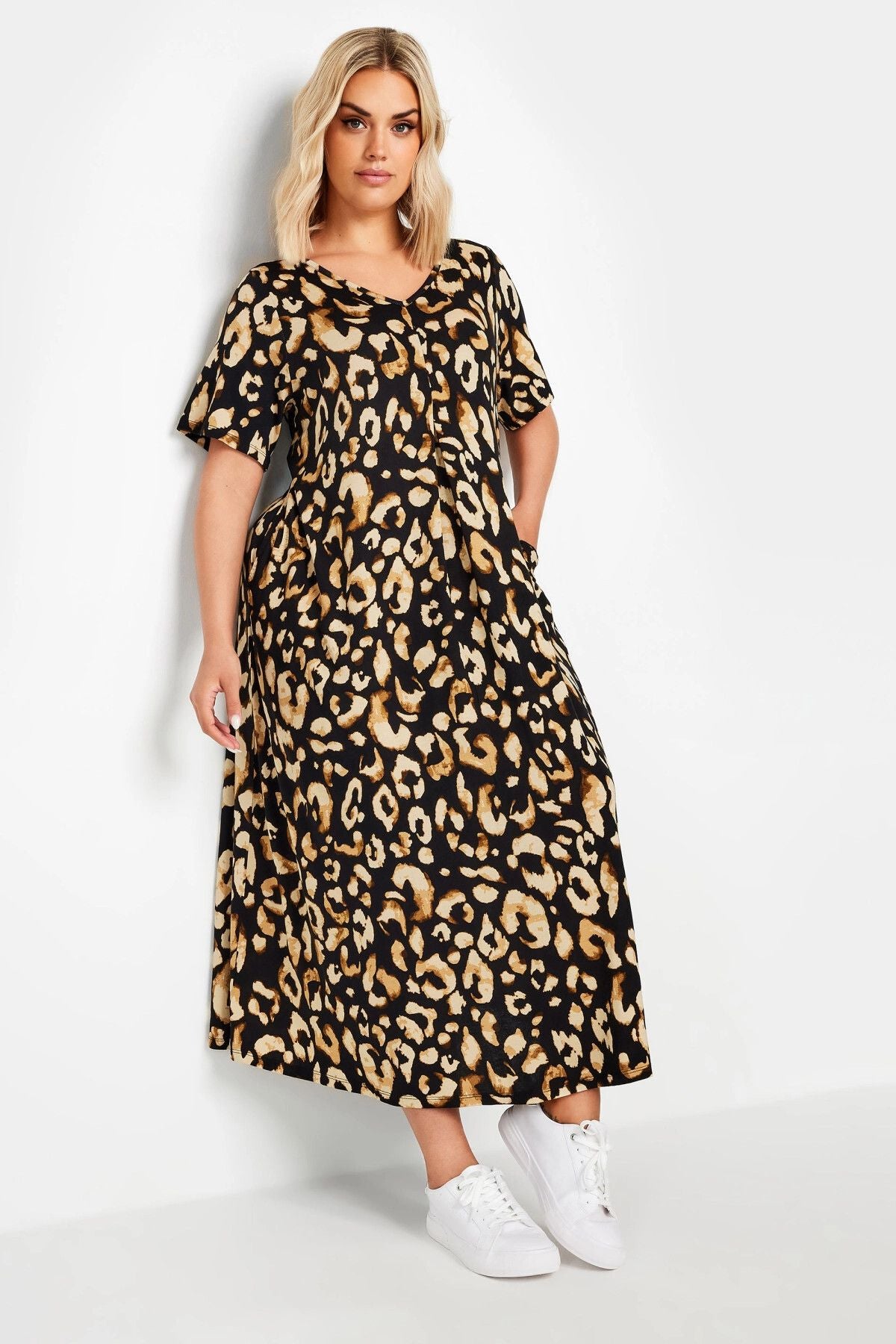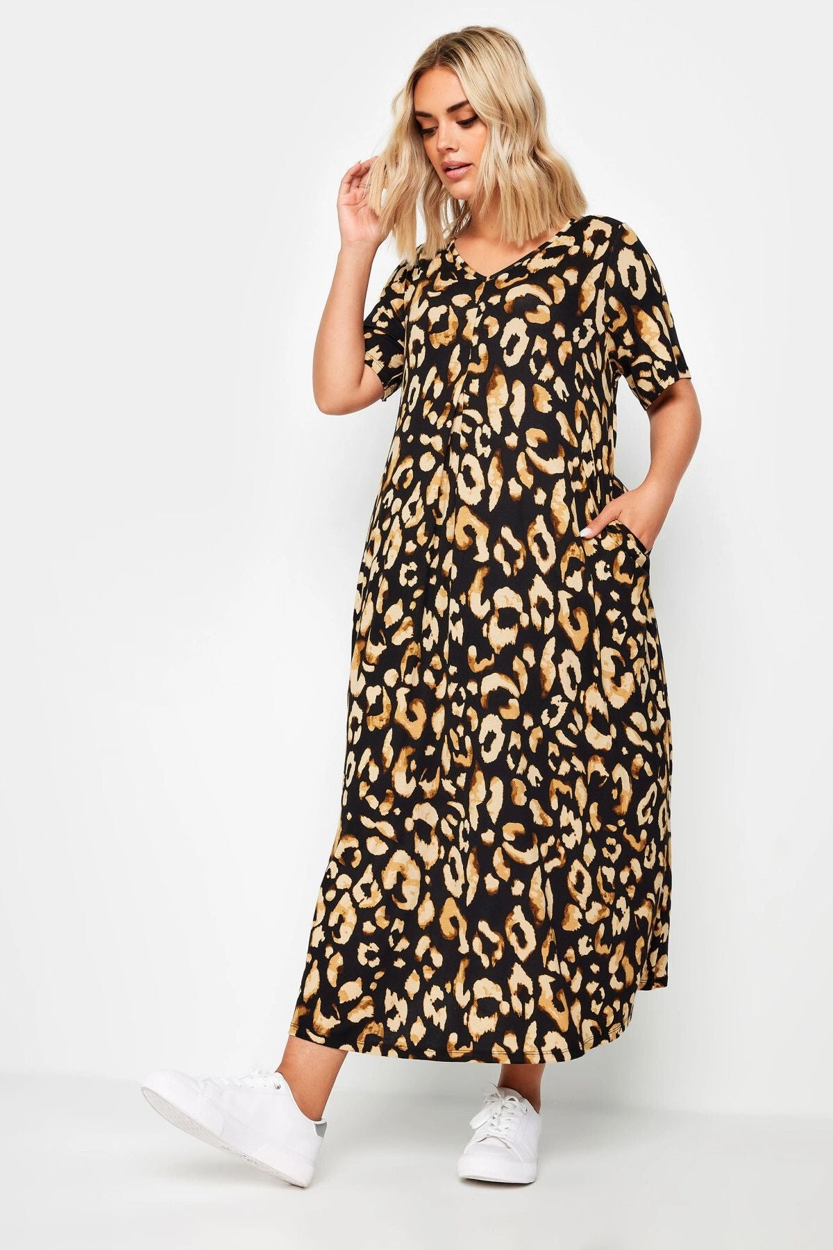 Büyük Beden V Yaka Kısa Kollu Cepli Uzun Elbise 137918