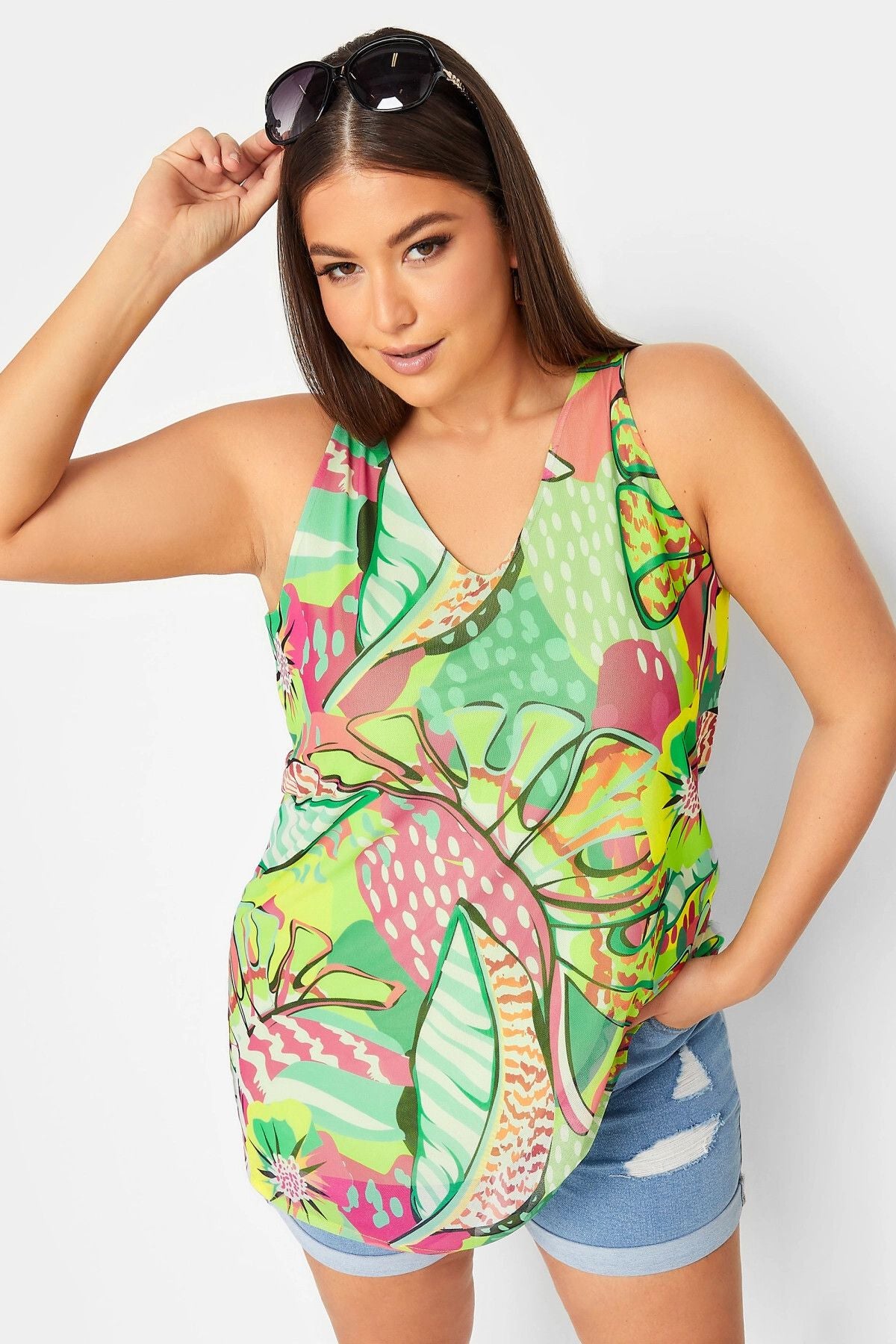 Büyük Beden V Yaka Kısa Kollu Çiçek Desenli Bluz 300958