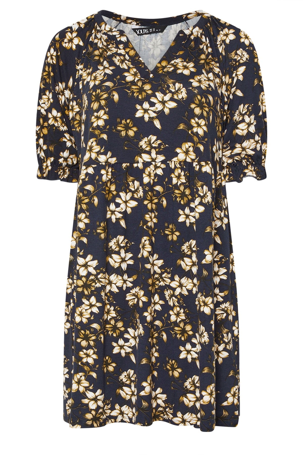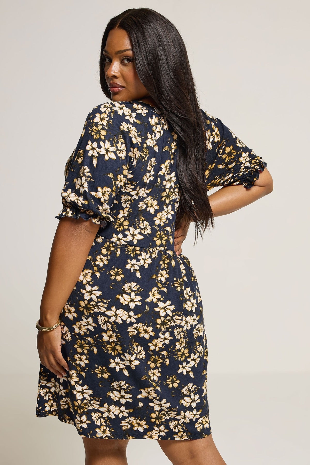 Büyük Beden V Yaka Kısa Kollu Çiçek Desenli Mini Elbise 304076