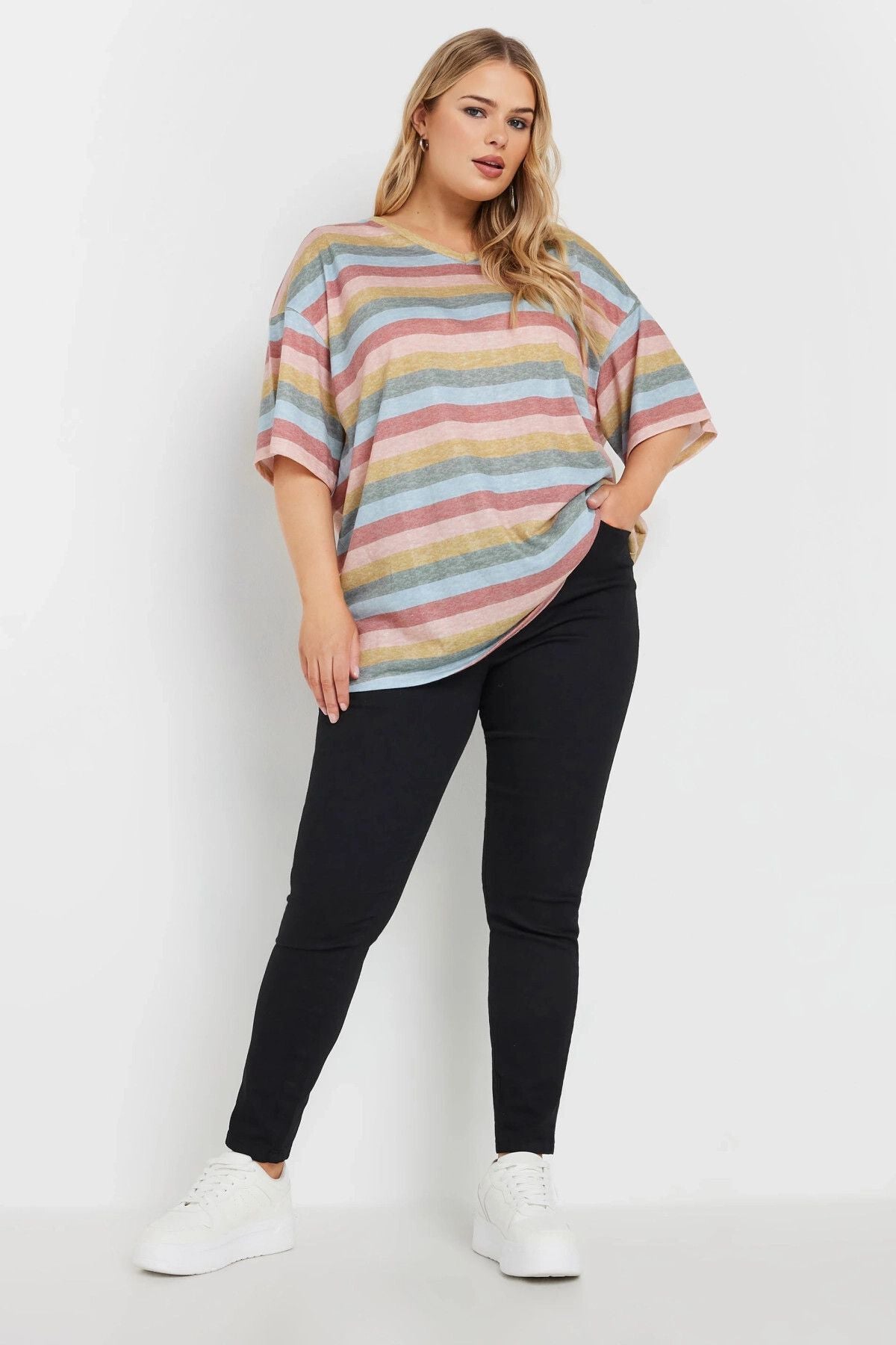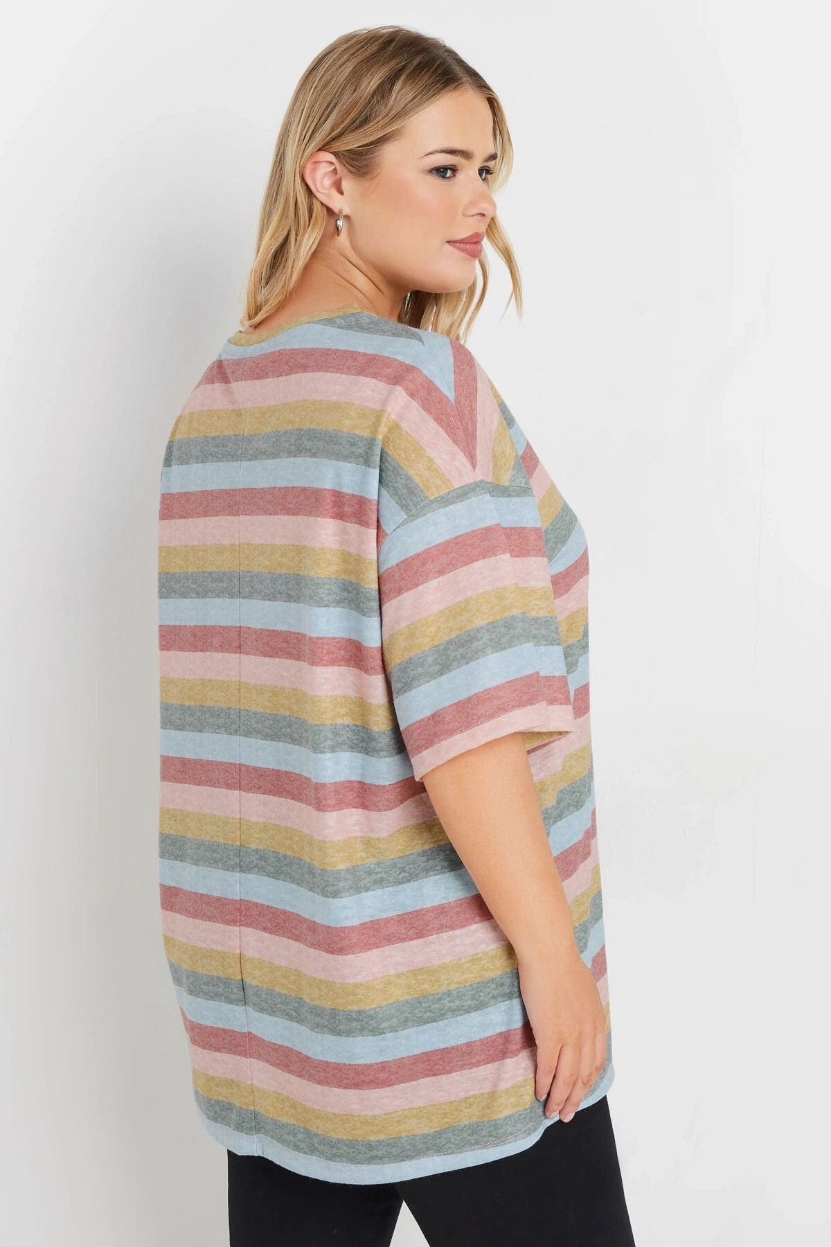 Büyük Beden V Yaka Kısa Kollu Çizgili T-shirt 303524