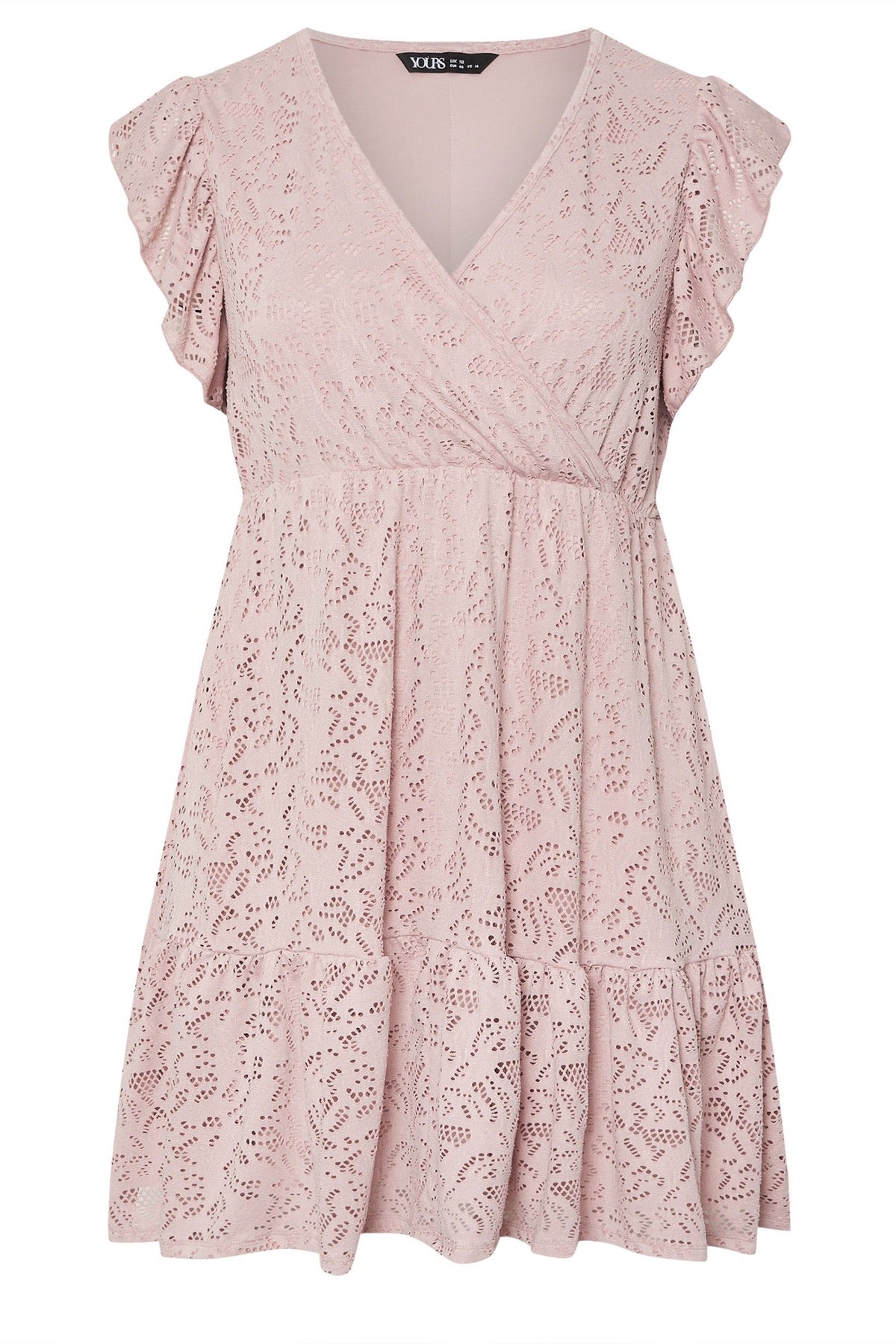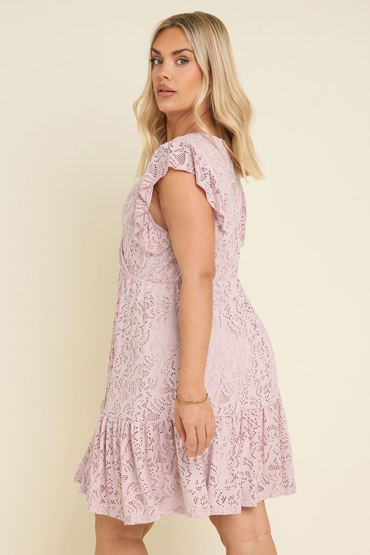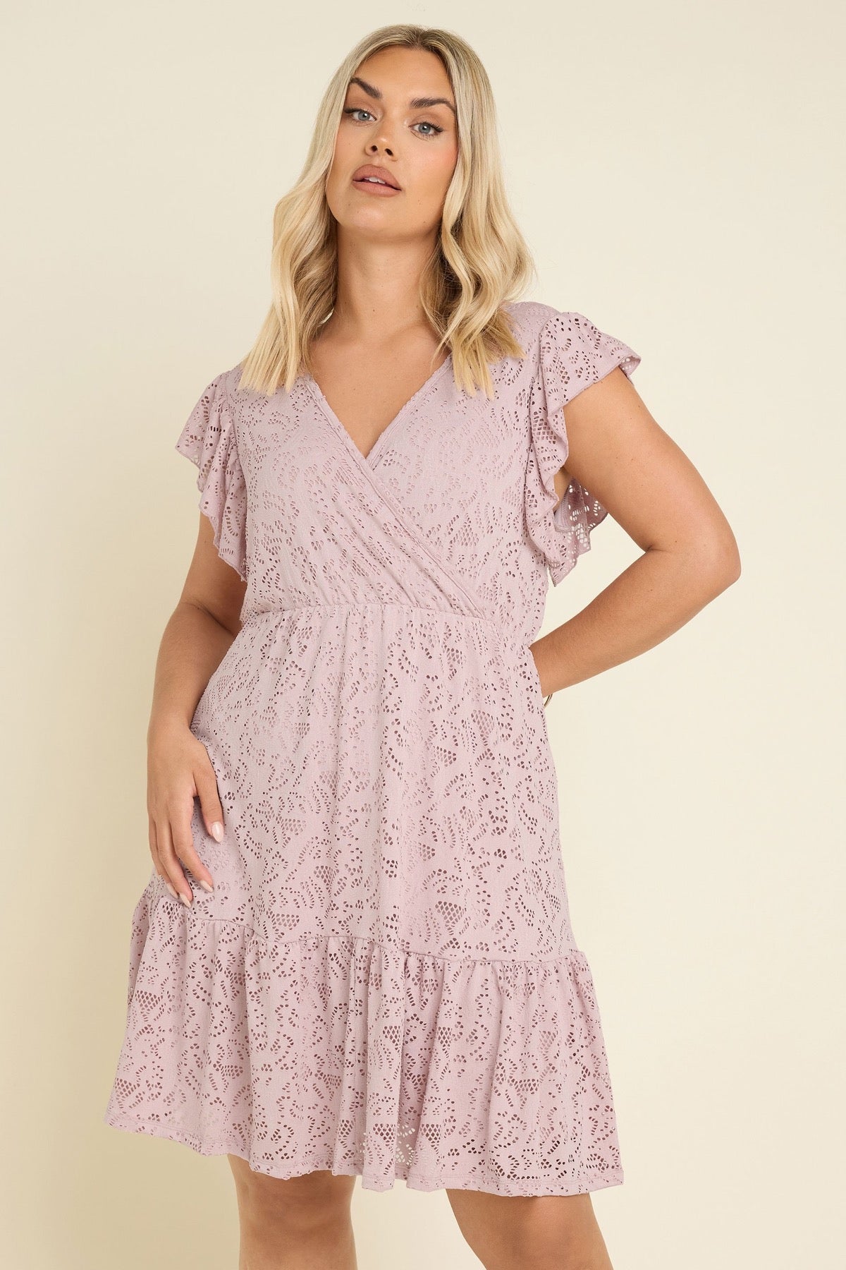Büyük Beden V Yaka Kısa Kollu Dantel Detaylı Kolları Fırfırlı Astarlı Mini Elbise 304109