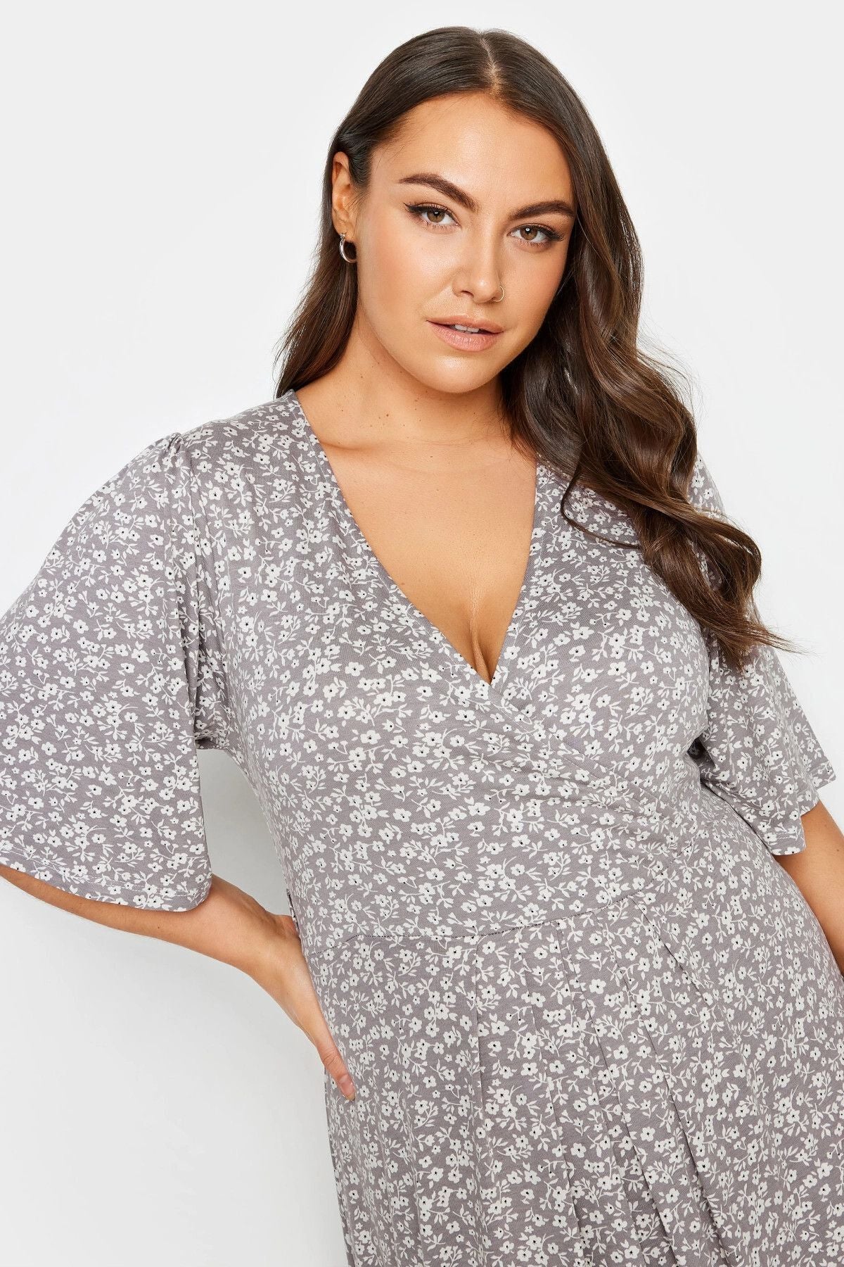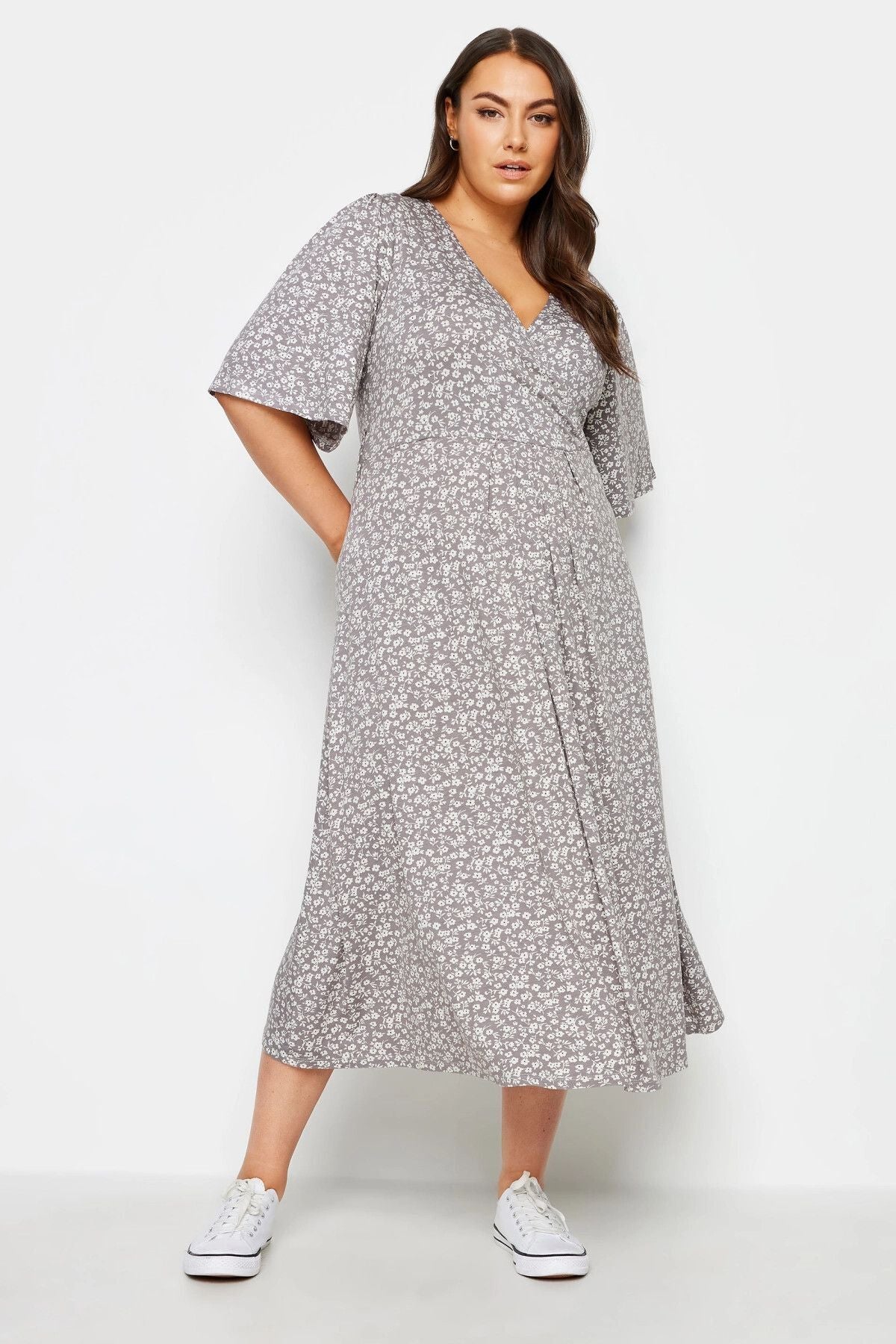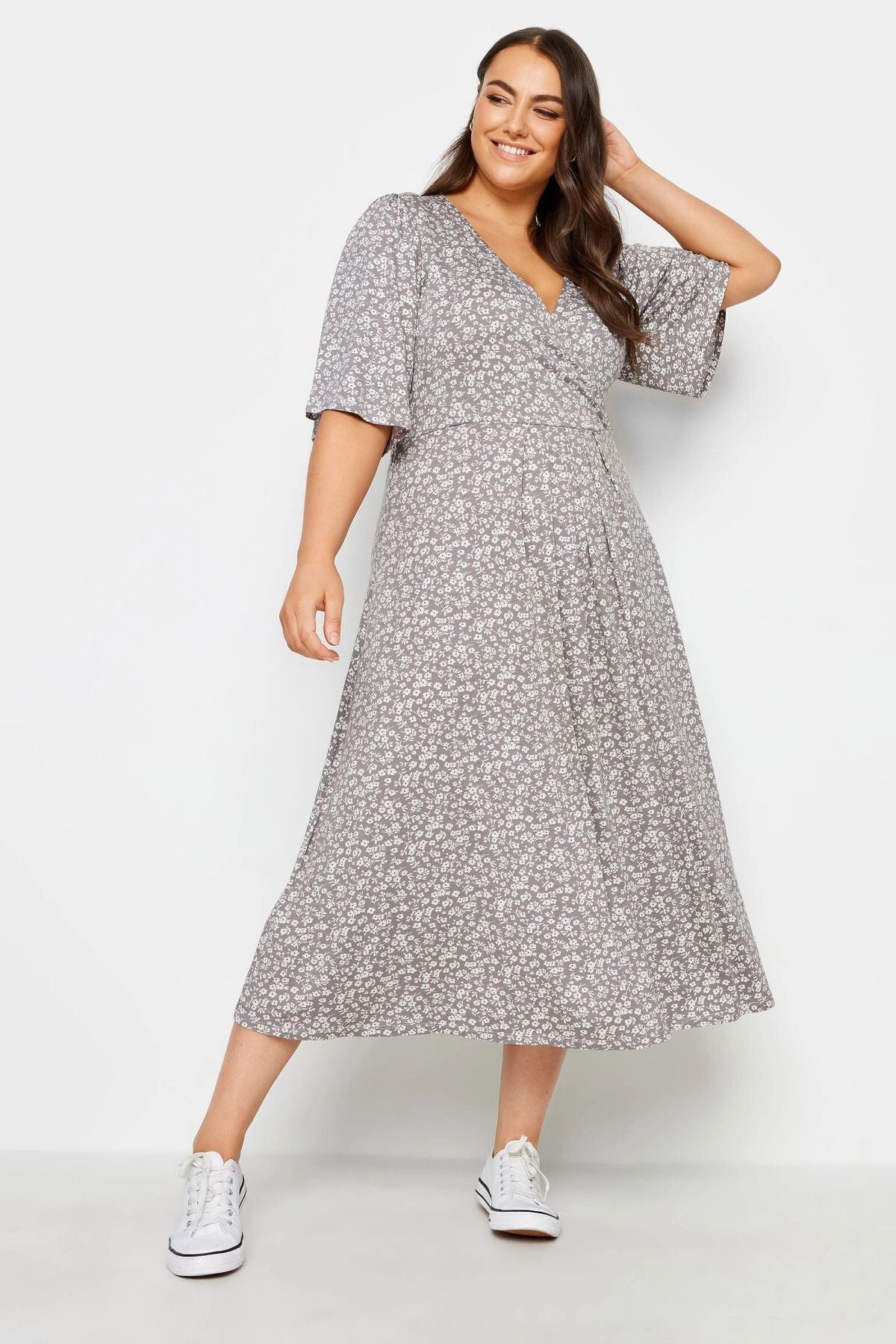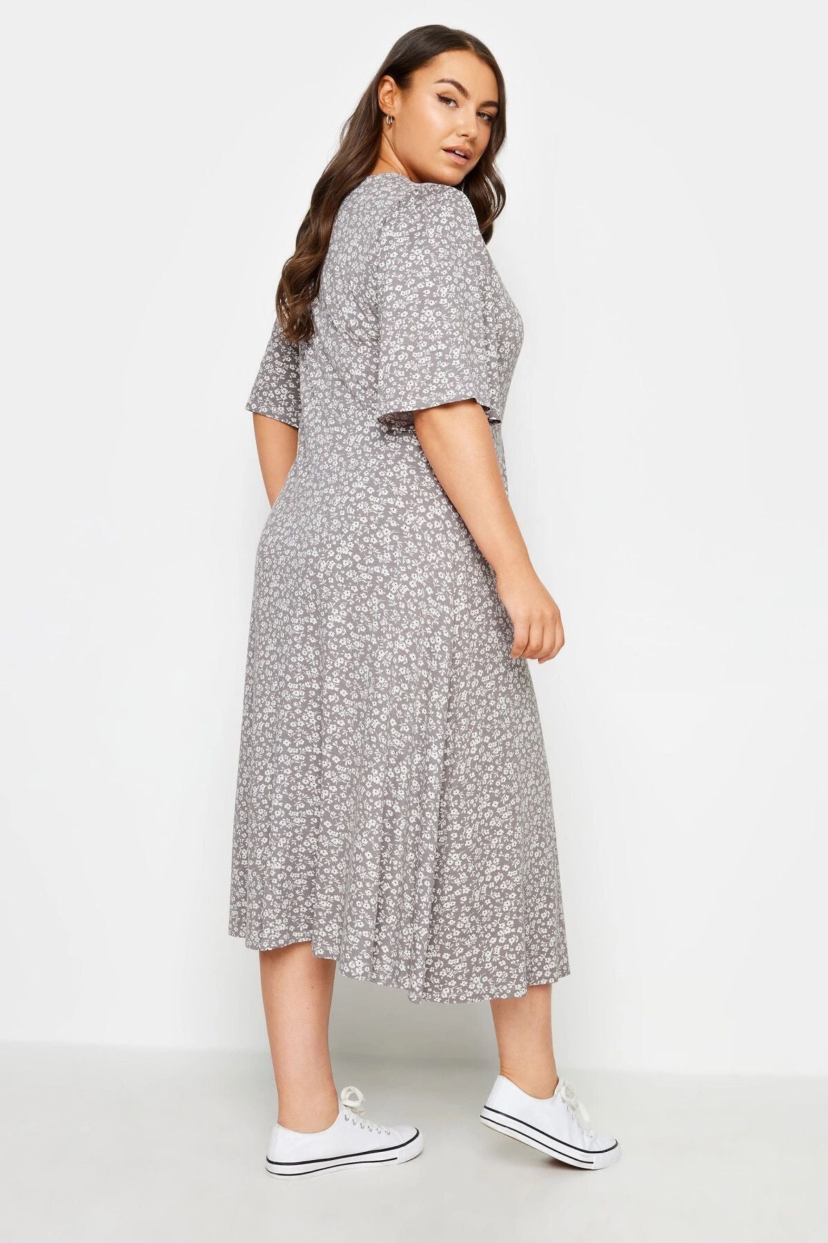 Büyük Beden V Yaka Kısa Kollu Desenli Midi Boy Elbise 302749