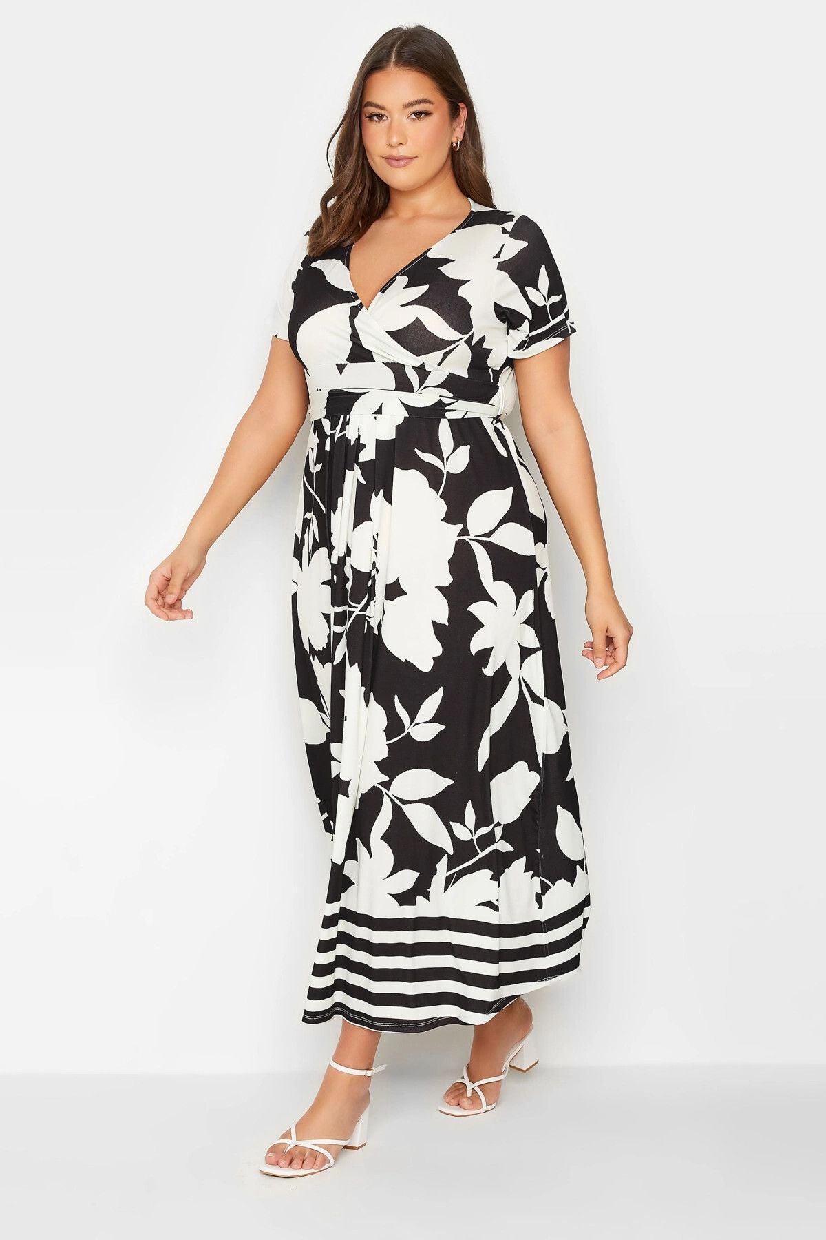 Büyük Beden V Yaka Kısa Kollu Kuşaklı Desenli Midi Boy Elbise 301985