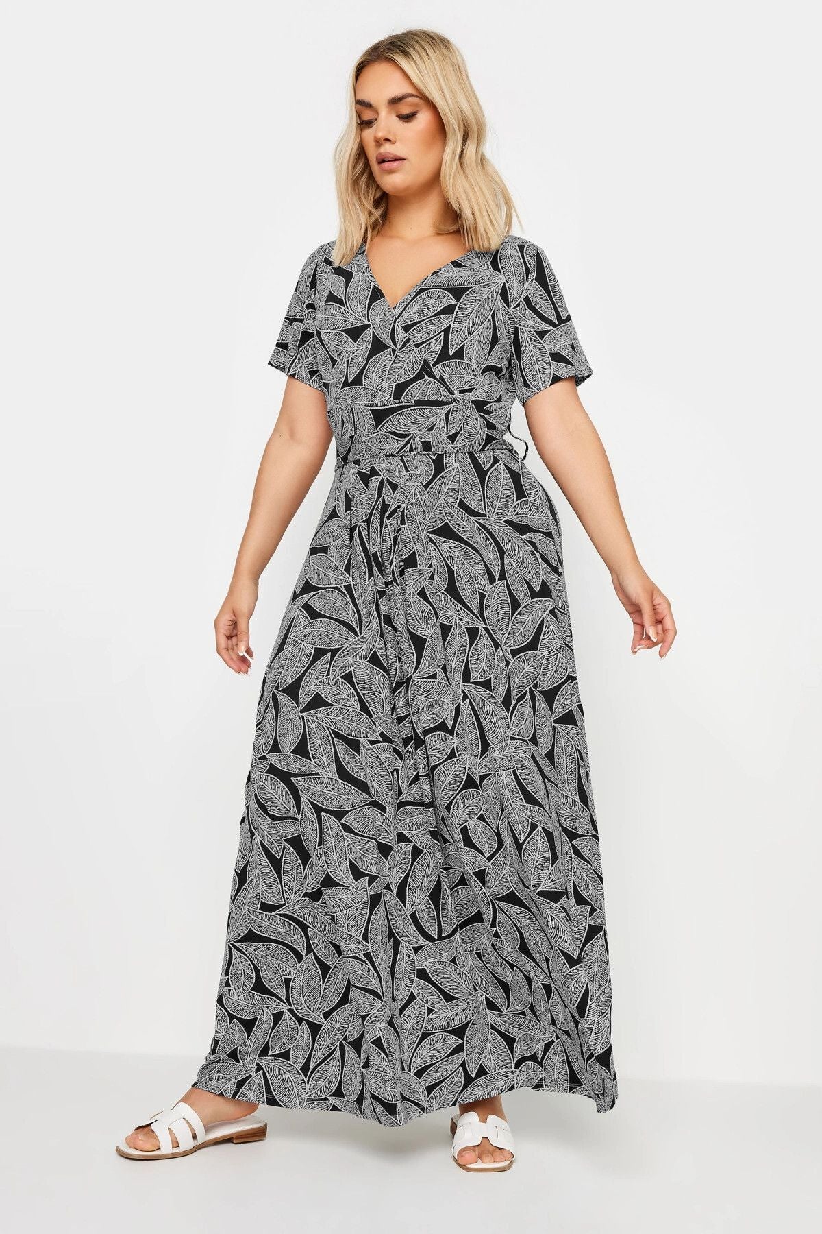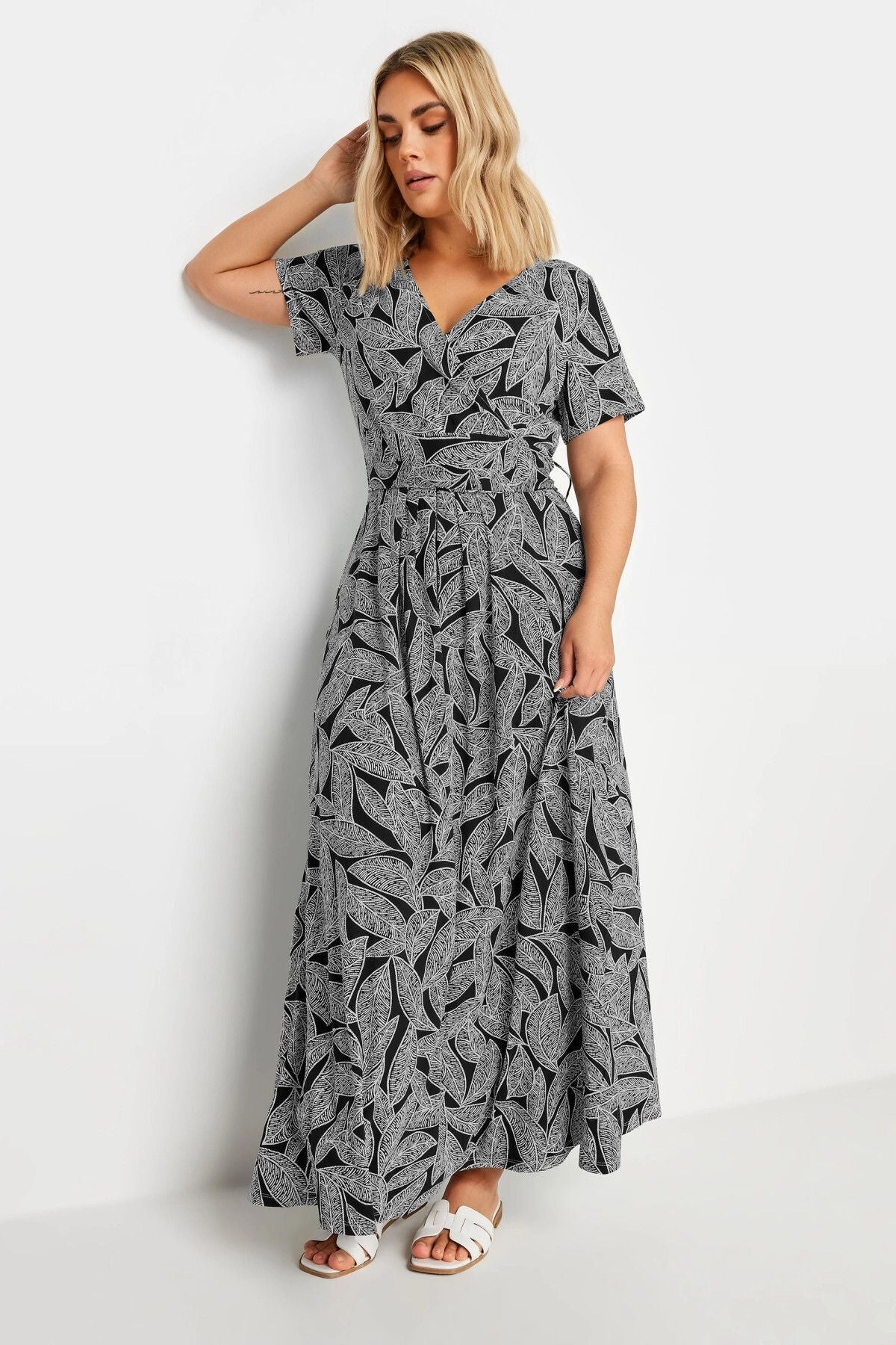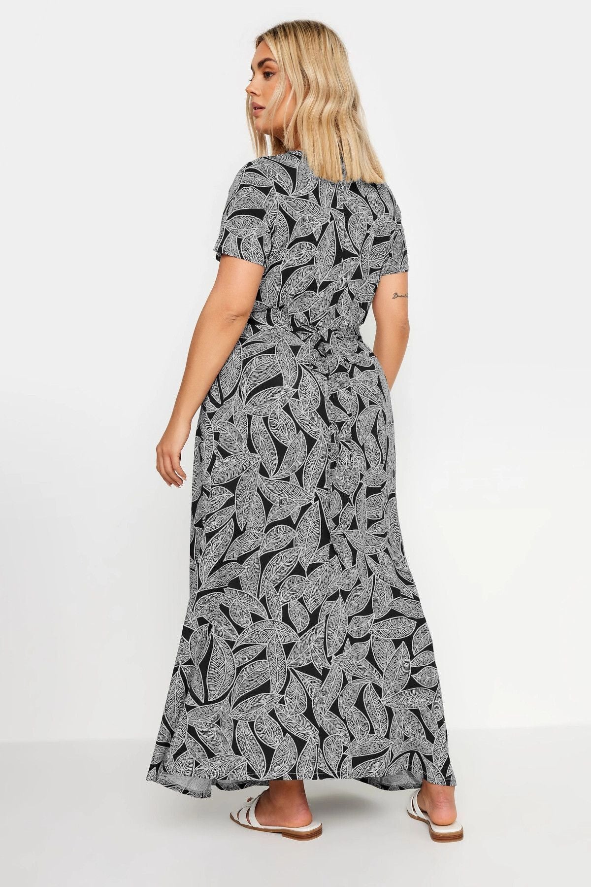 Büyük Beden V Yaka Kısa Kollu Kuşaklı Desenli Uzun Elbise 137861
