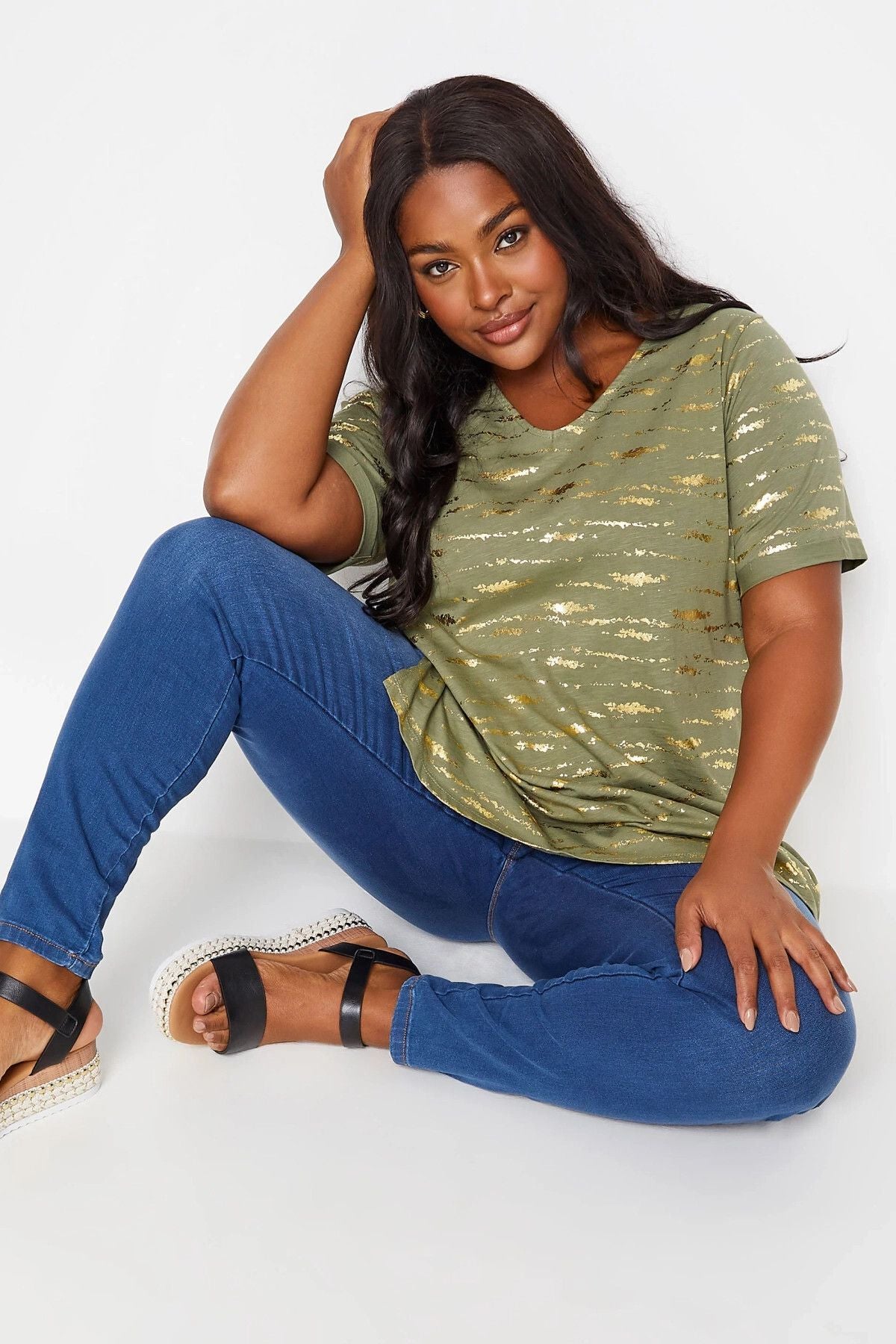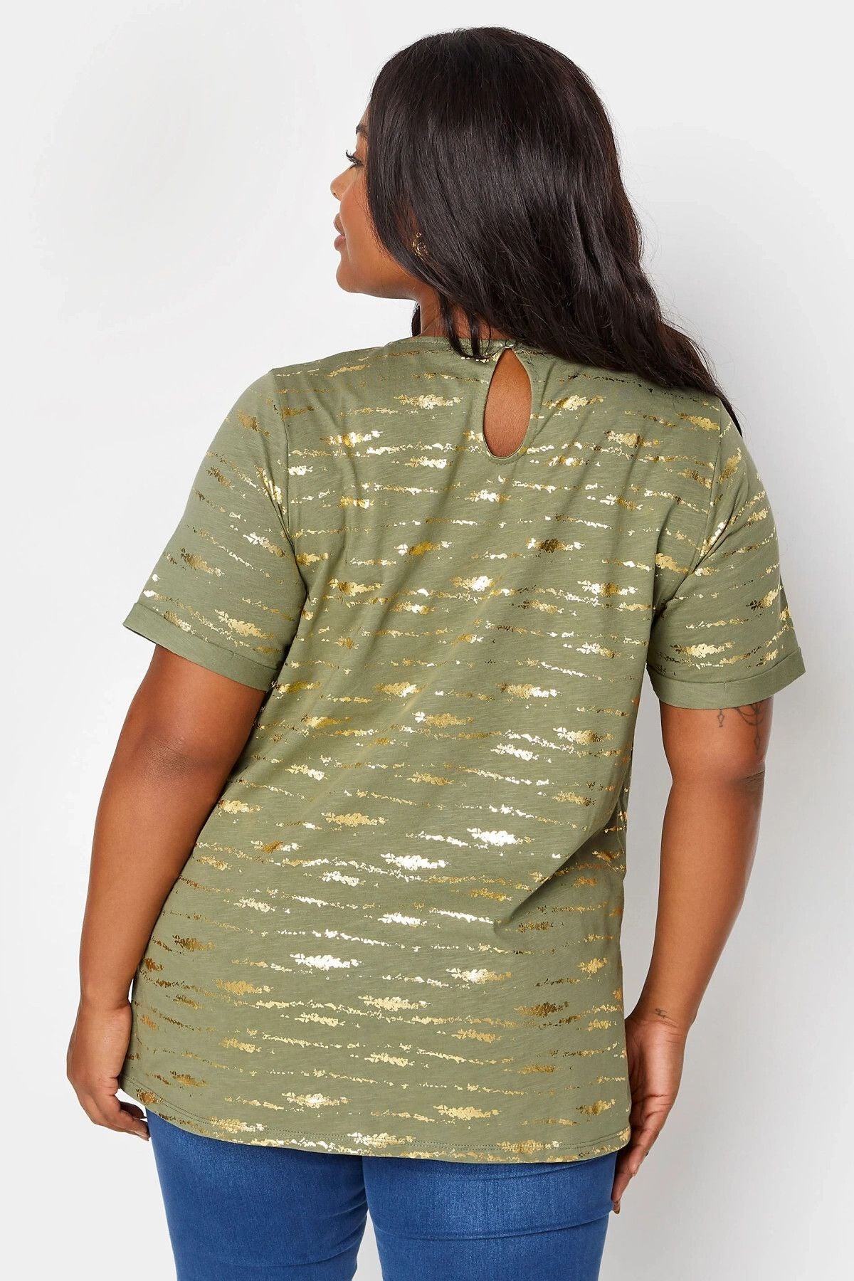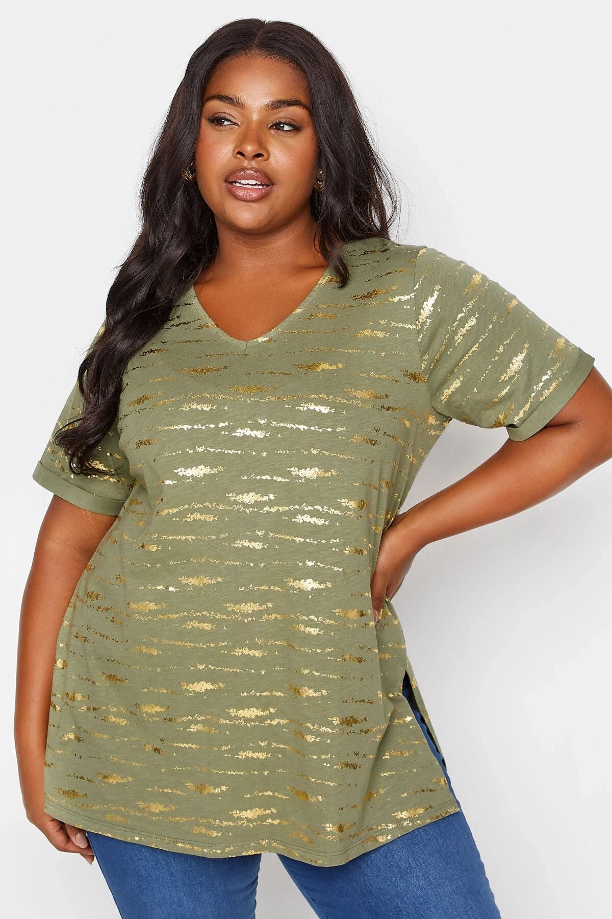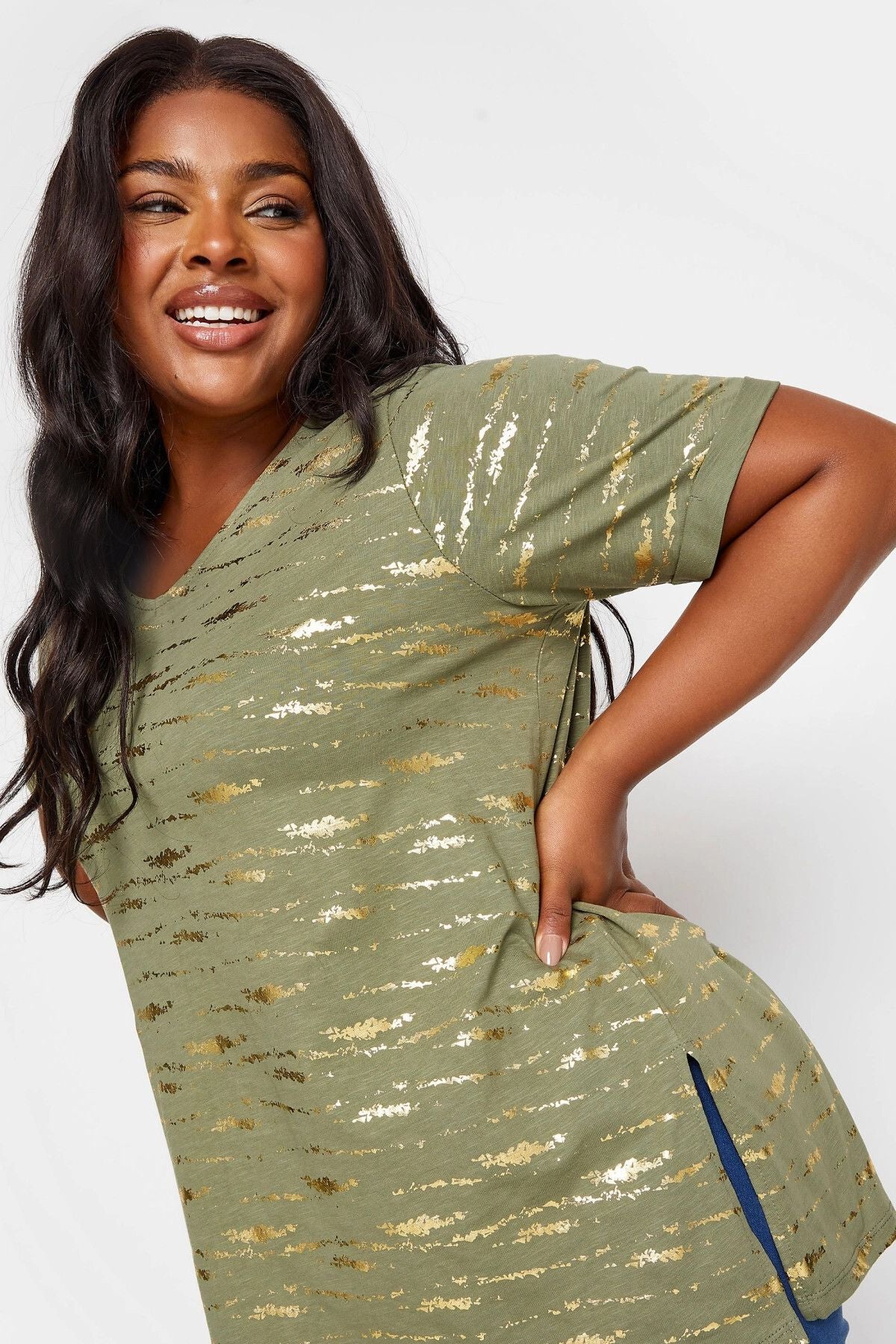 Büyük Beden V Yaka Kısa Kollu Metalik Desenli T-shirt 303090