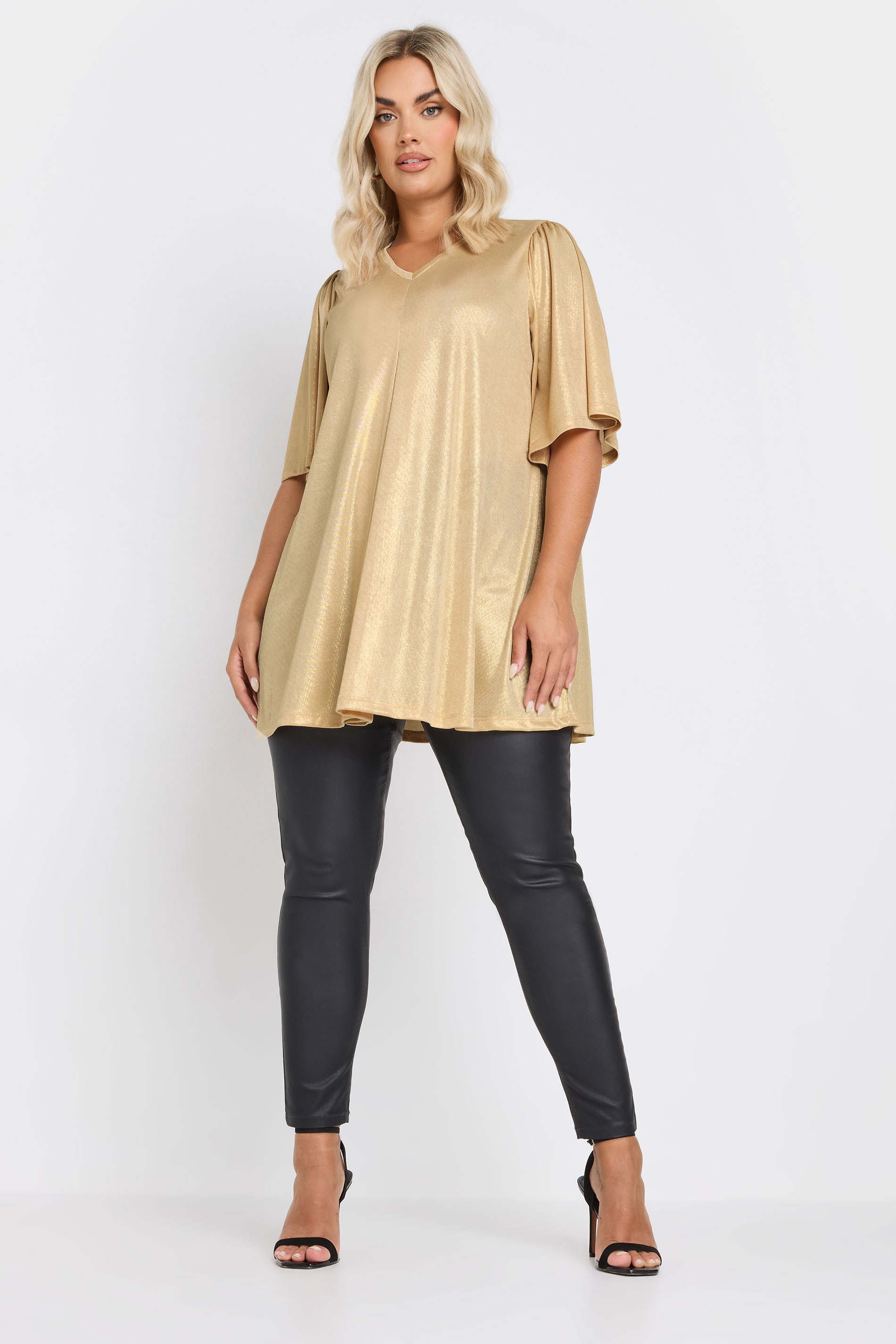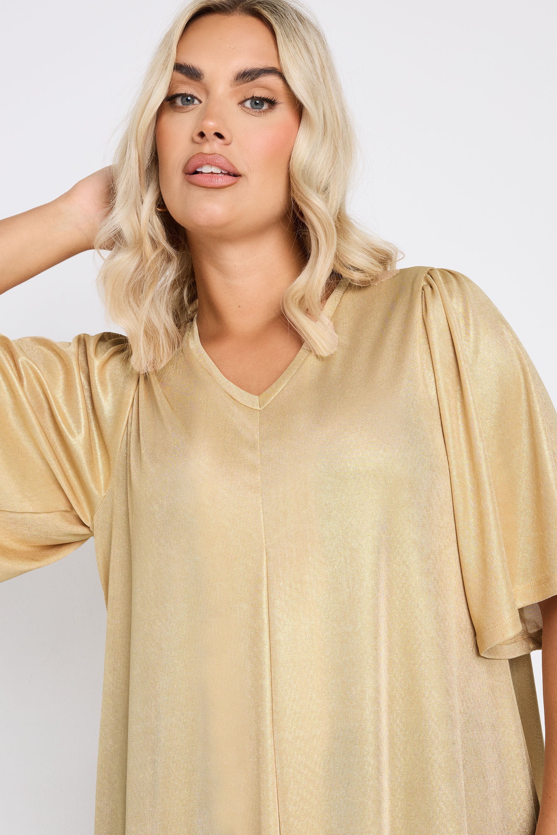 Büyük Beden V Yaka Kısa Kollu Parlak Görünümlü Bluz 303718