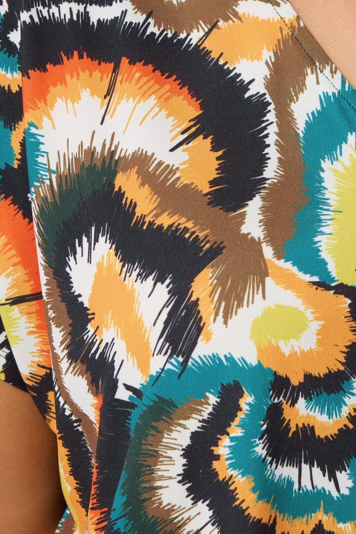 Büyük Beden V Yaka Kısa Kollu Soyut Desenli Asimetrik Kesim T-shirt 616346