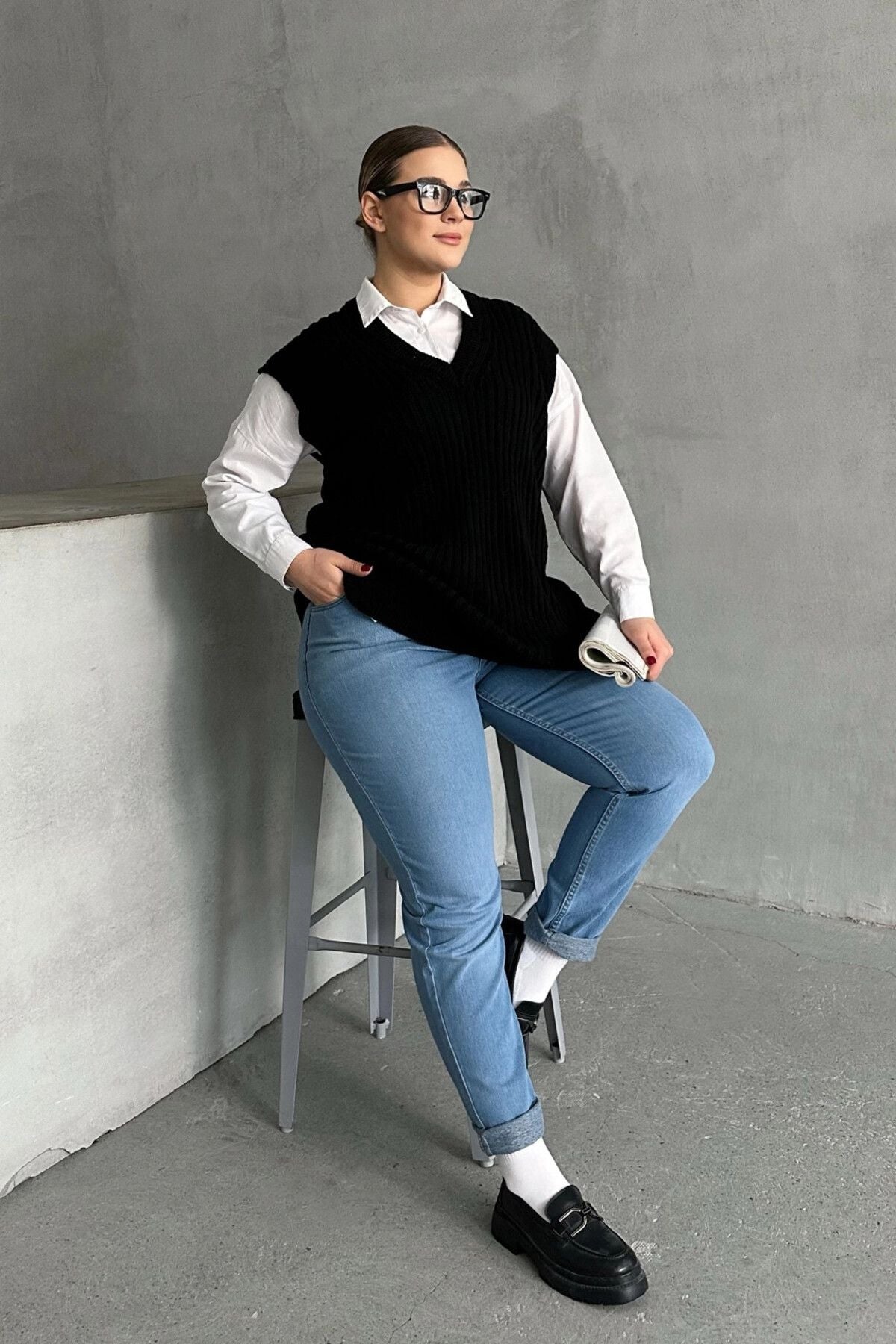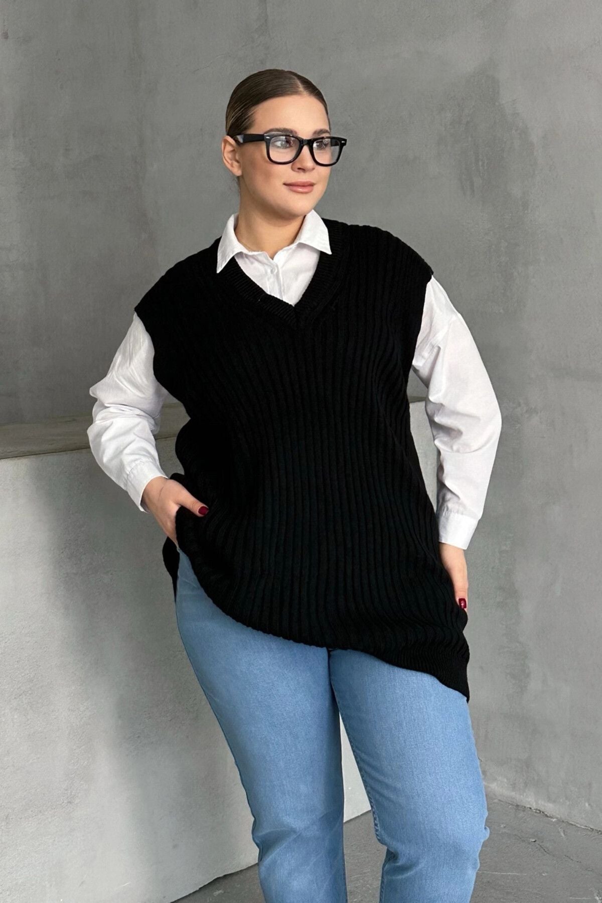Büyük Beden V Yaka Kısa Kollu Triko Süveter 302134