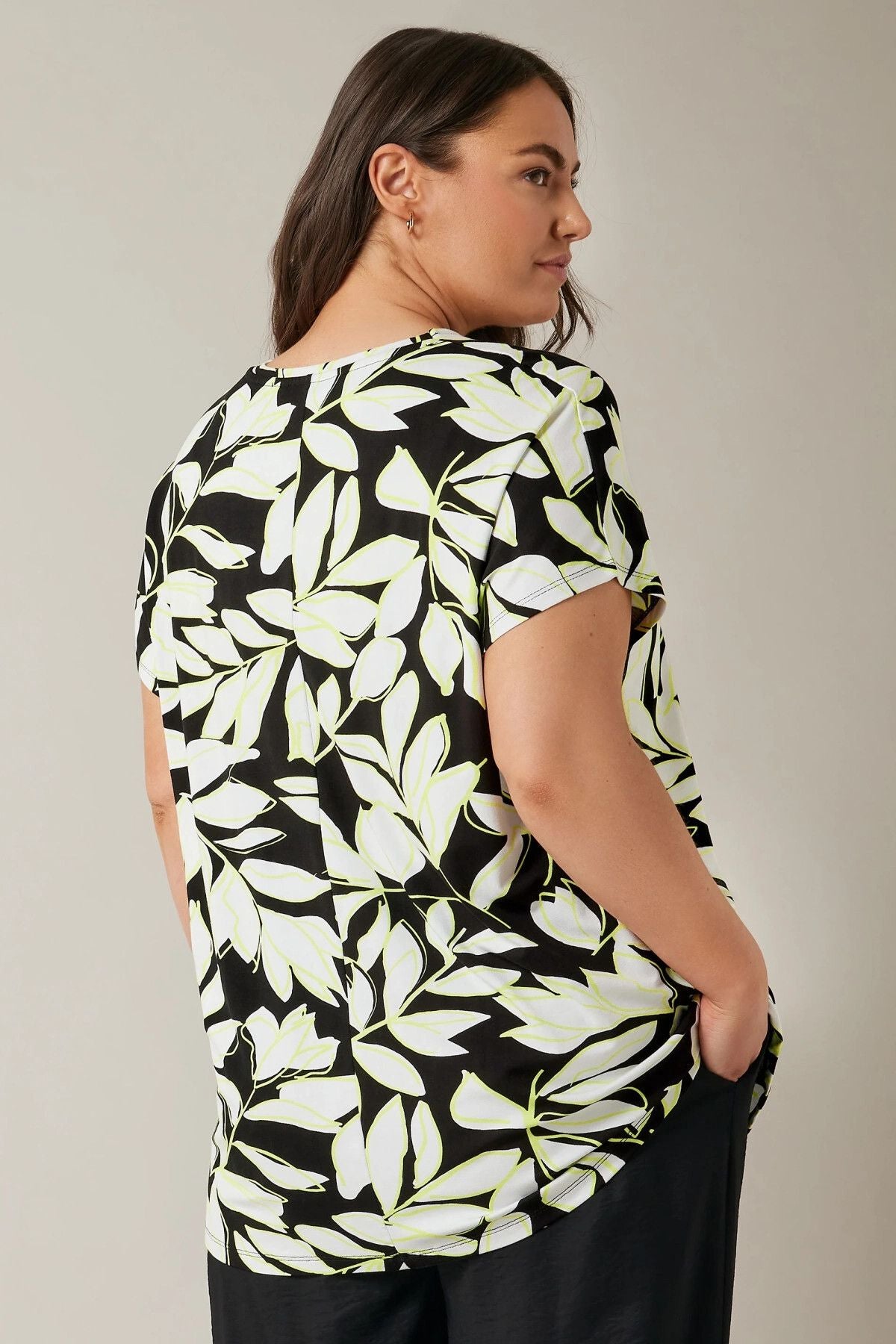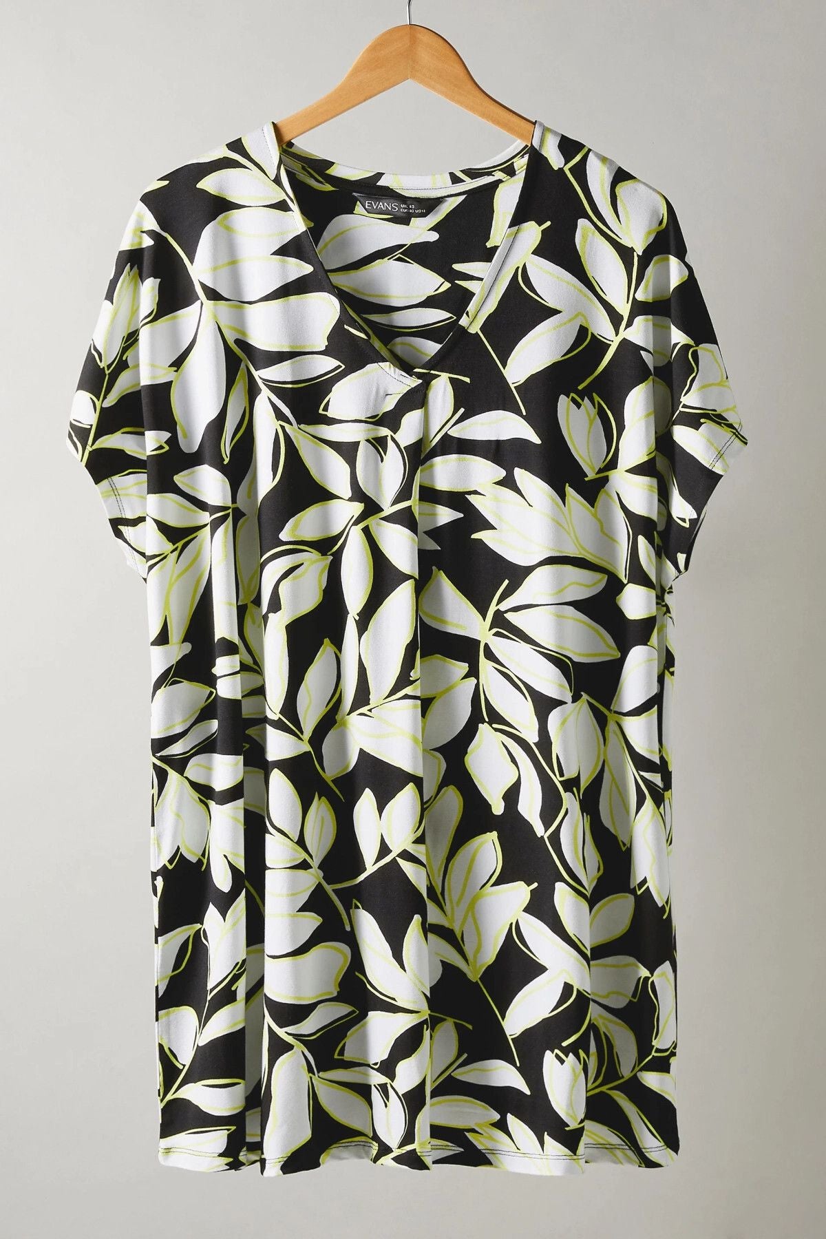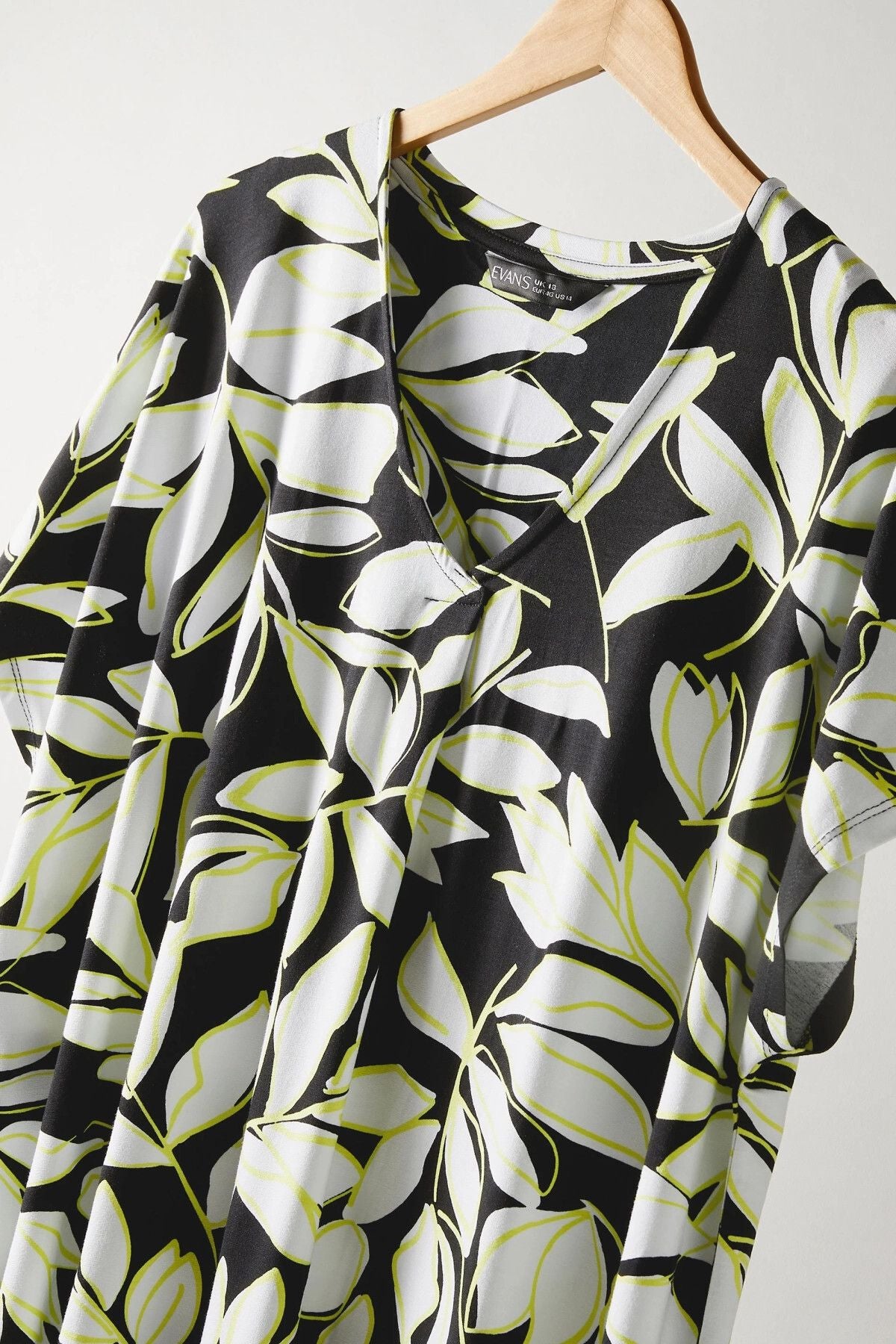 Büyük Beden V Yaka Kısa Kollu Yaprak Desenli Bluz 615244