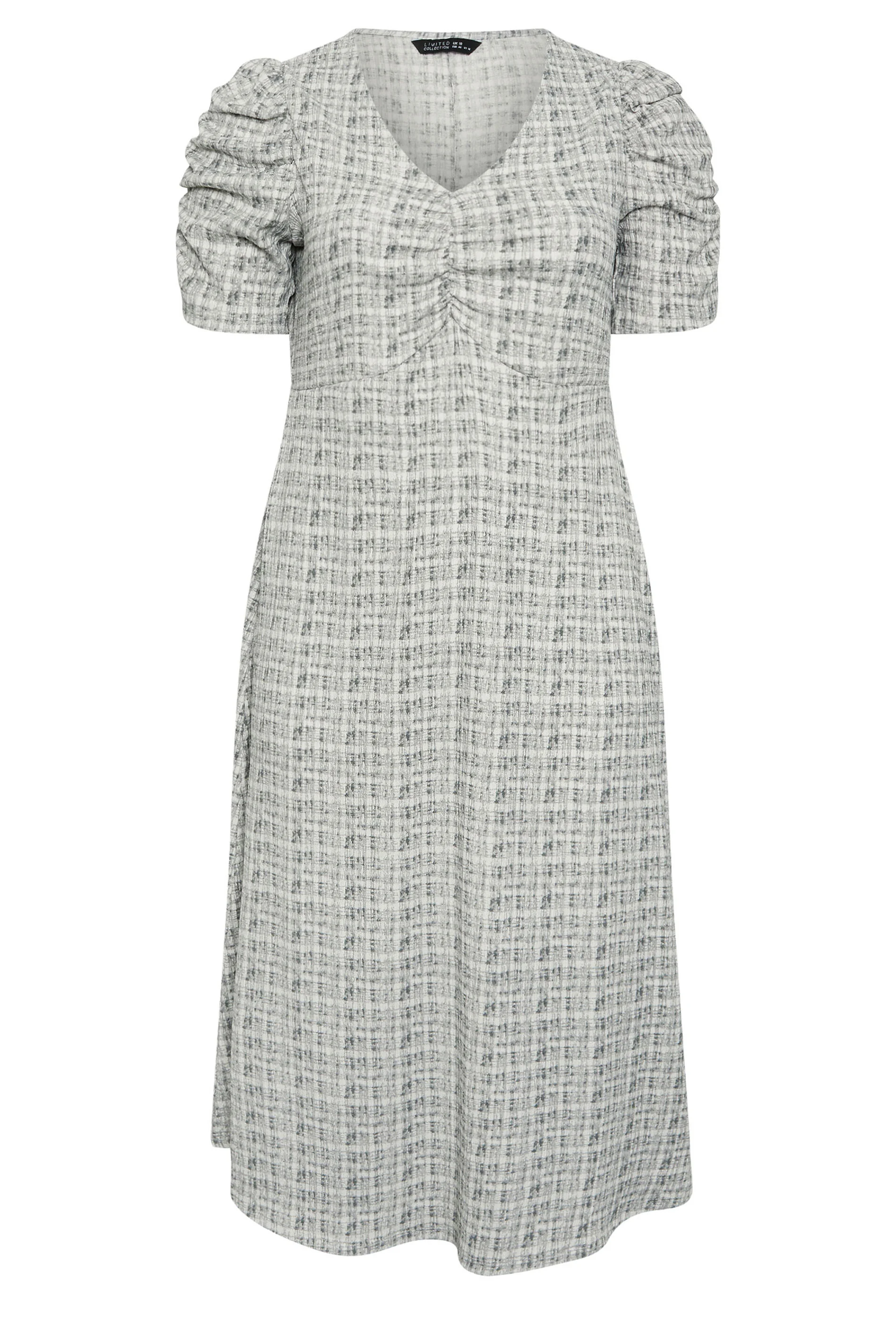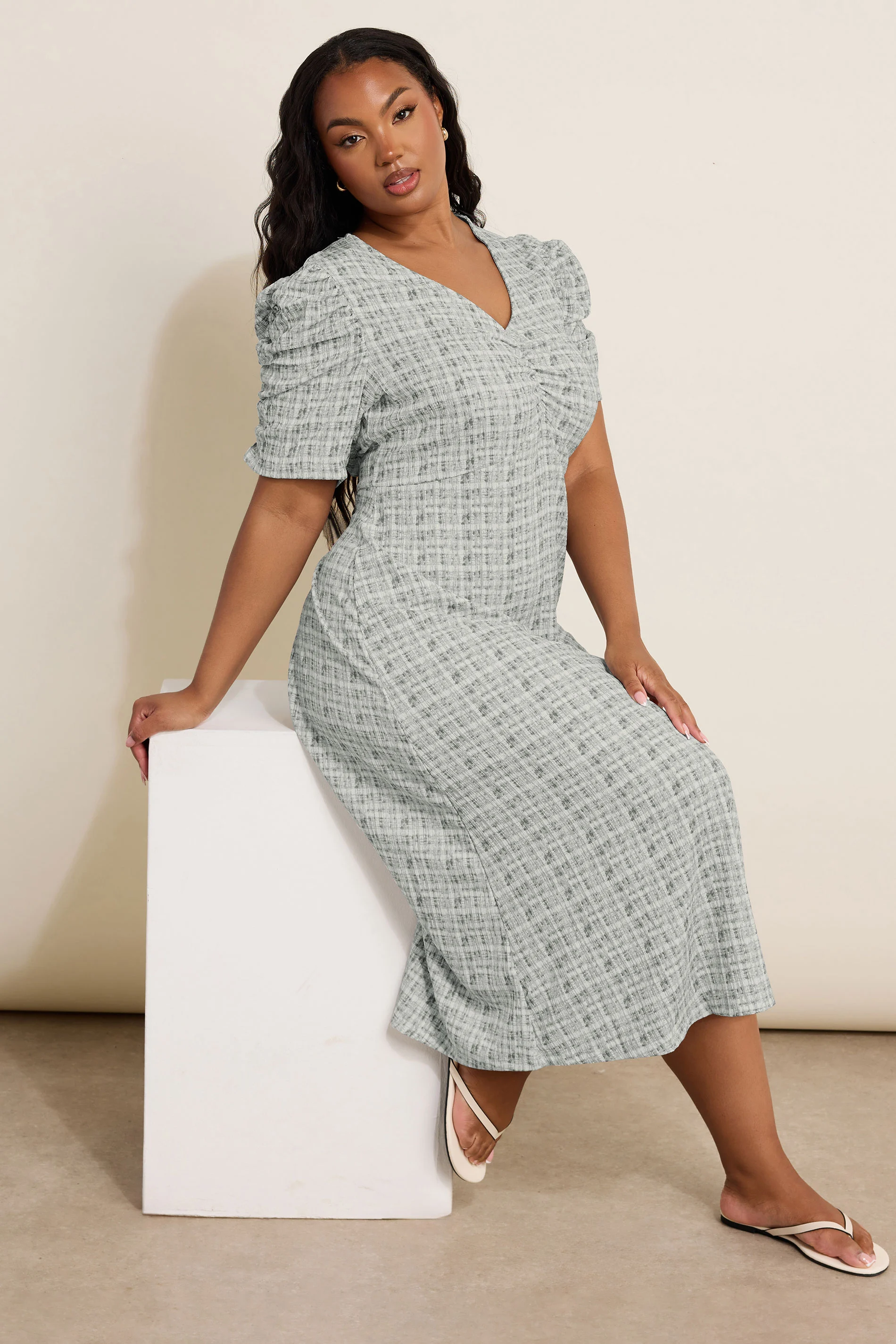 Büyük Beden V Yaka Kolları Drapeli Kare Desenli Midi Boy Elbise 137948