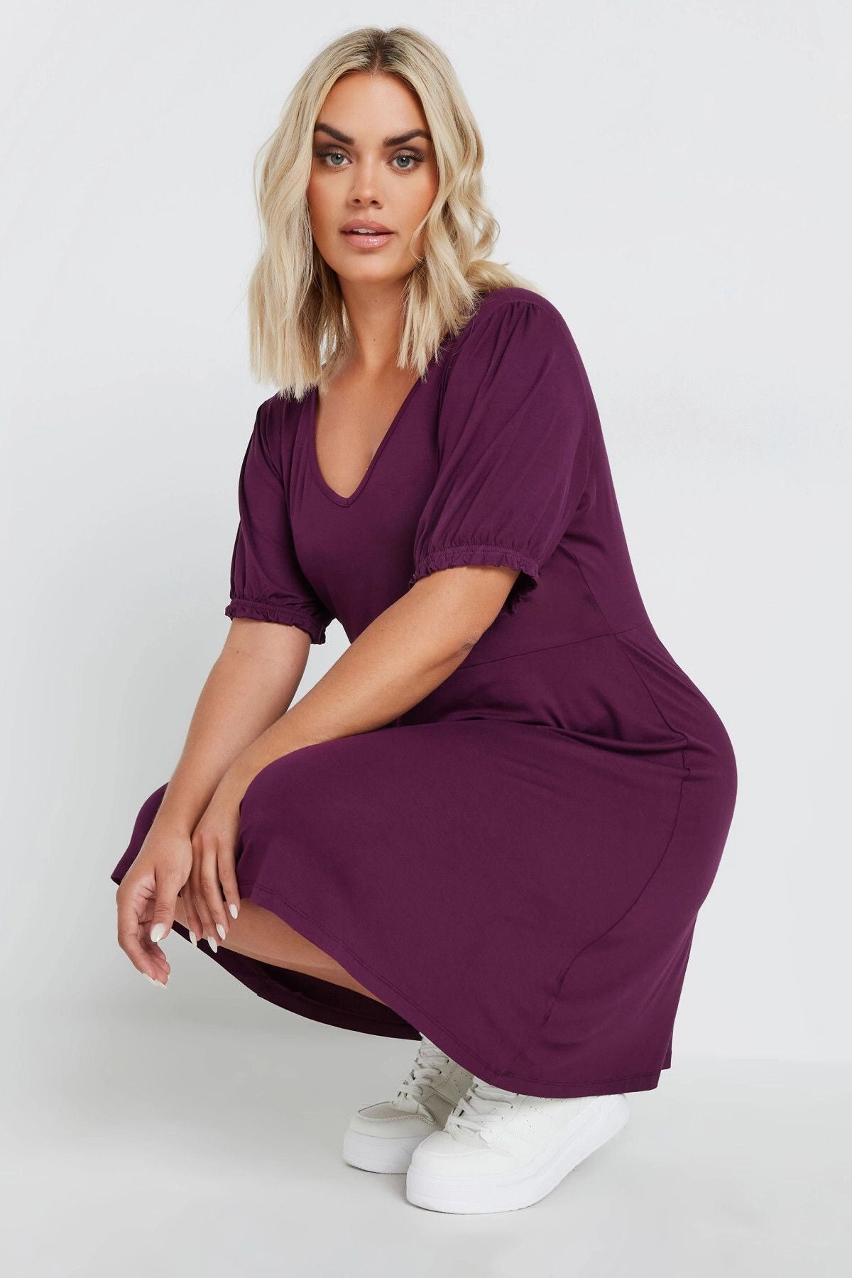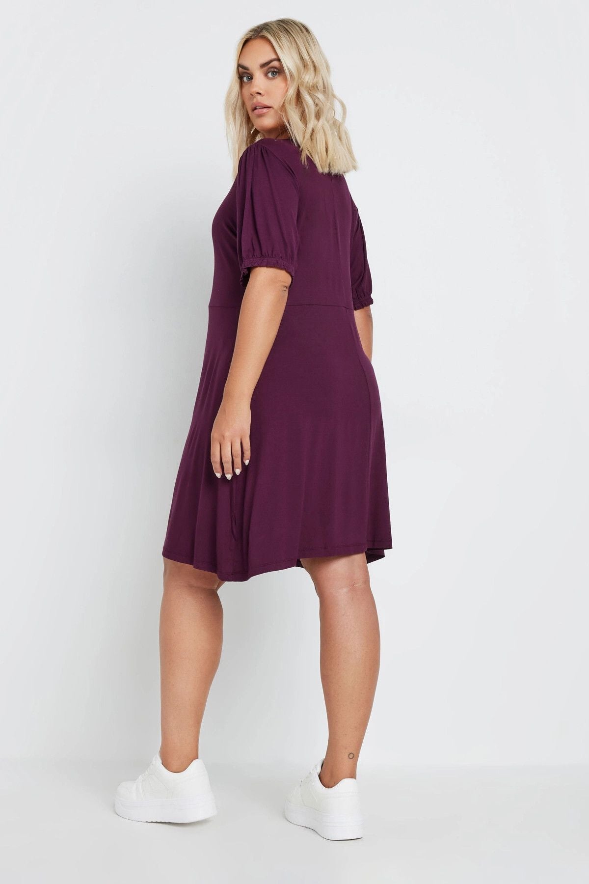Büyük Beden V Yaka Kolları Lastikli Kısa Elbise 137982