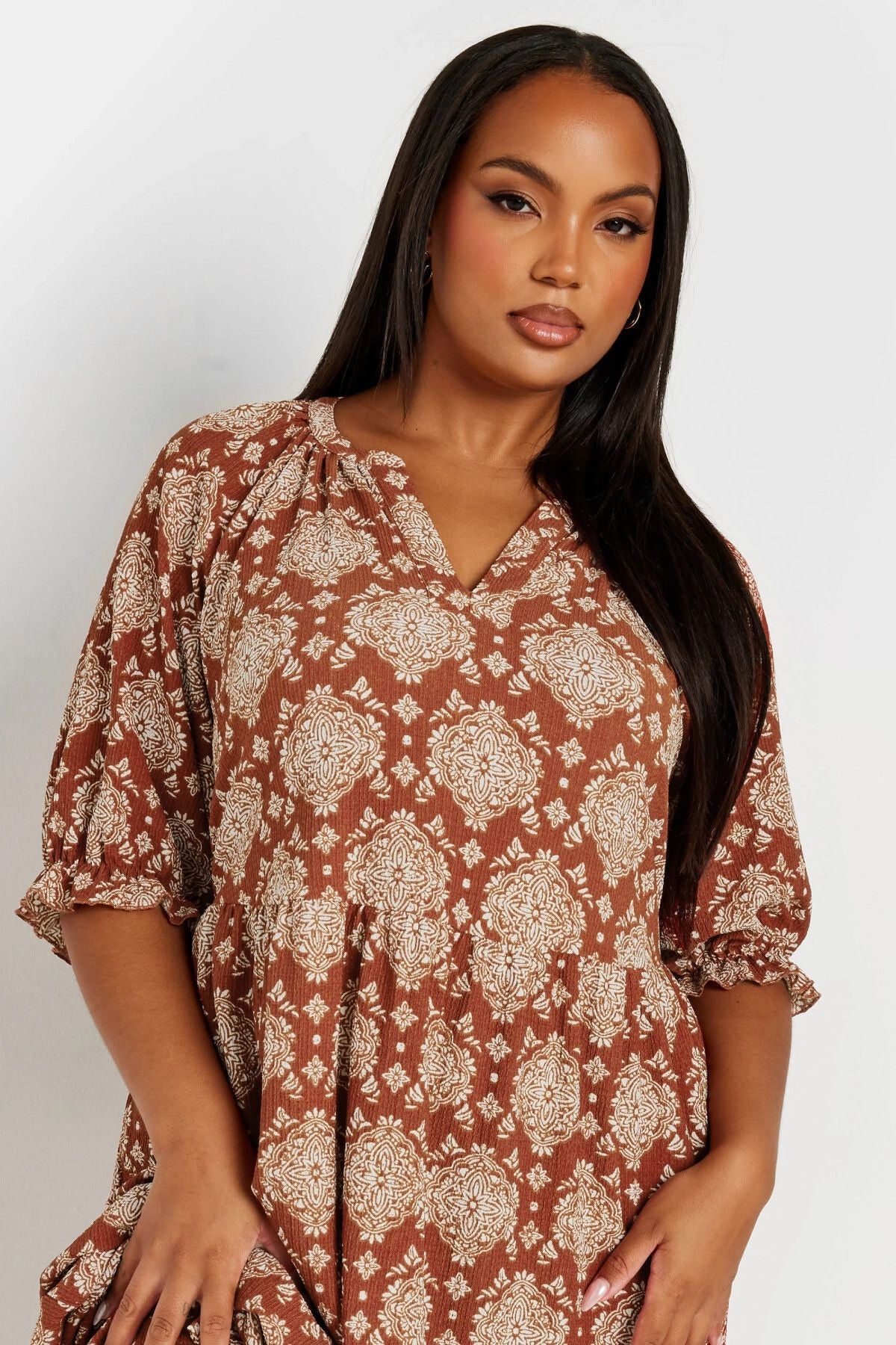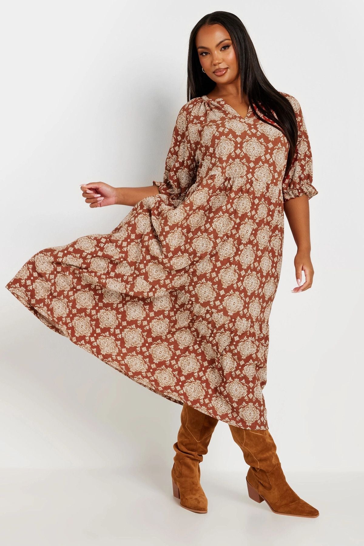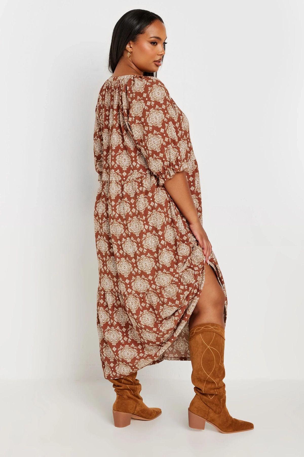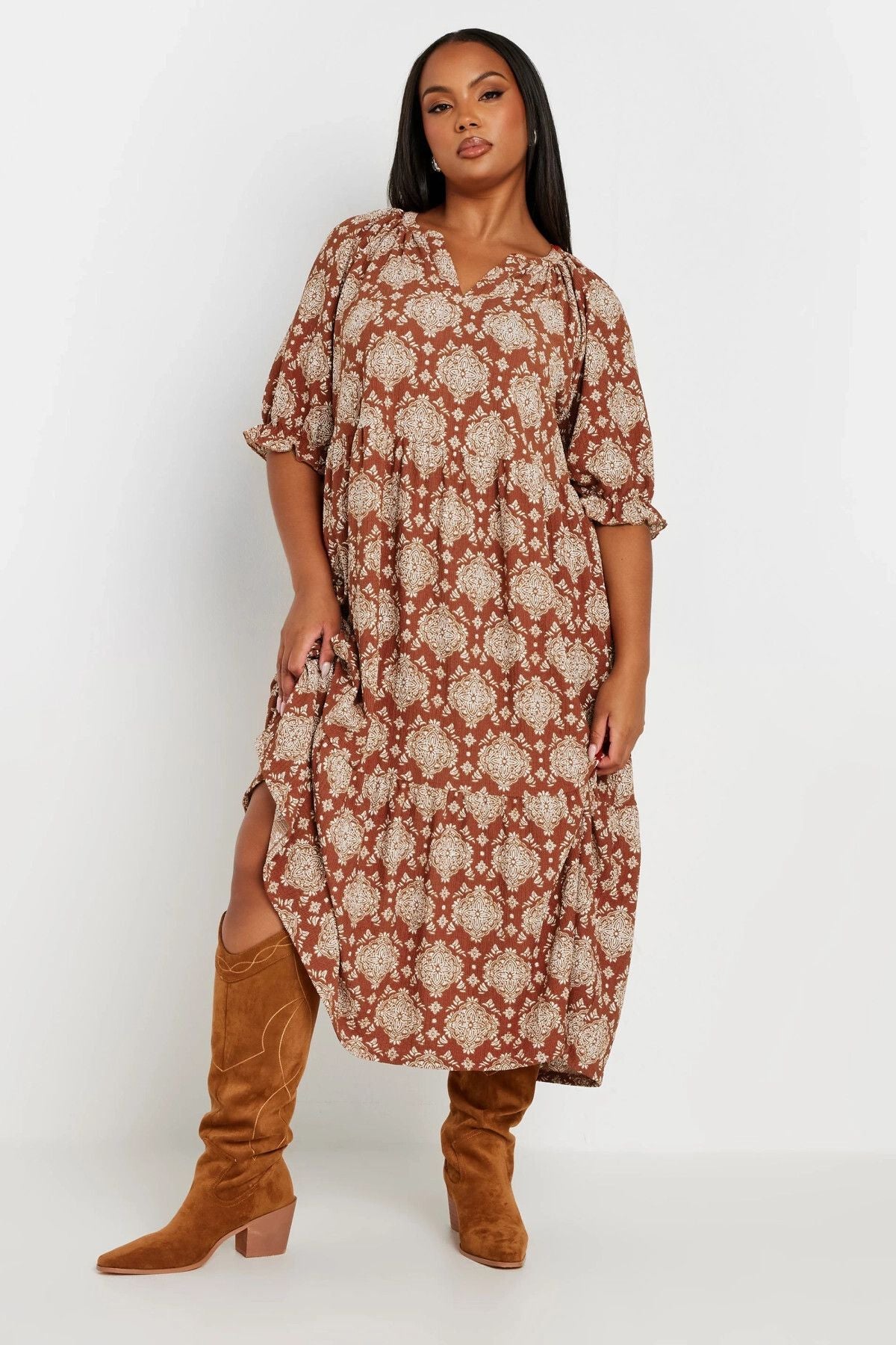 Büyük Beden V Yaka Kolları Lastikli Midi Boy Elbise 137989