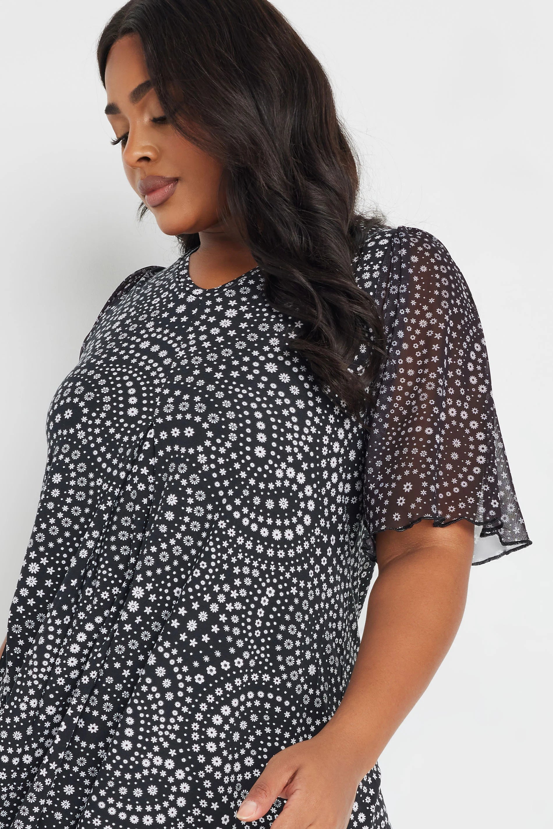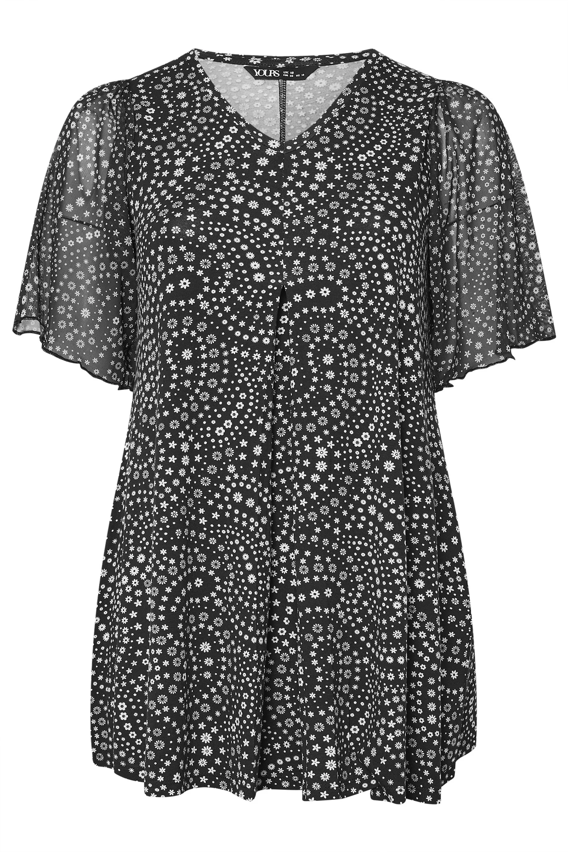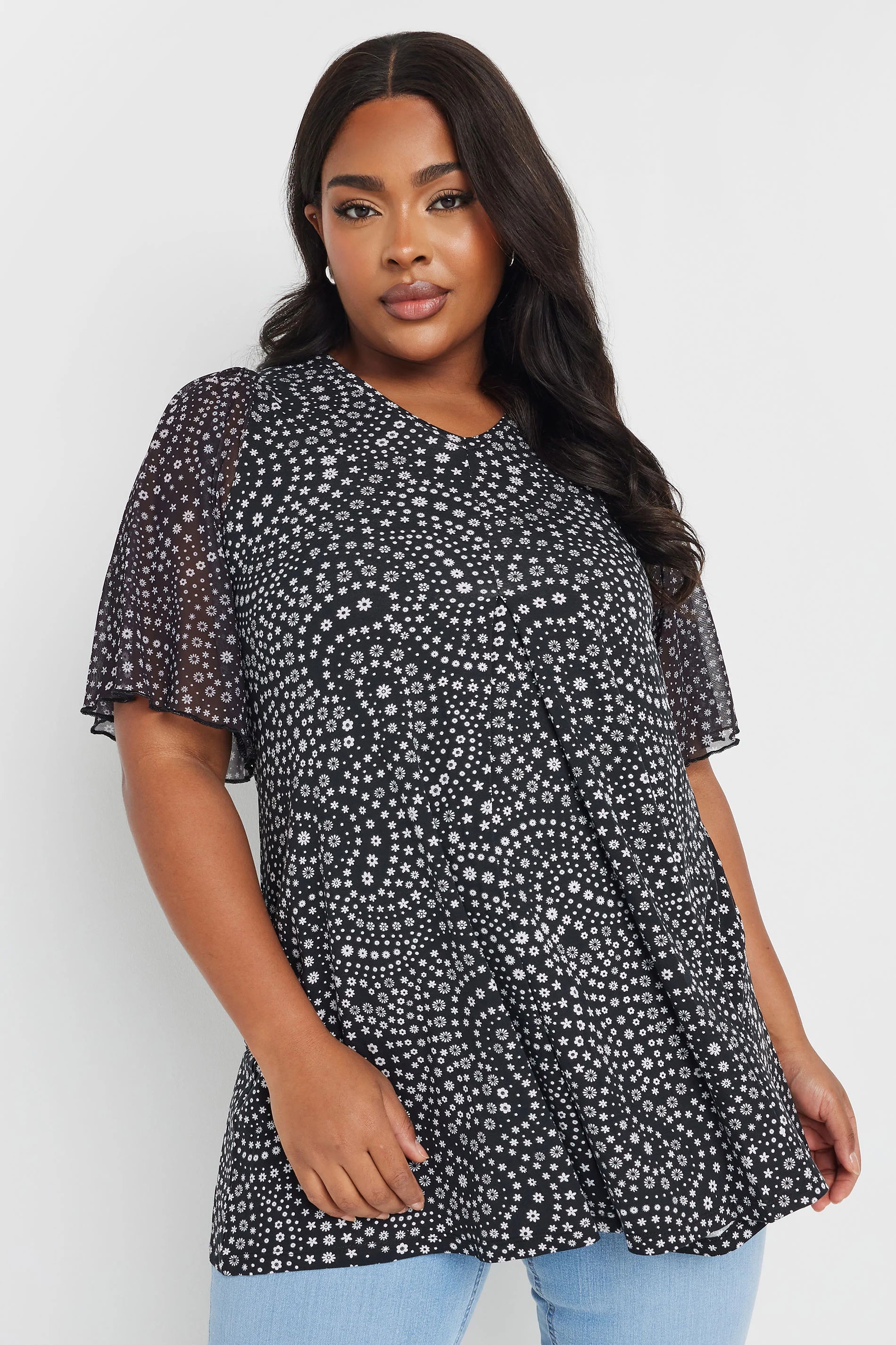 Büyük Beden V Yaka Kolları Tül Detaylı Desenli Bluz 321998