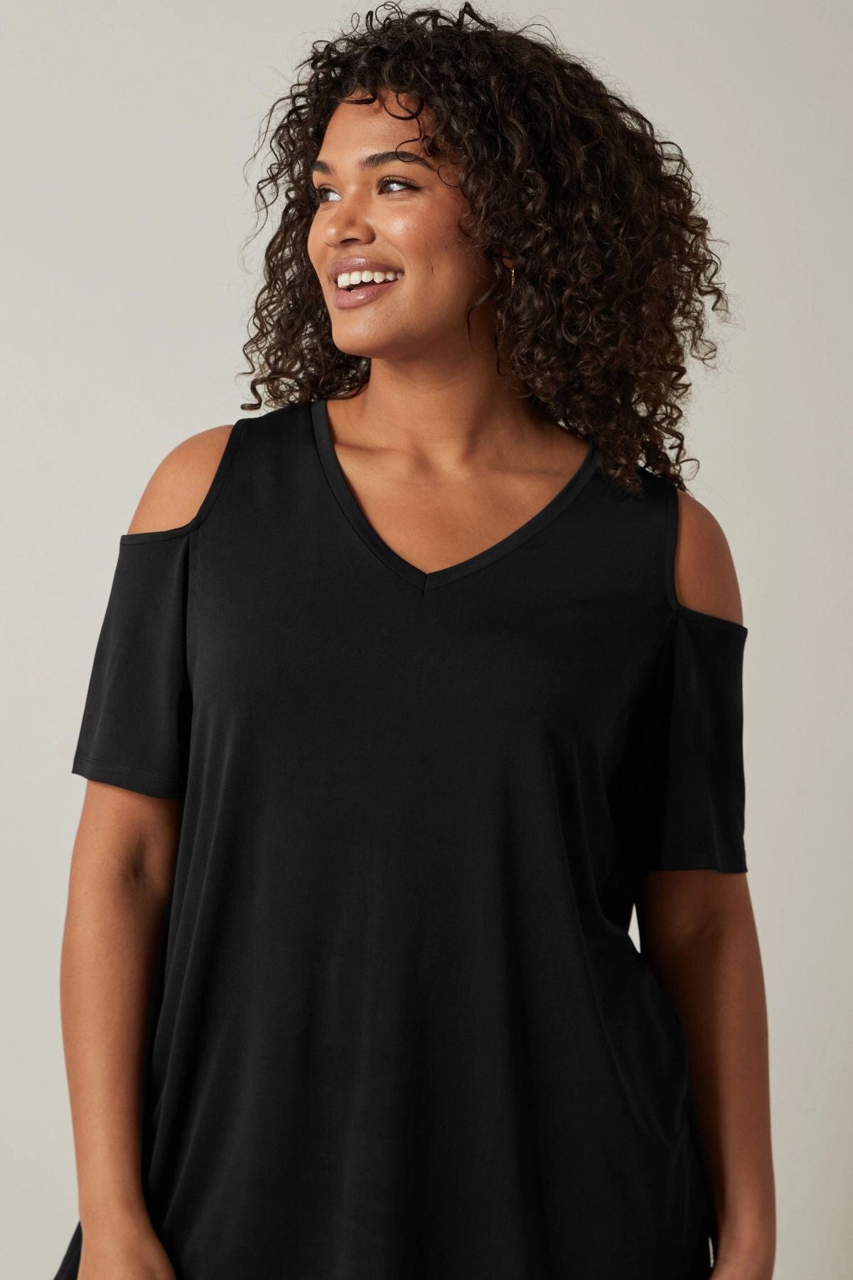 Büyük Beden V Yaka Omuz Detaylı Kısa Kollu Bluz 615387