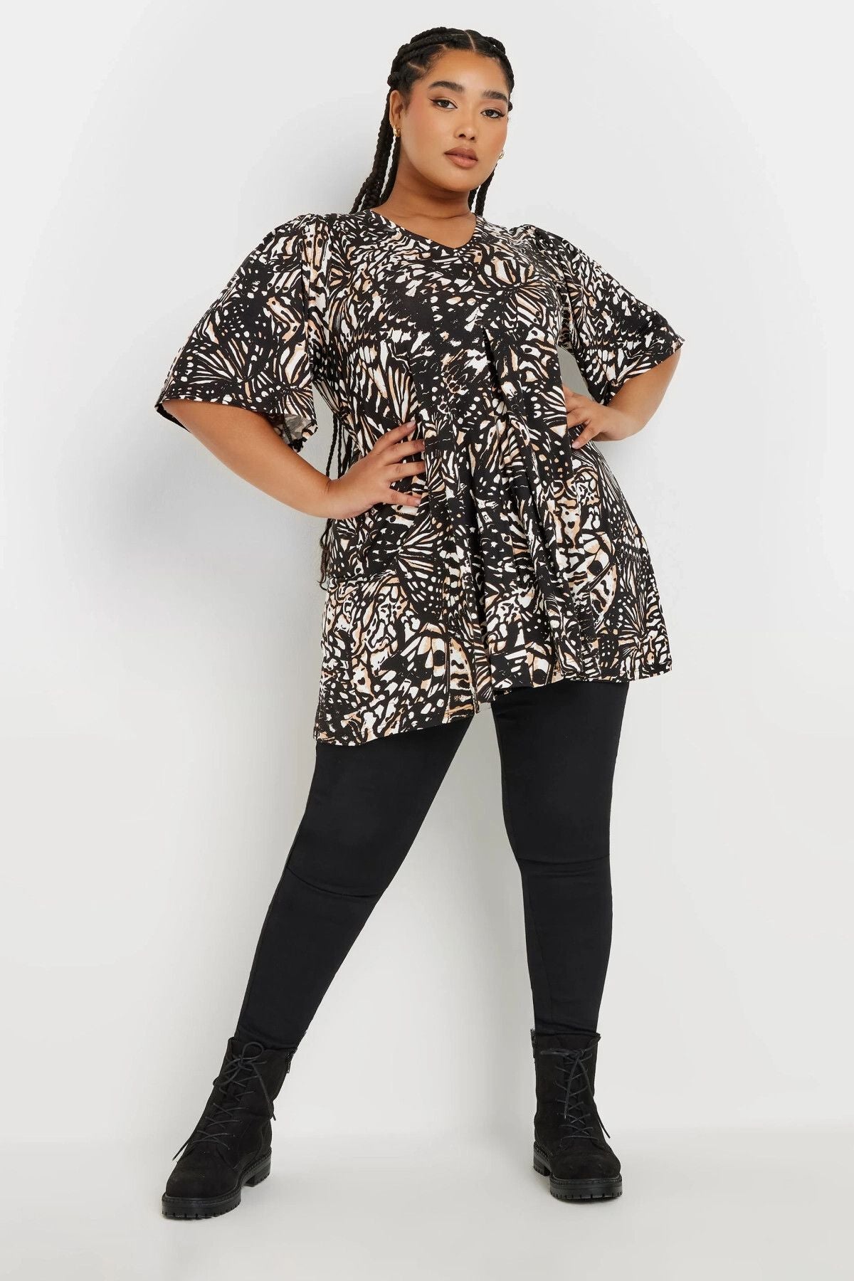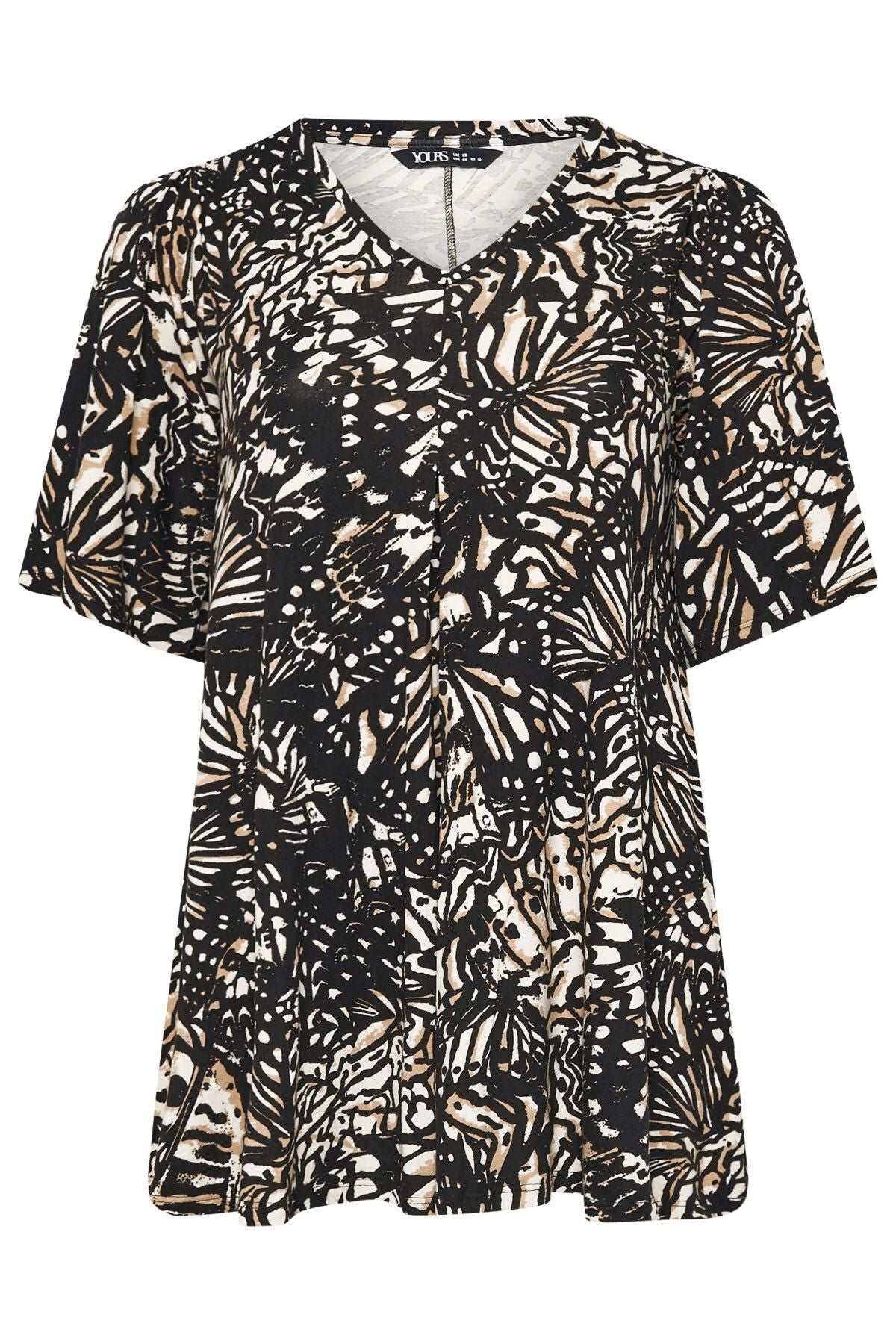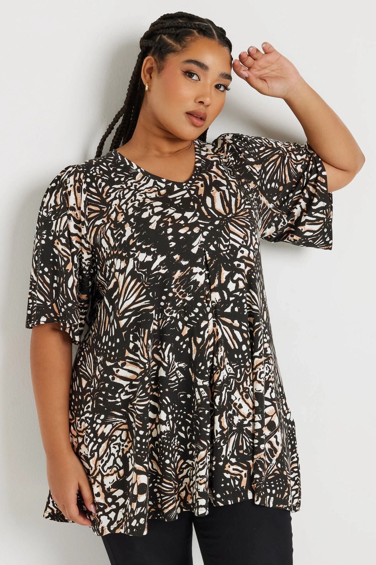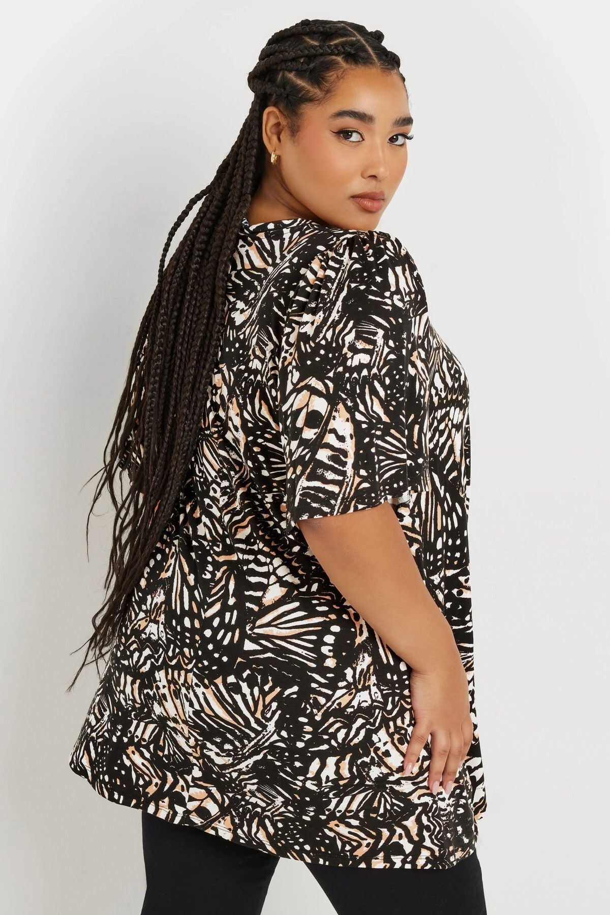 Büyük Beden V Yaka Ön Pileli Kısa Kollu Desenli Bluz 303725