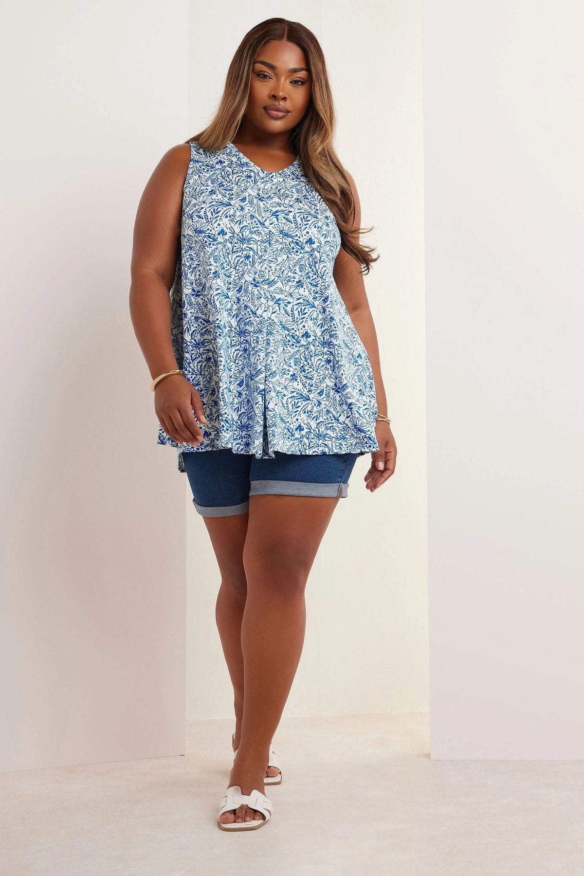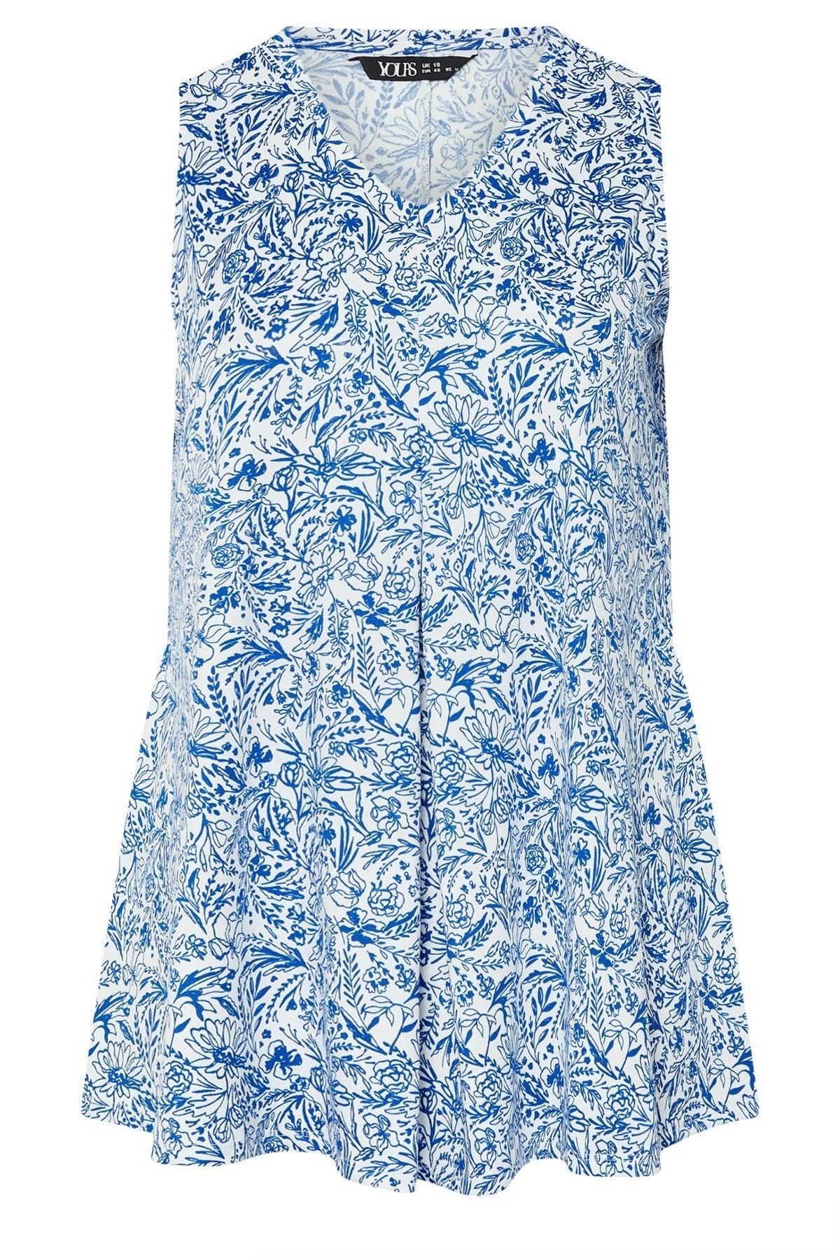 Büyük Beden V Yaka Önü Pileli Kolsuz Çiçek Desenli T-shirt 322684