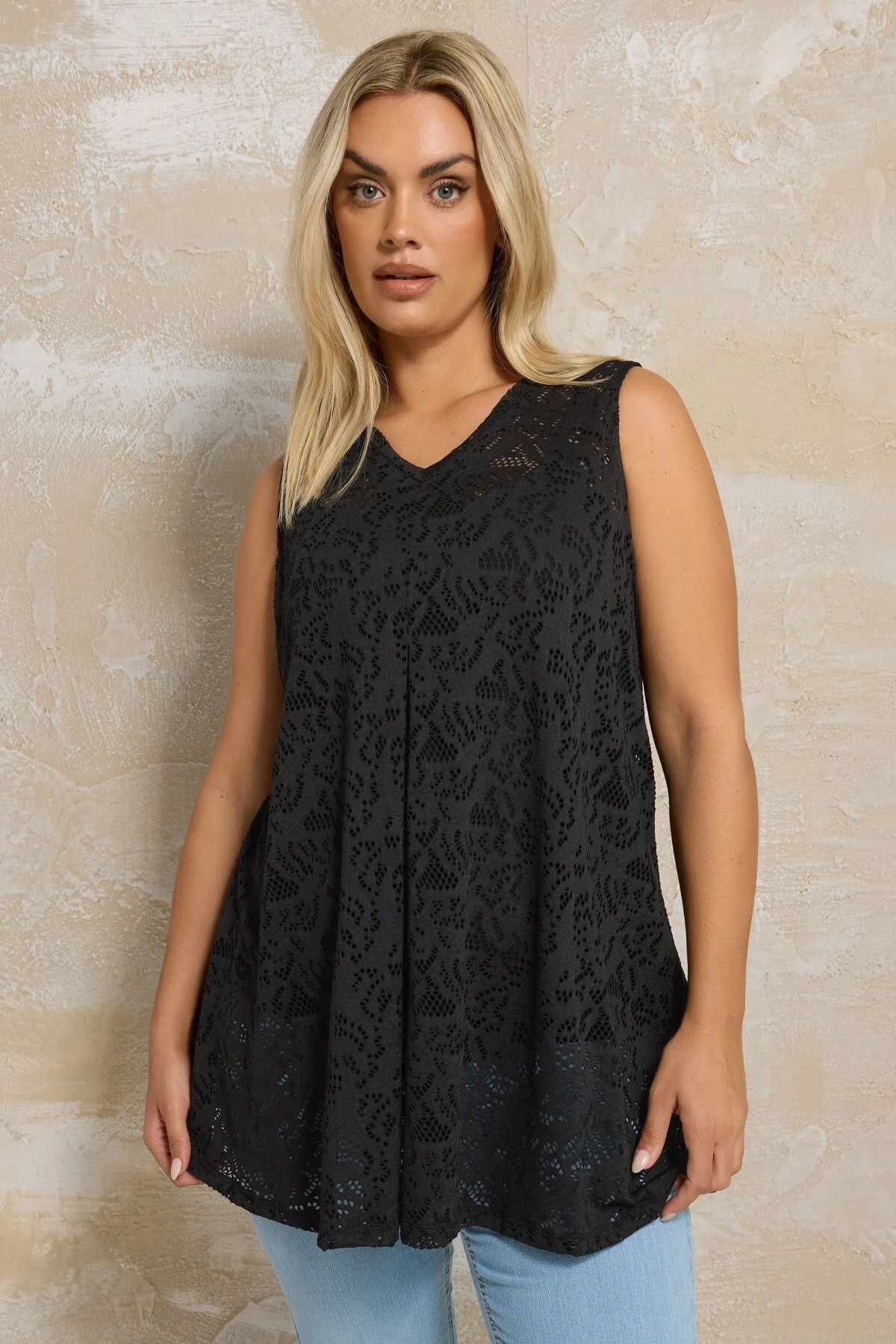 Büyük Beden V Yaka Sıfır Kol Astarsız Dantel Bluz 304101