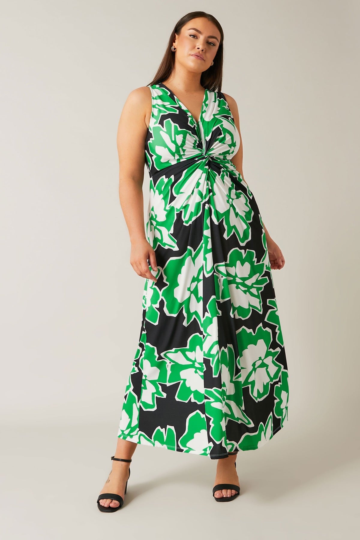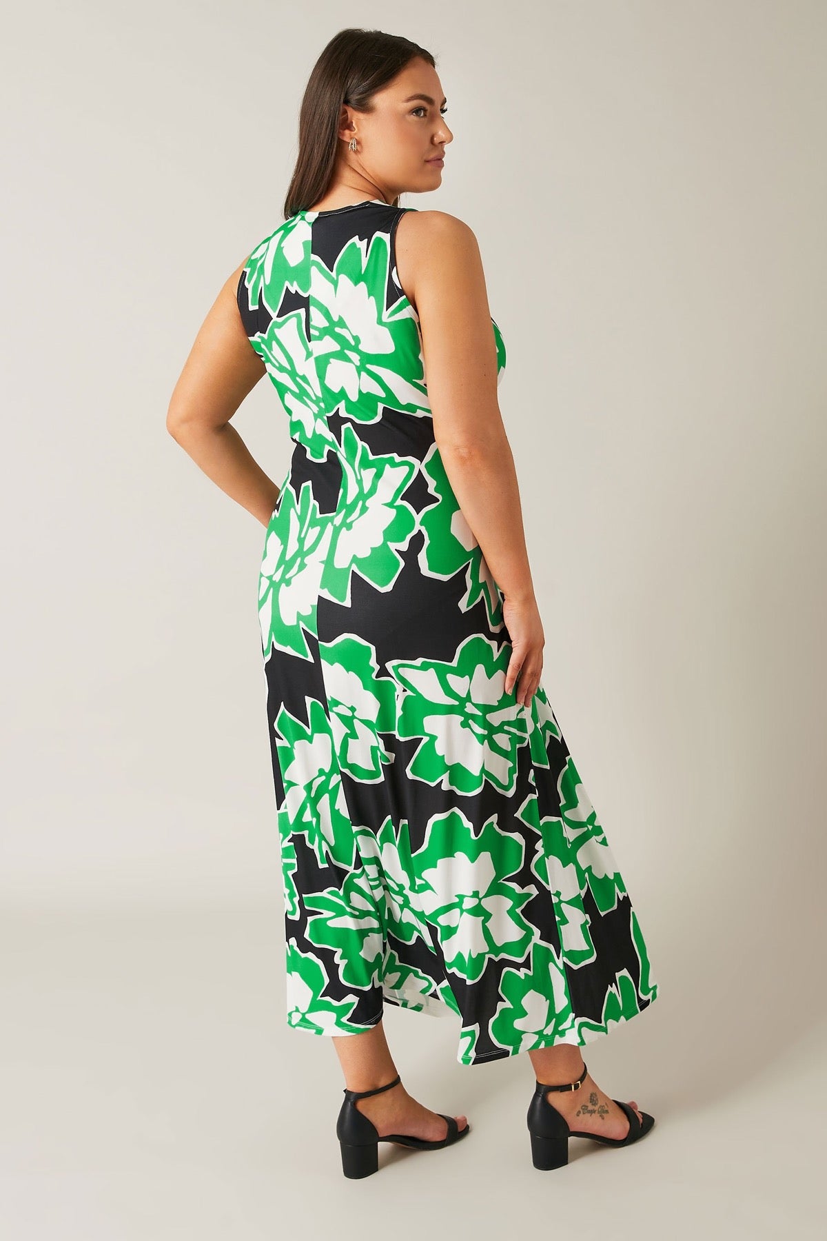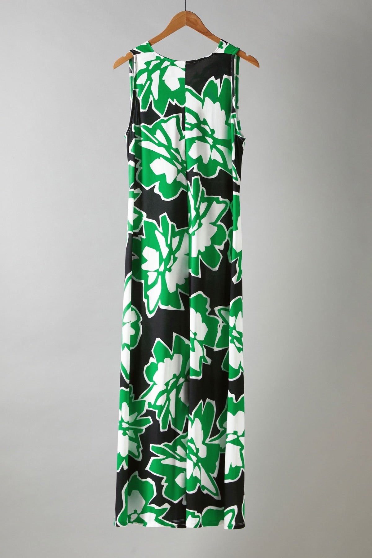 Büyük Beden V Yaka Sıfır Kol Çiçek Desenli Önü Büzgülü Maxi Elbise 615376