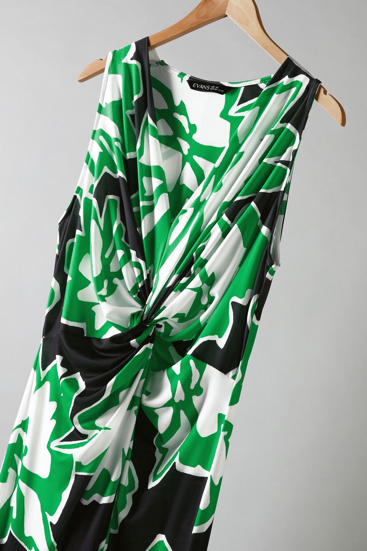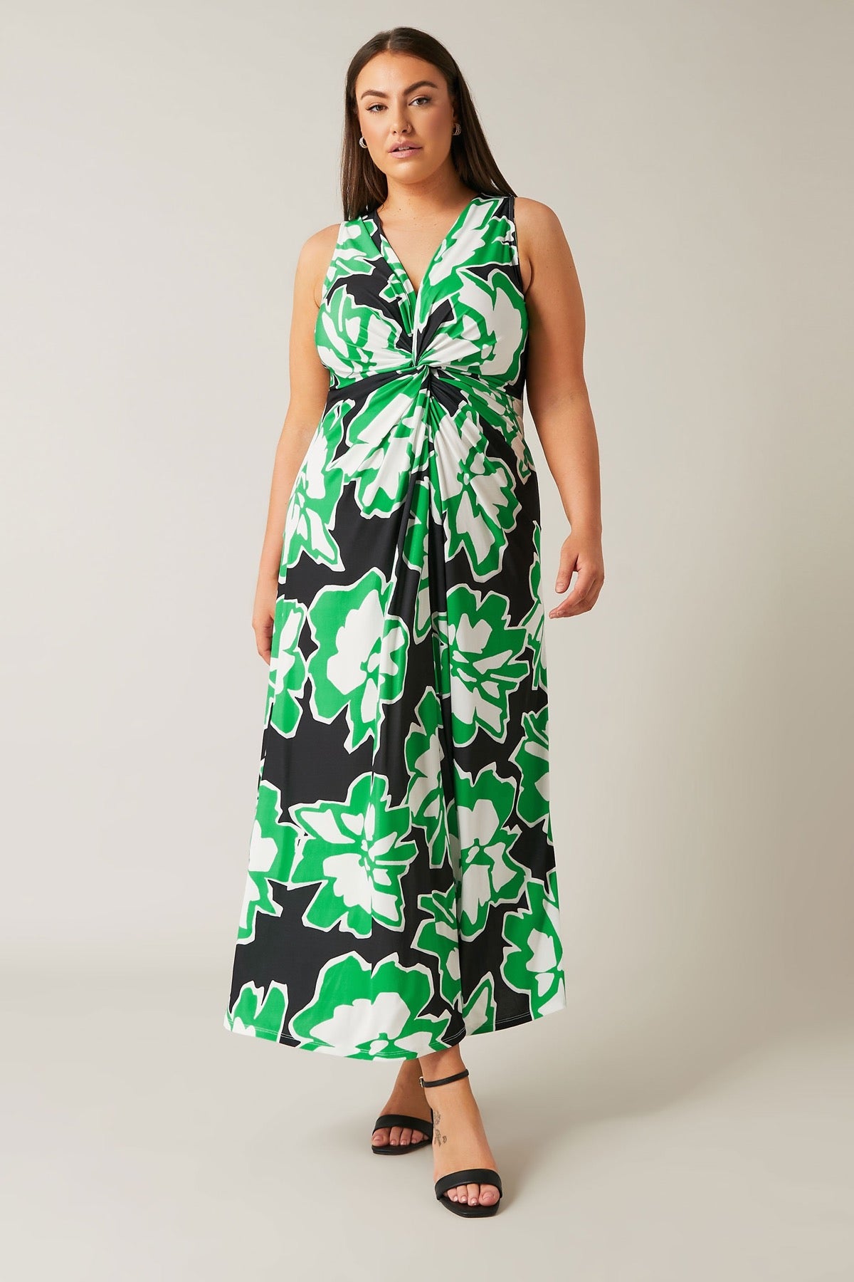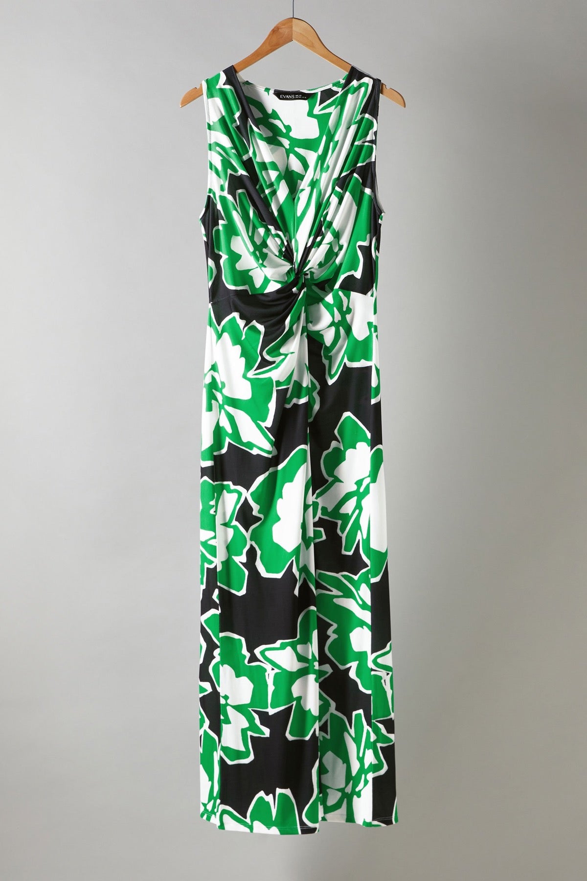 Büyük Beden V Yaka Sıfır Kol Çiçek Desenli Önü Büzgülü Maxi Elbise 615376