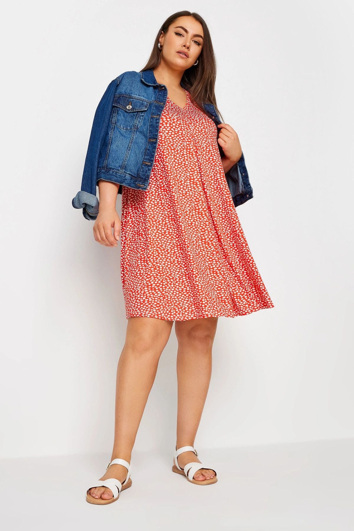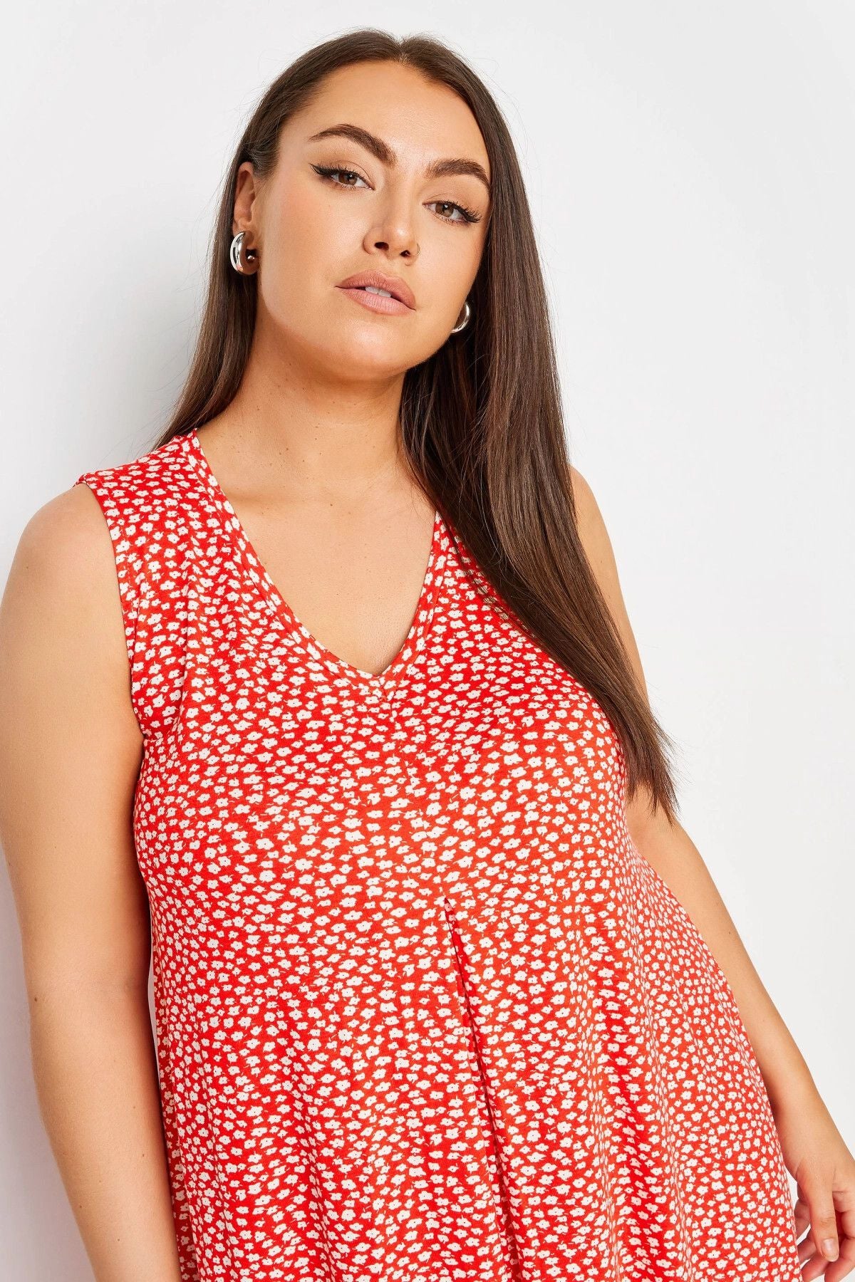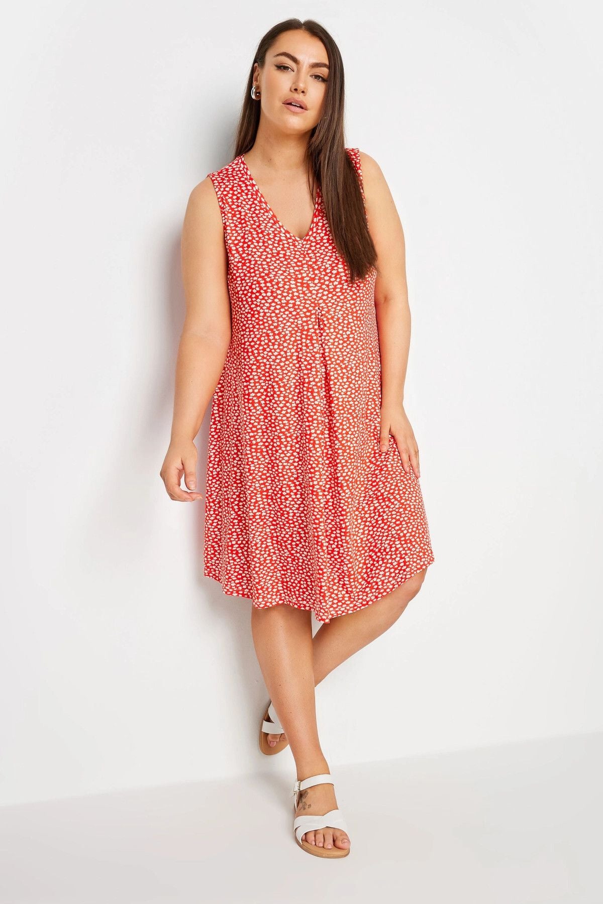 Büyük Beden V Yaka Sıfır Kol Desenli Kısa Elbise 303112