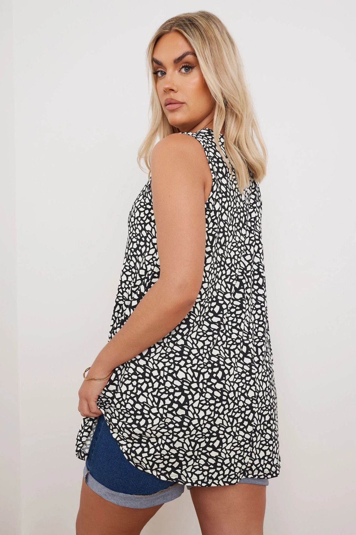 Büyük Beden V Yaka Sıfır Kol Eteği Bollaşan Desenli Bluz 304029