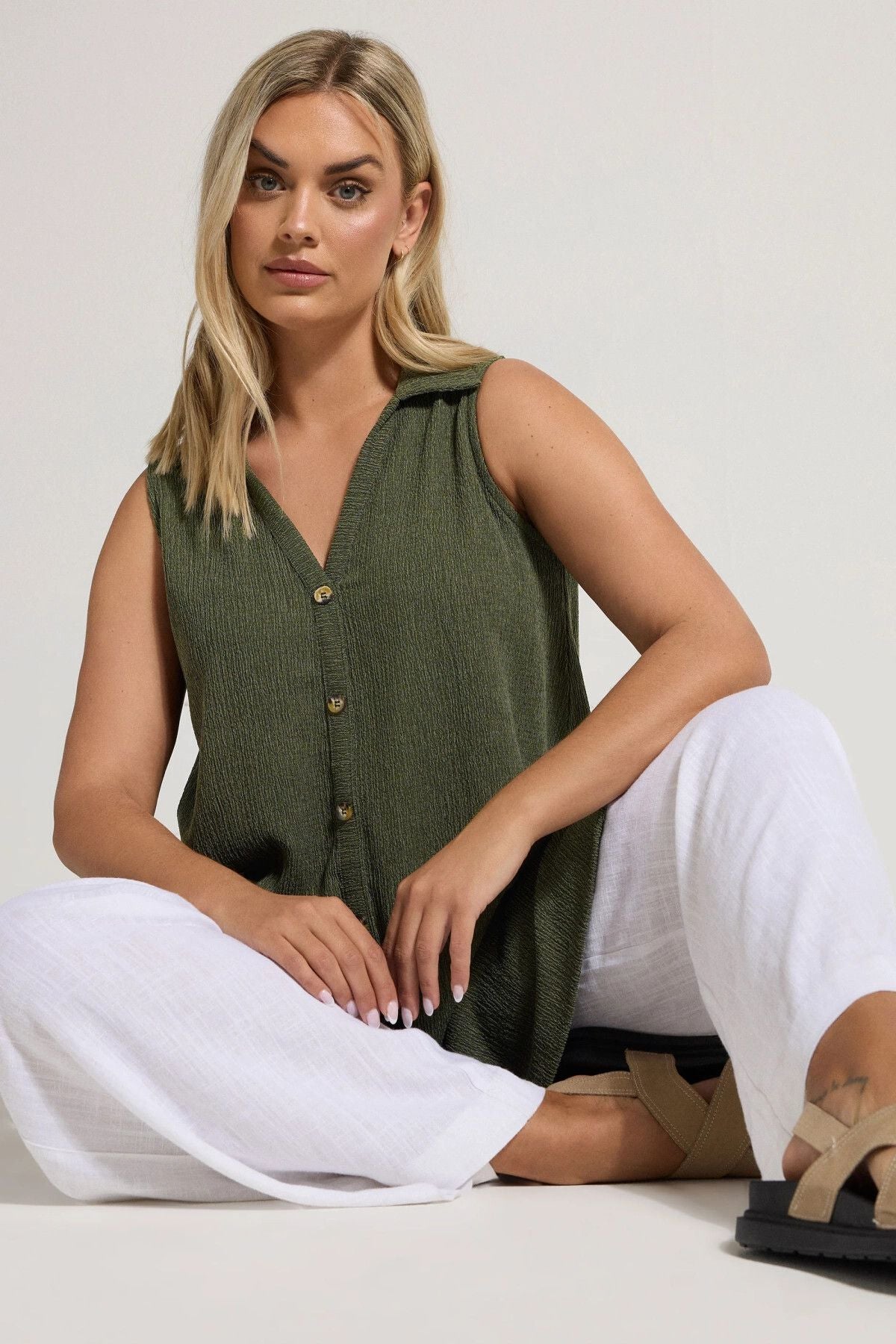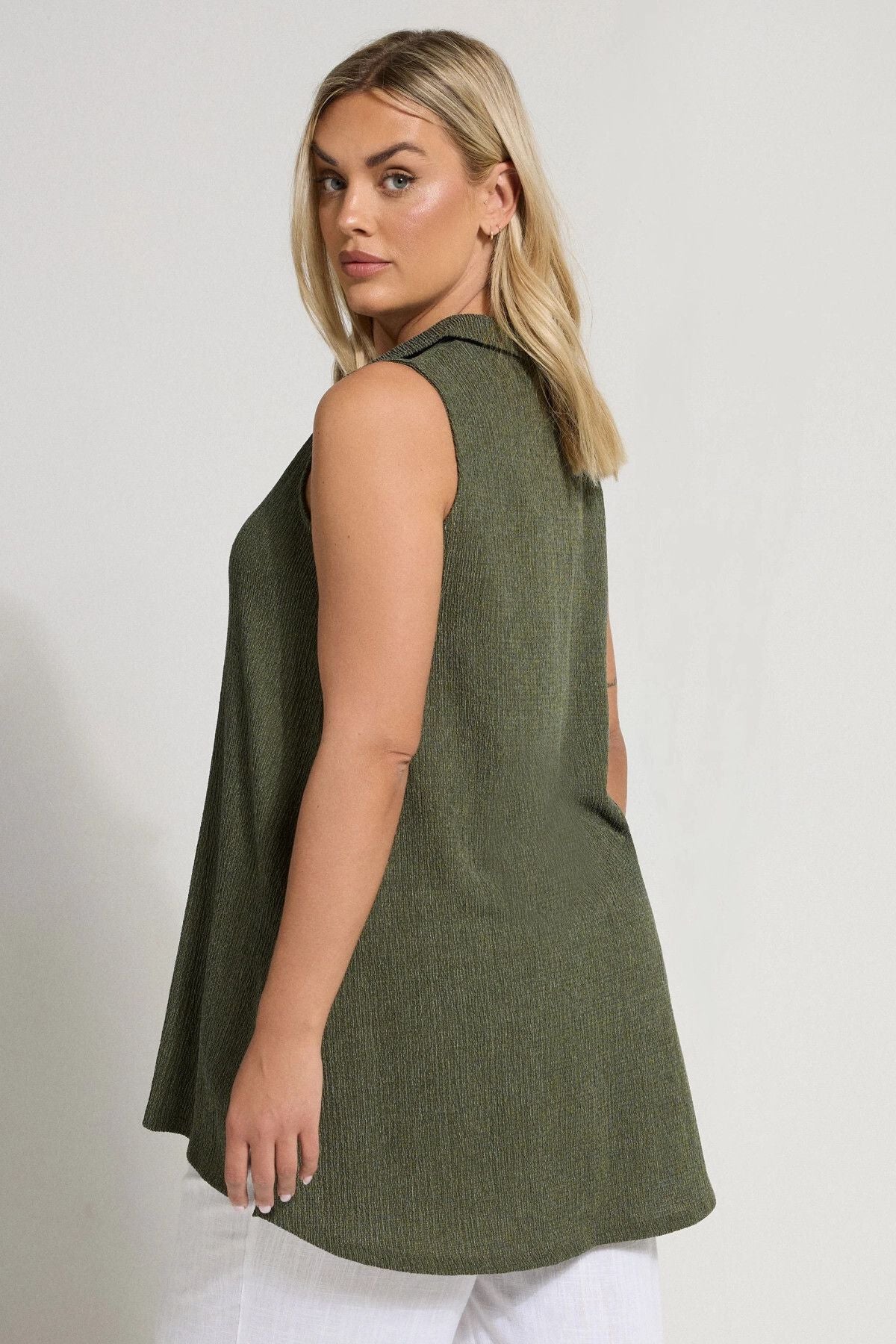 Büyük Beden V Yaka Sıfır Kol Önü Düğmeli Esnek Gömlek 322691