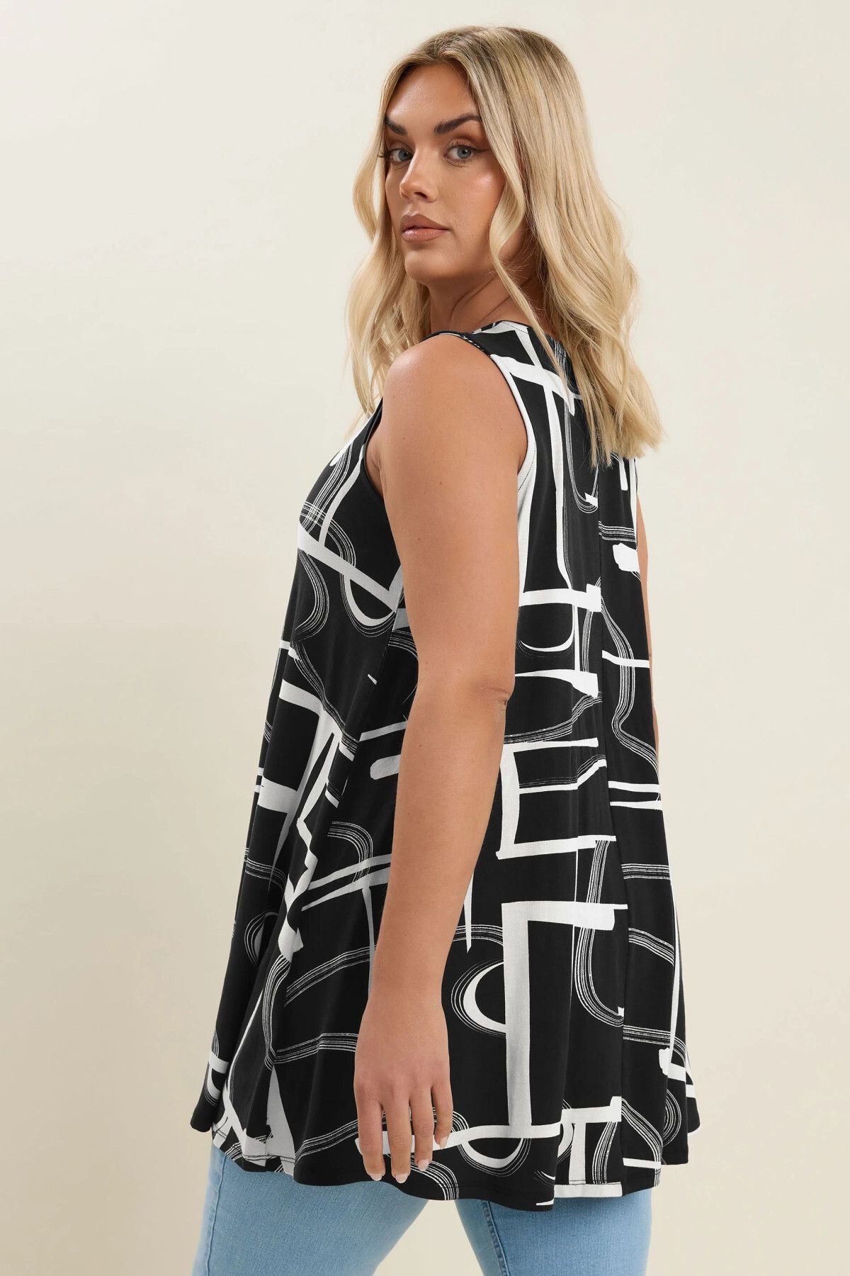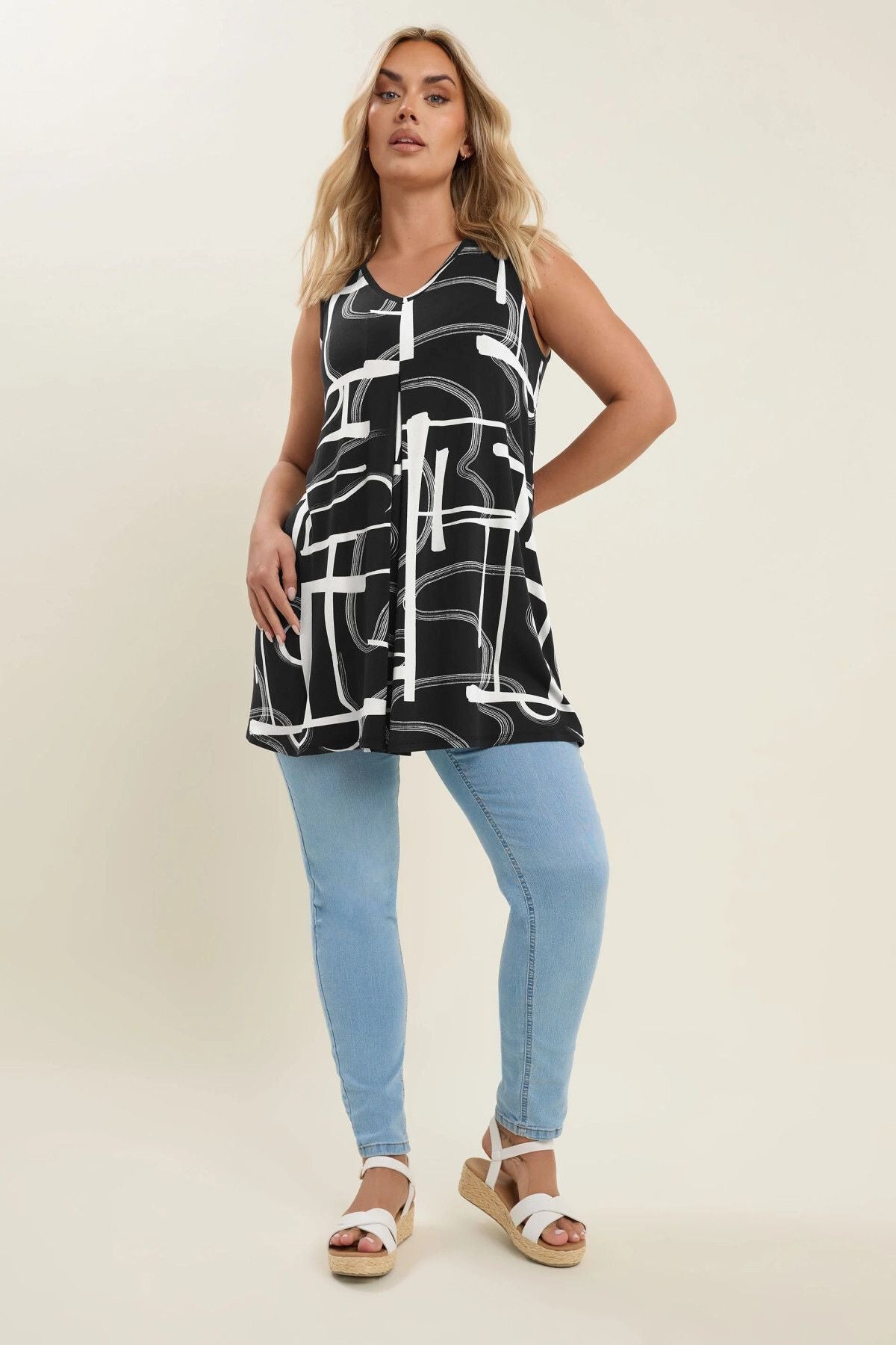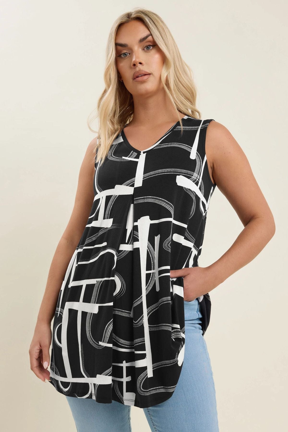 Büyük Beden V Yaka Sıfır Kol Pileli Desenli Likralı Bluz 304105