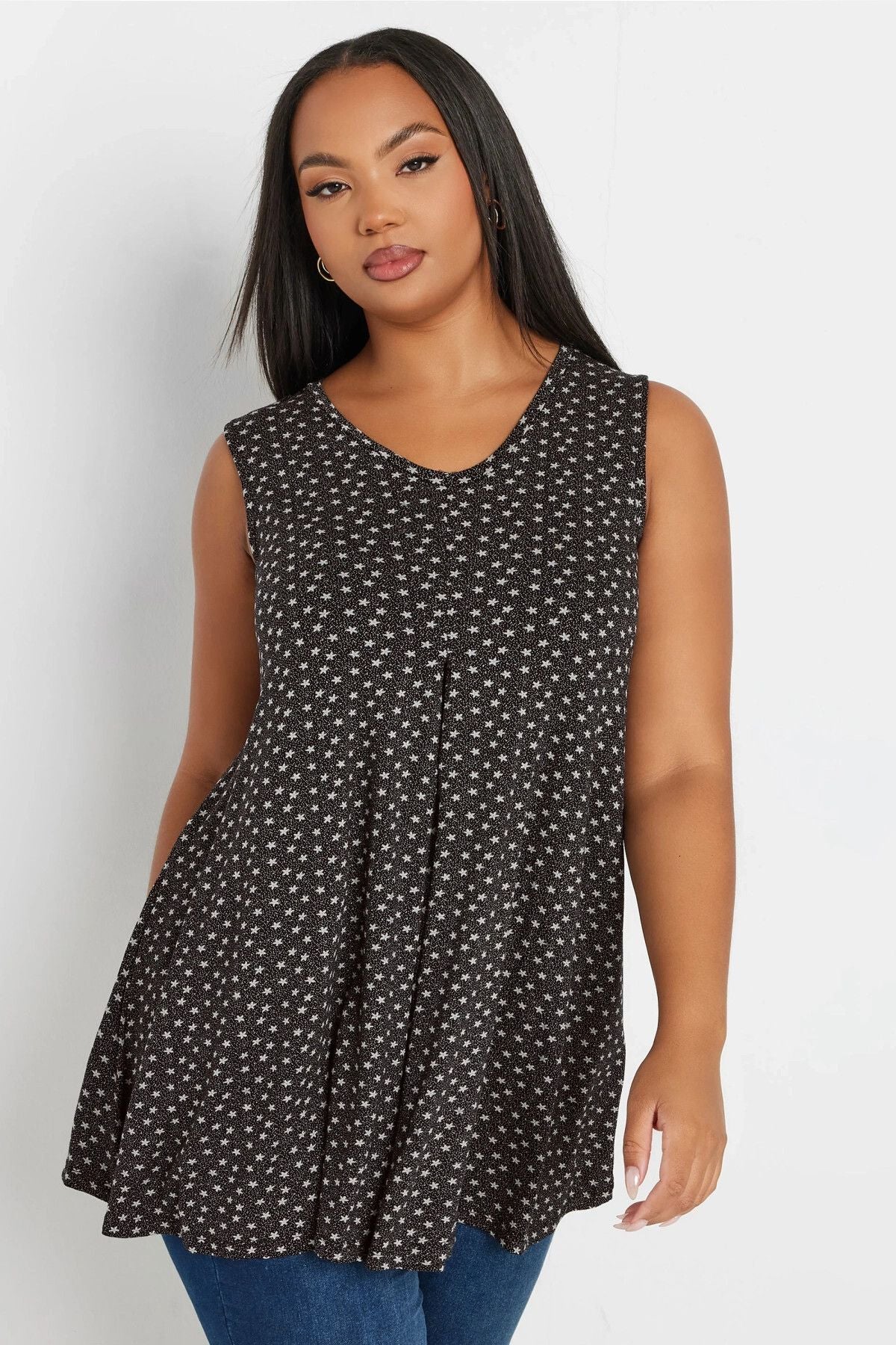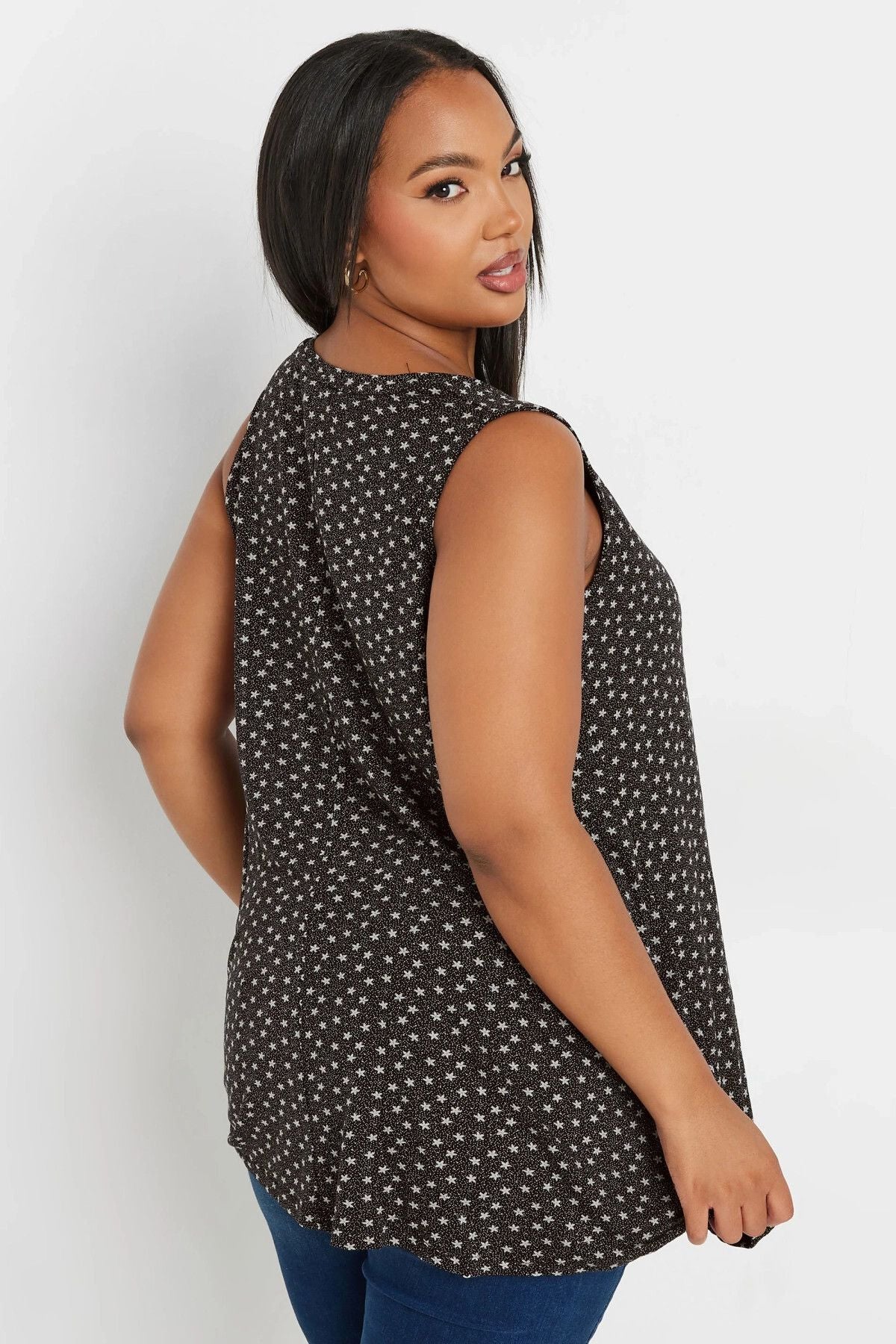 Büyük Beden V Yaka Sıfır Kol Yıldız Desenli Bluz 303416