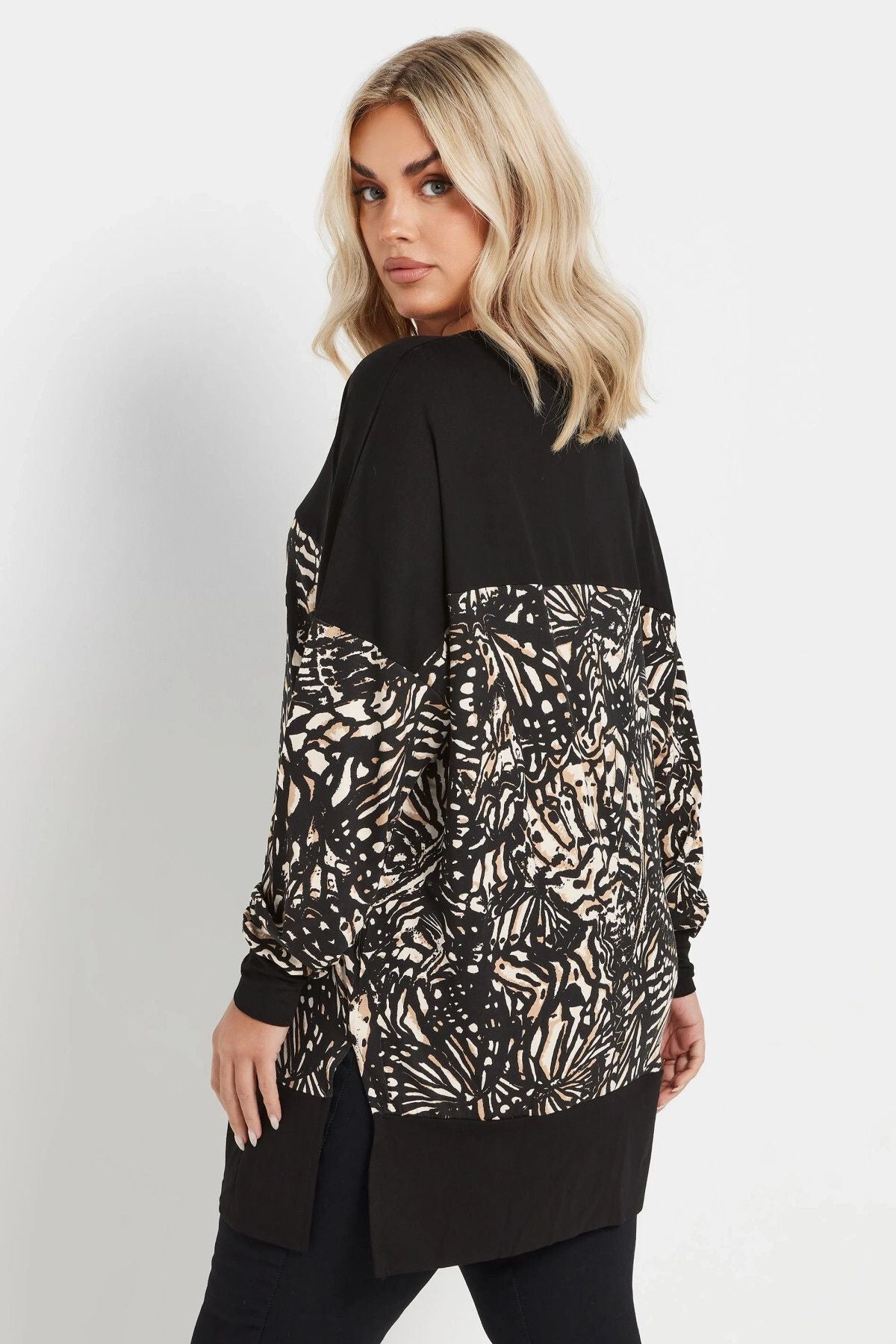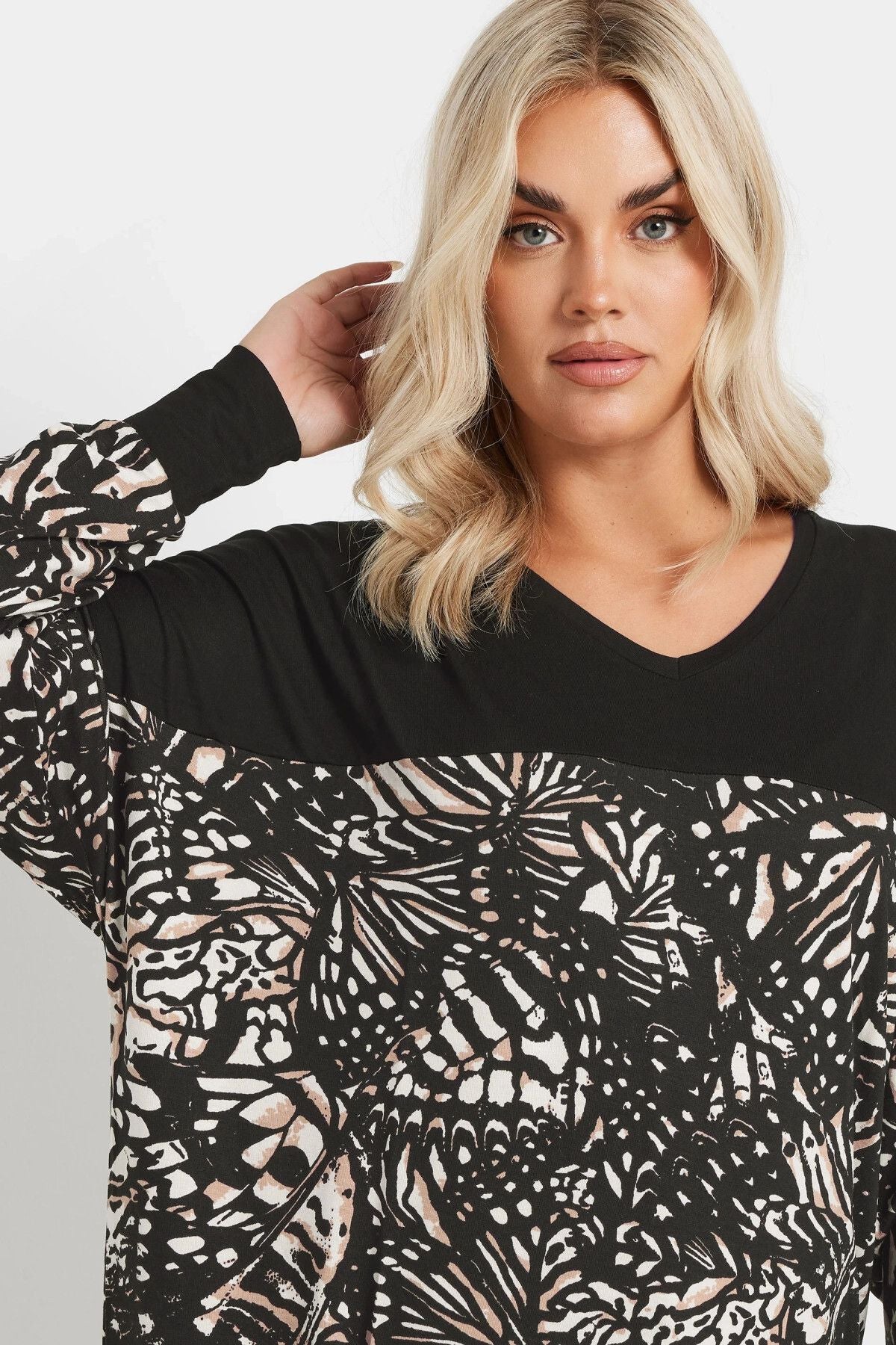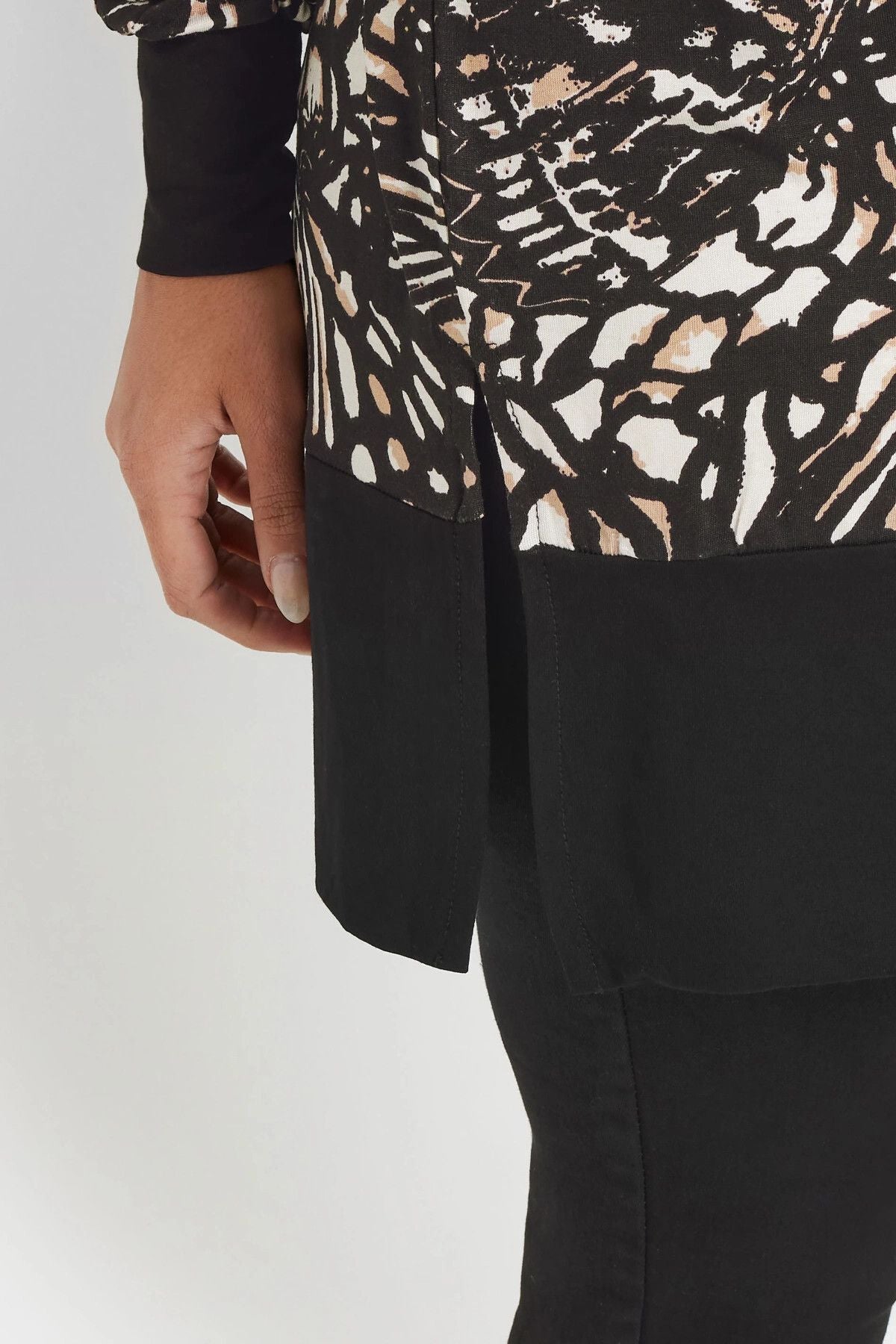 Büyük Beden V Yaka Uzun Kollu Bileği Lastikli Yırtmaçlı Bluz 303724