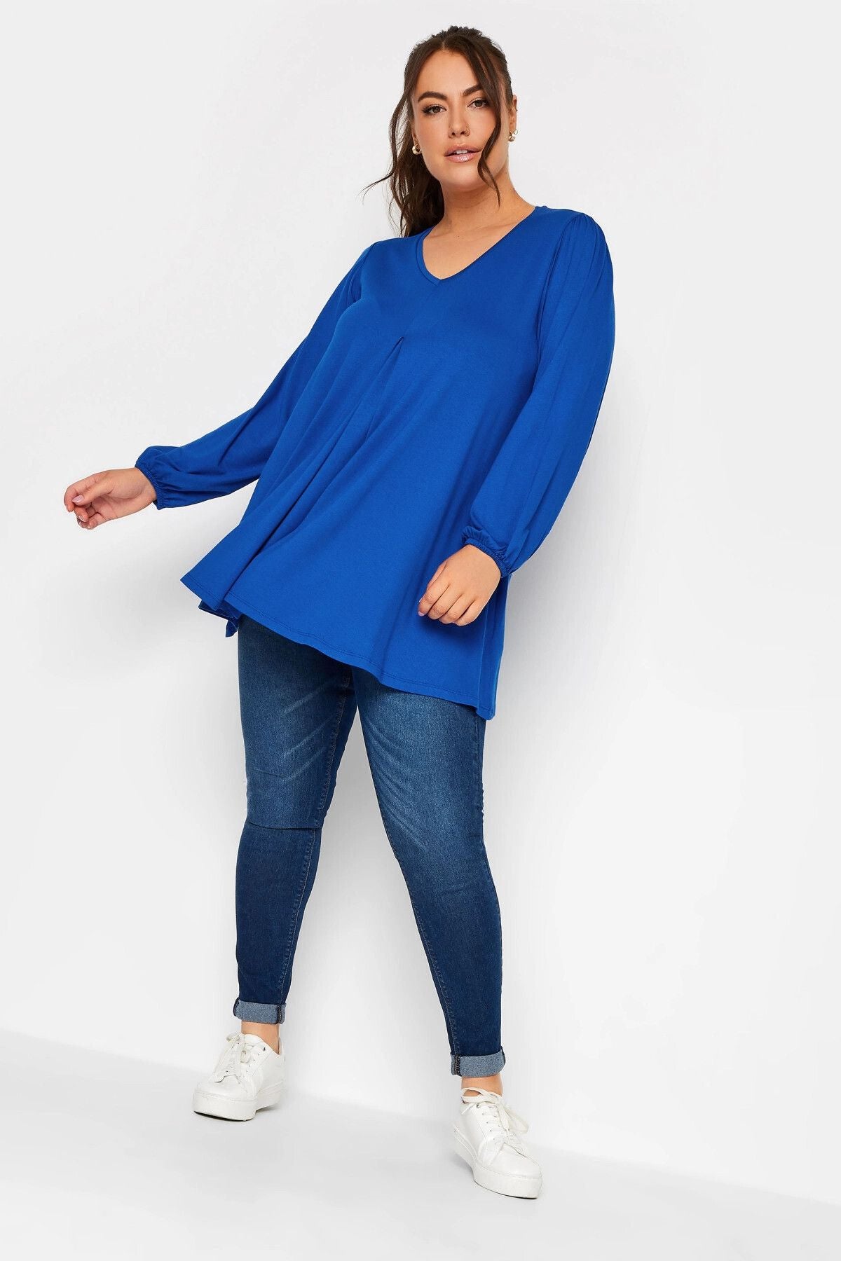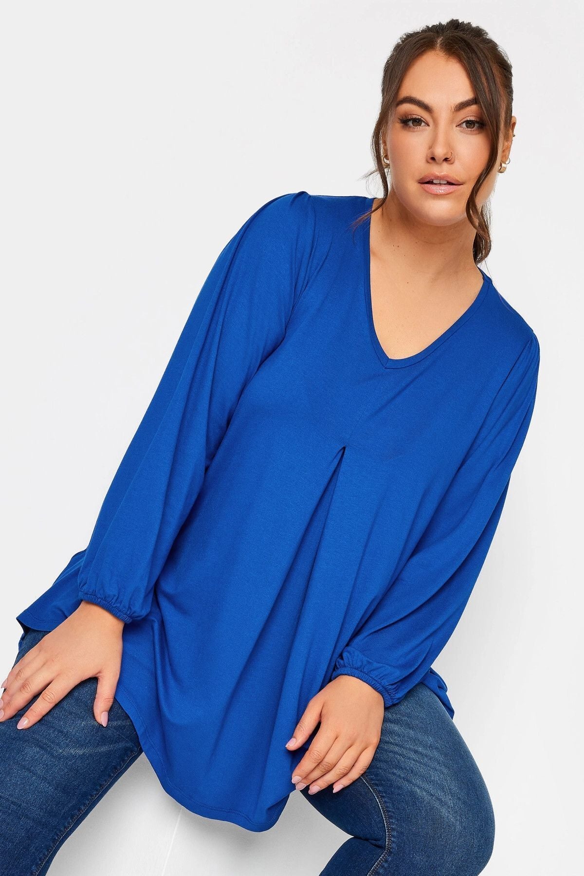 Büyük Beden V Yaka Uzun Kollu Bilekleri Lastikli Bluz 321115