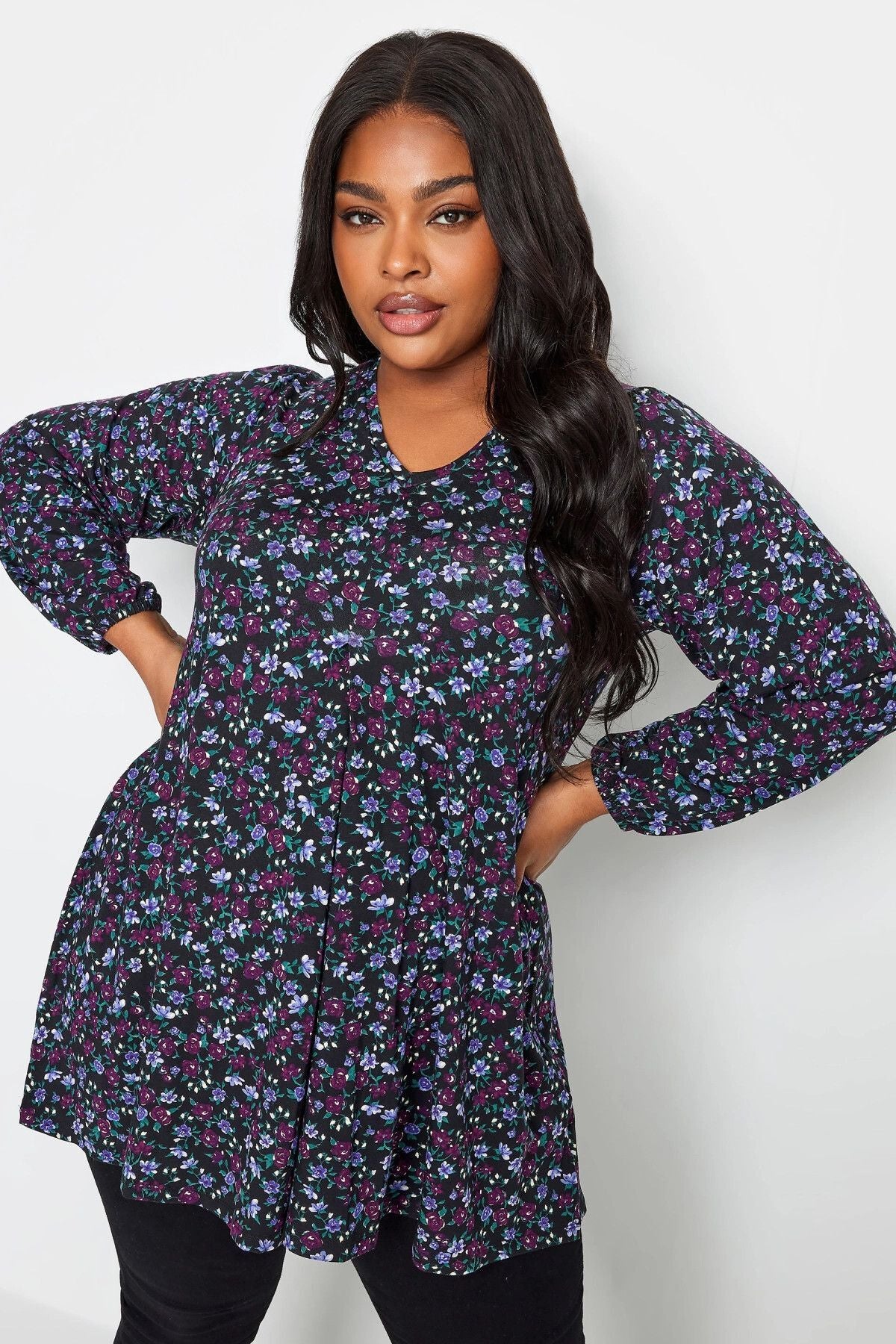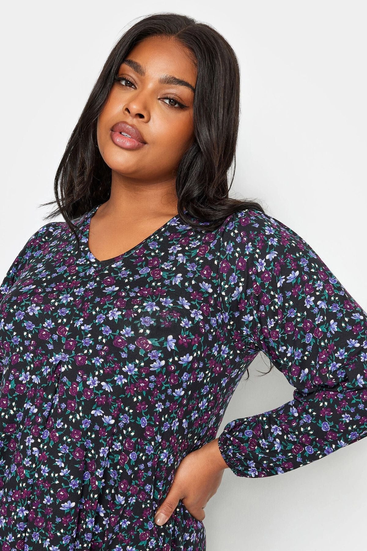 Büyük Beden V Yaka Uzun Kollu Bilekleri Lastikli Eteği Fırfırlı Likralı Bluz 321406