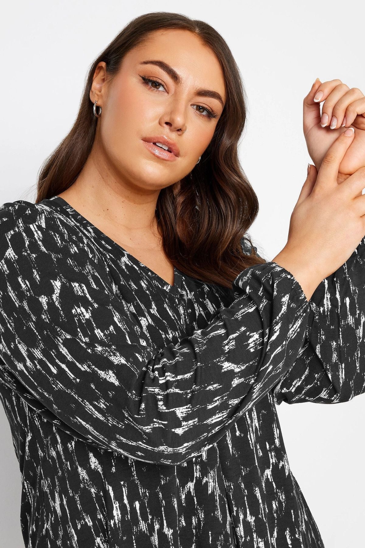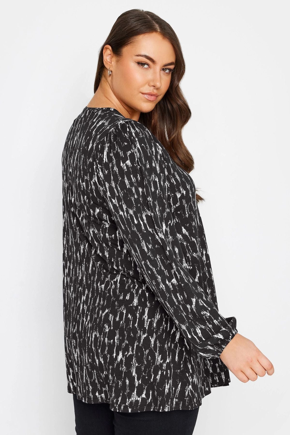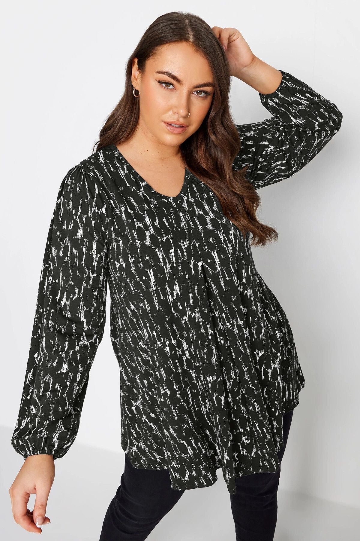 Büyük Beden V Yaka Uzun Kollu Bilekleri Lastikli Eteği Fırfırlı Likralı Bluz 321468