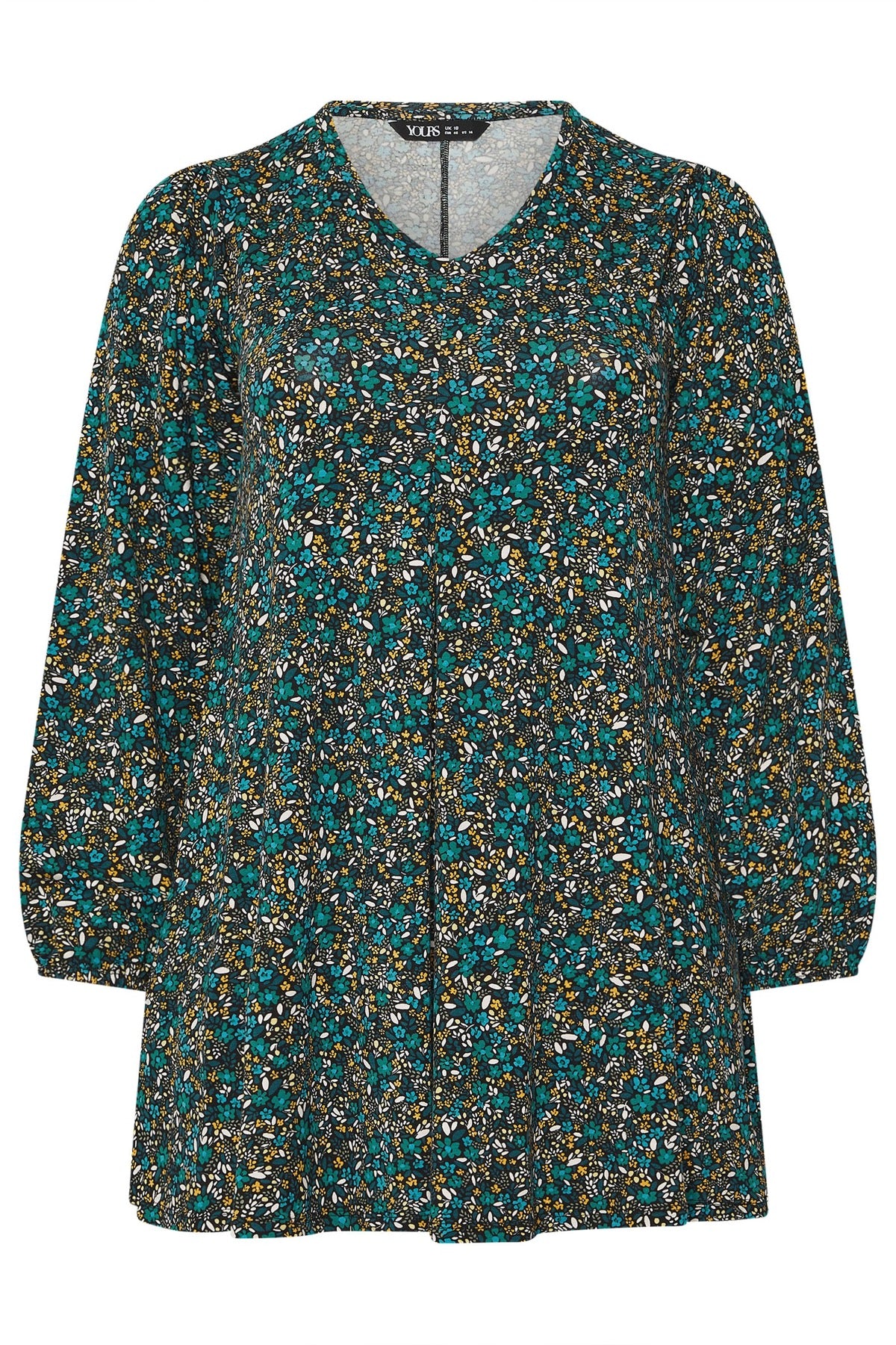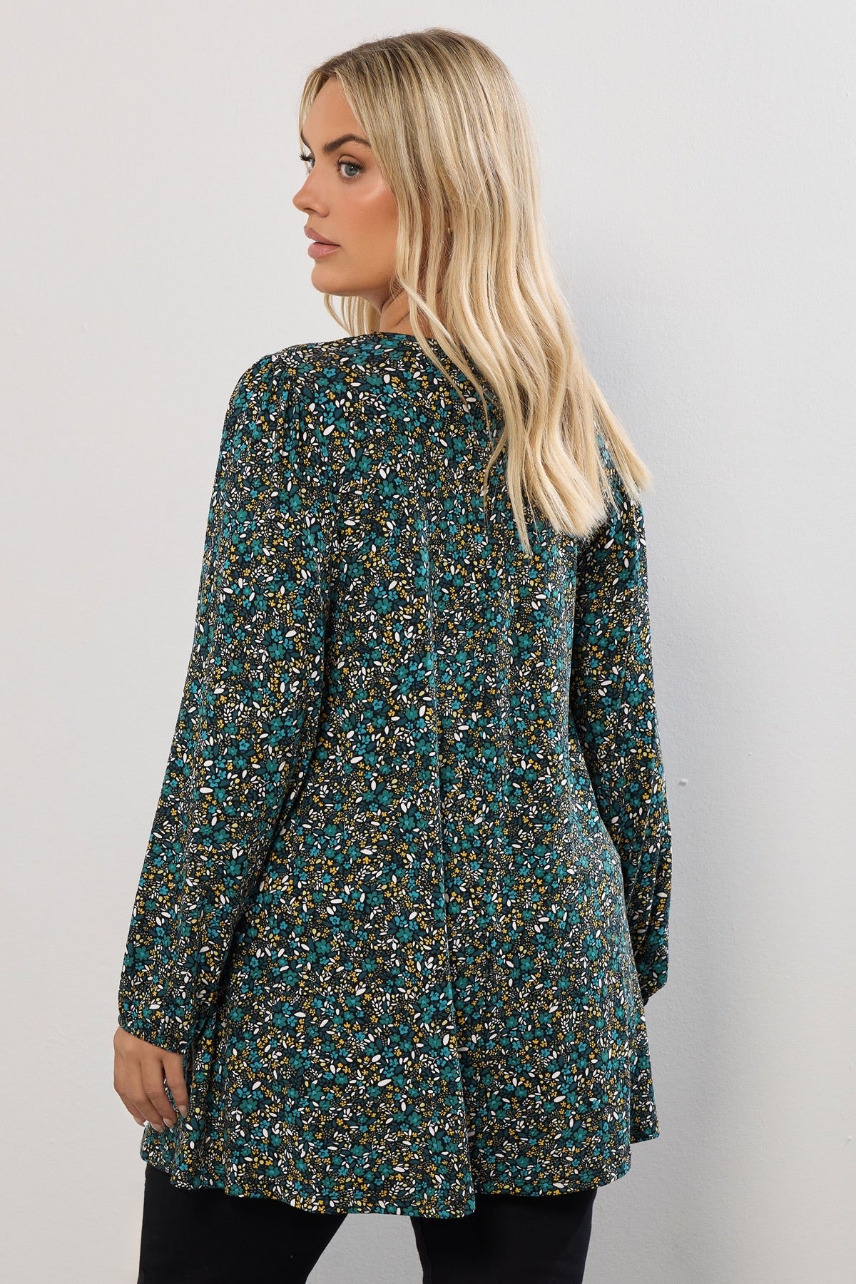 Büyük Beden V Yaka Uzun Kollu Çiçek Desenl T-shirt 322980