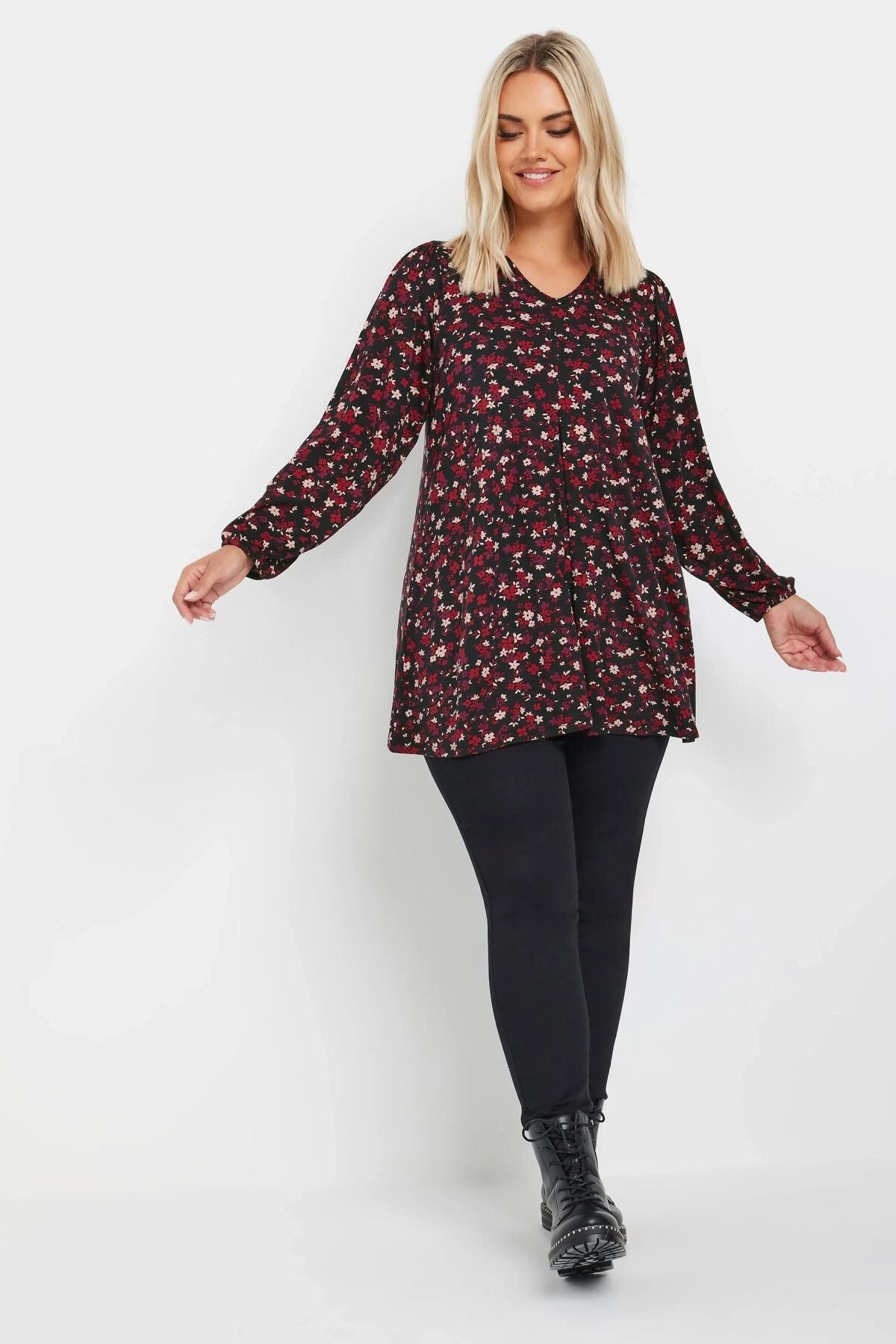 Büyük Beden V Yaka Uzun Kollu Çiçek Desenli Bluz 322098