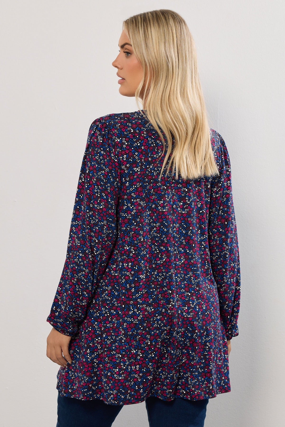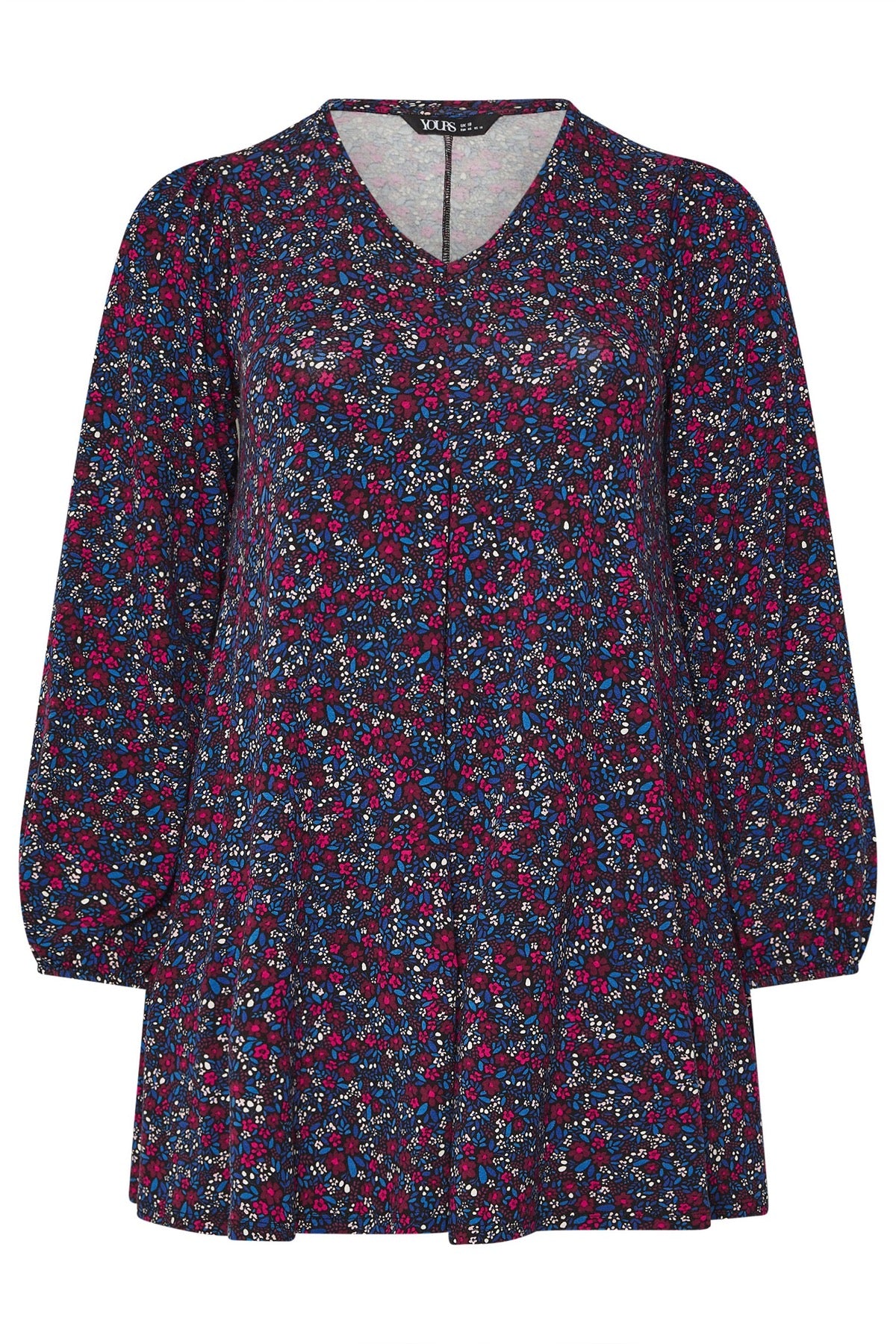 Büyük Beden V Yaka Uzun Kollu Çiçek Desenli T-shirt 322979