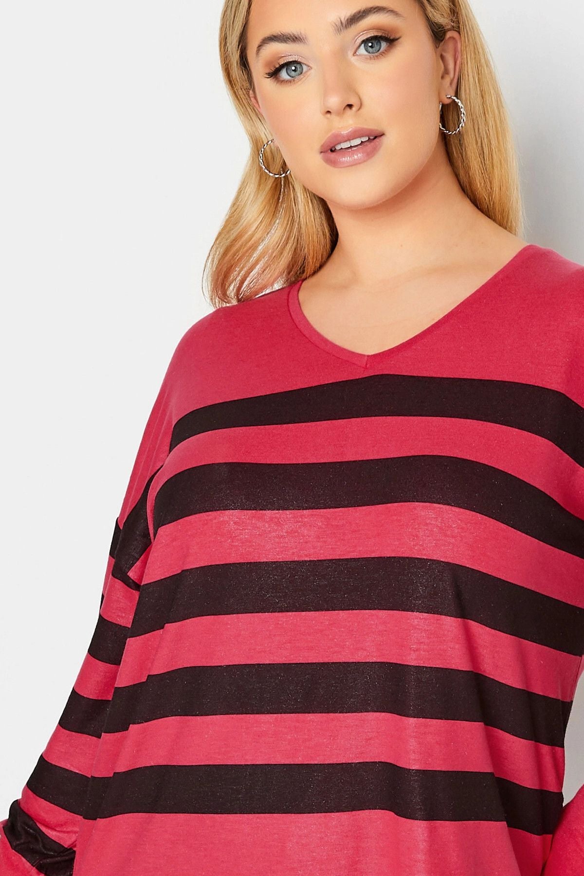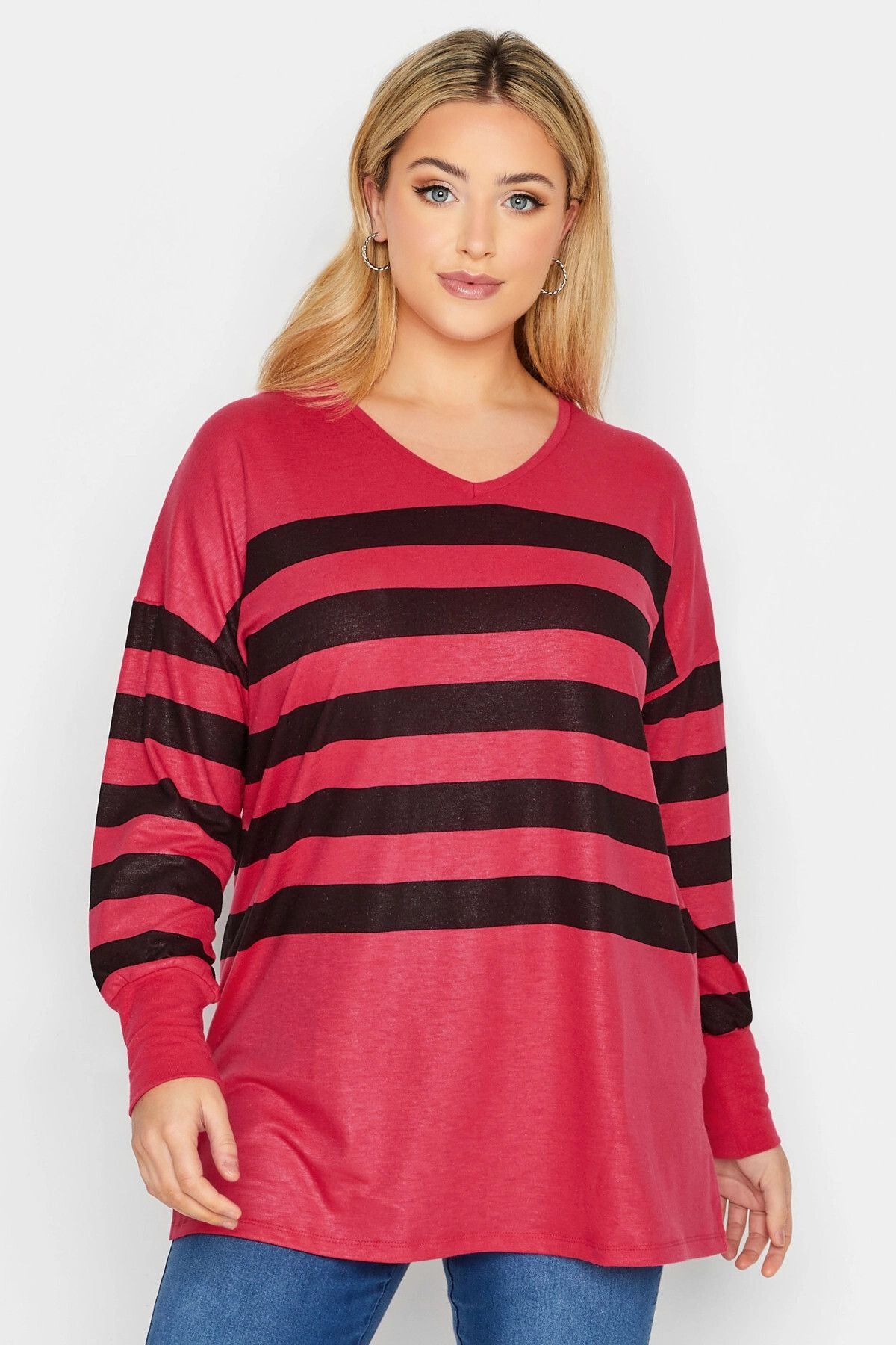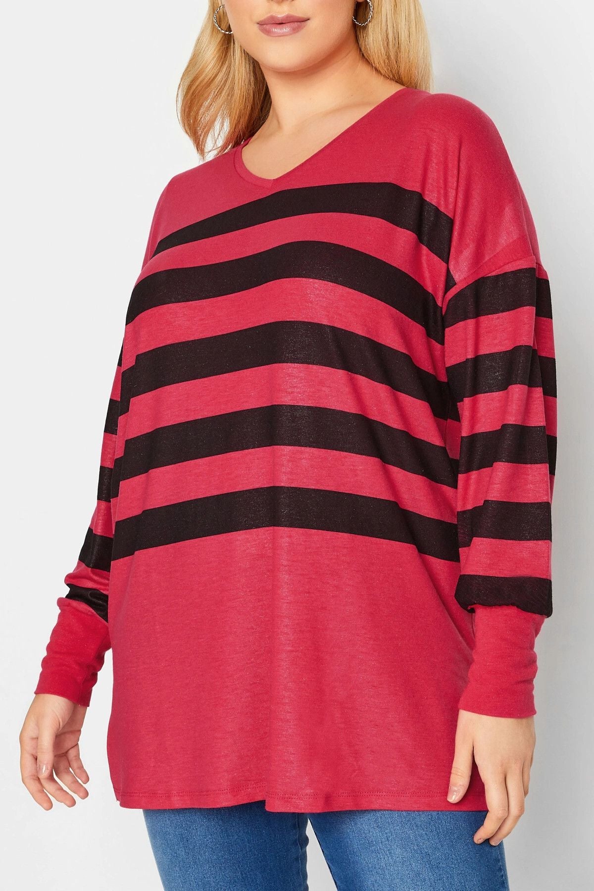 Büyük Beden V Yaka Uzun Kollu Çizgili Bluz 301566
