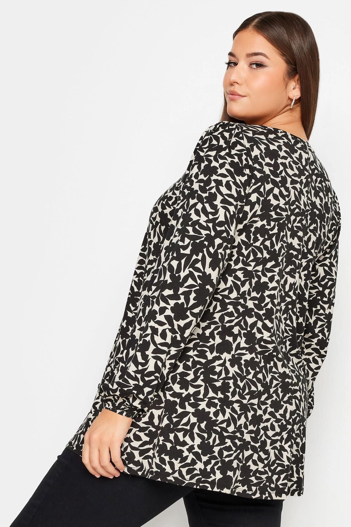 Büyük Beden V Yaka Uzun Kollu Kolları Lastikli Desenli Bluz 302721