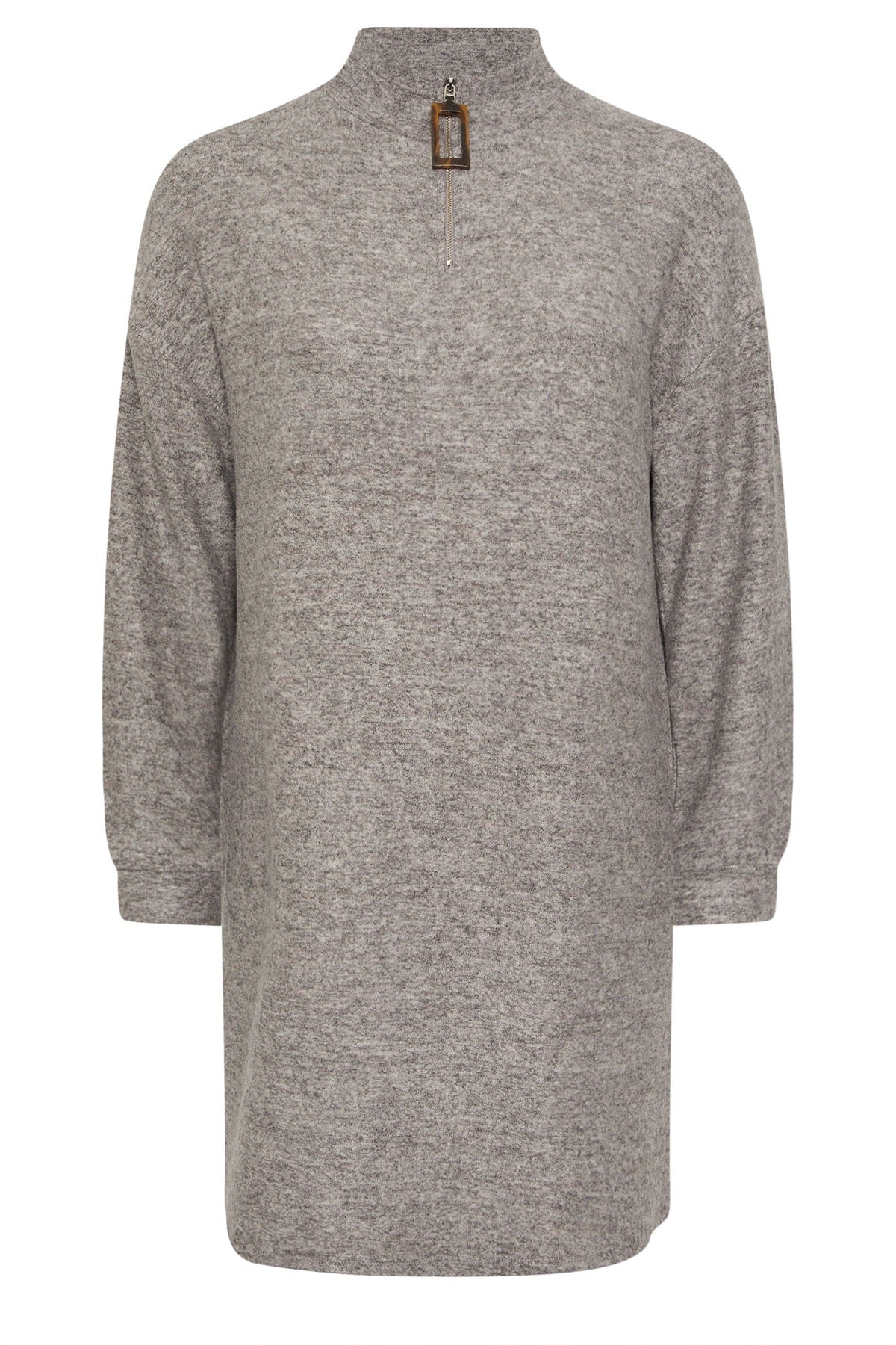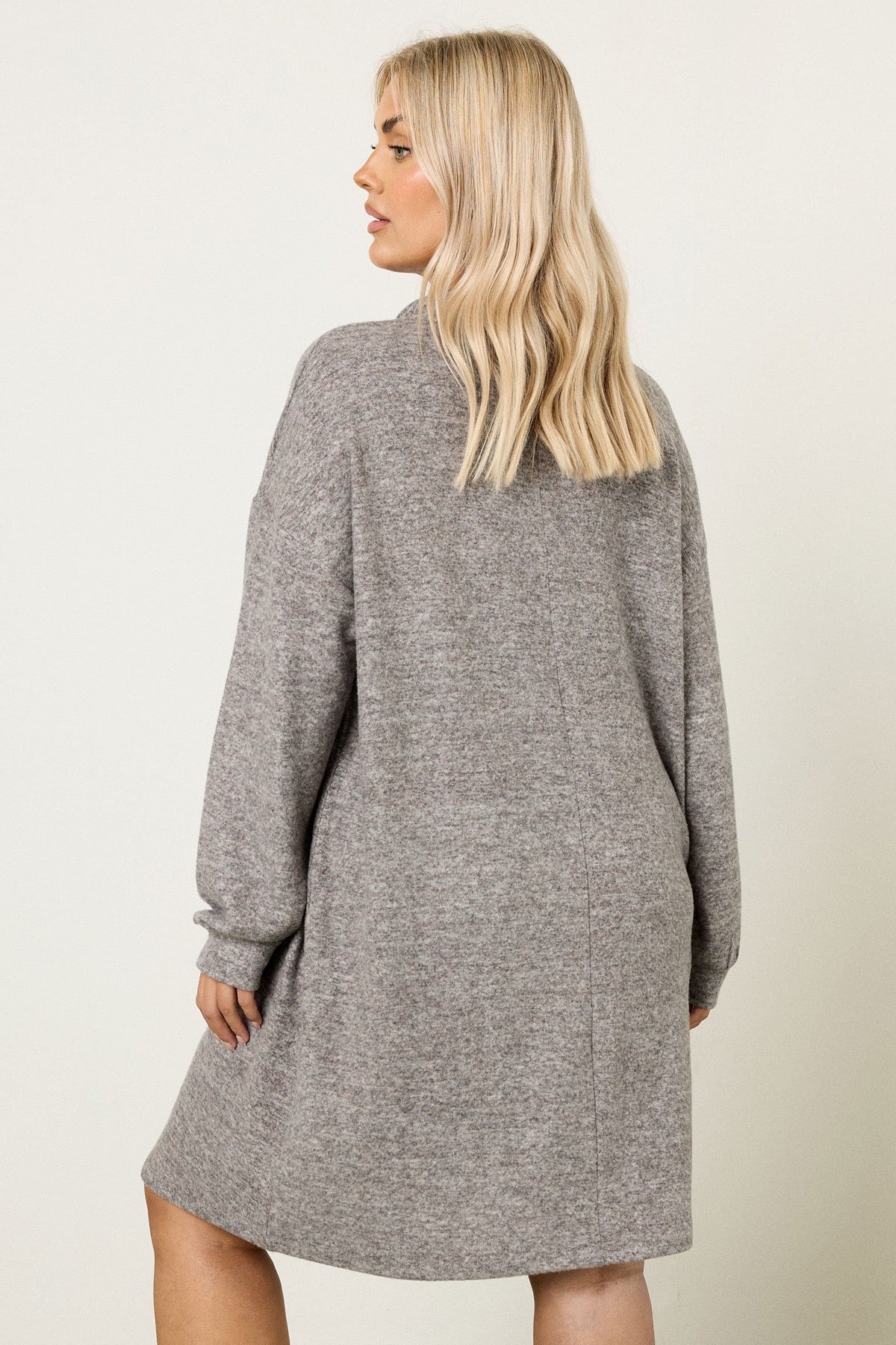 Büyük Beden V Yaka Uzun Kollu Peluş Kumaş Midi Elbise 304280