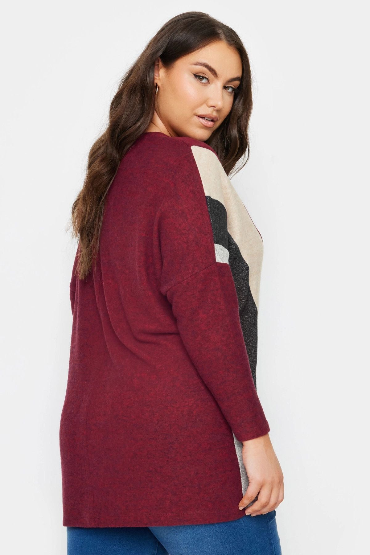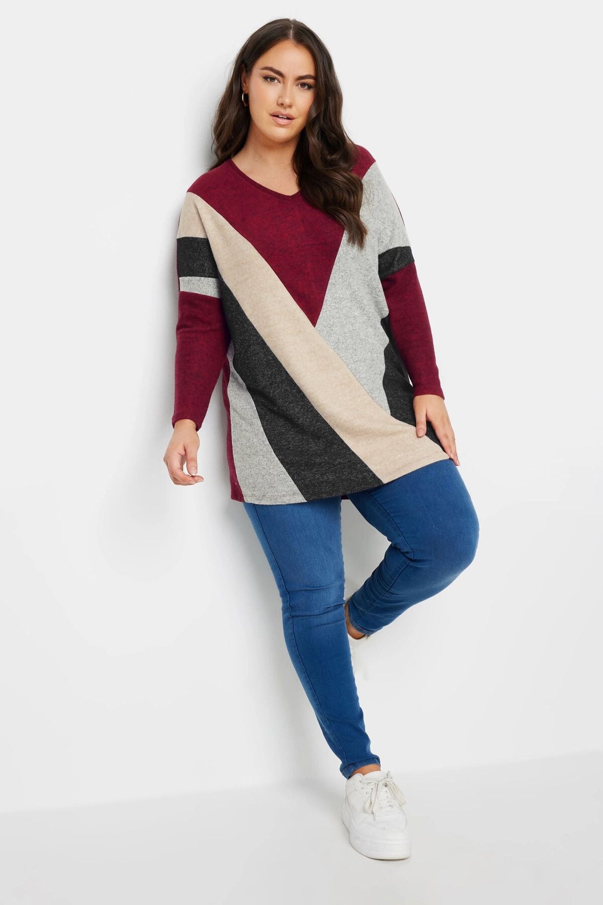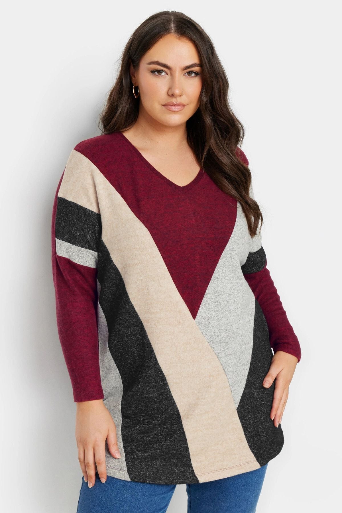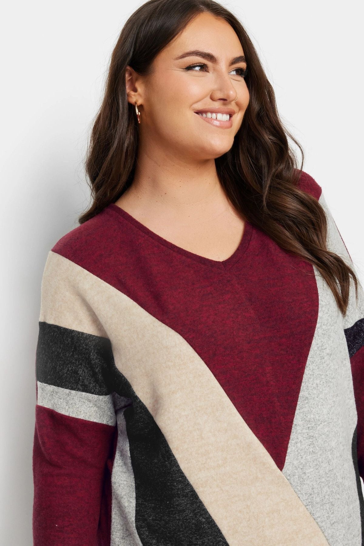 Büyük Beden V Yaka Uzun Kollu Renk Bloklu Kazak 303229