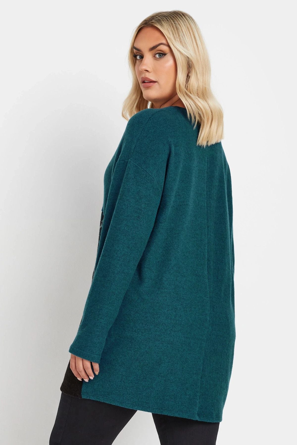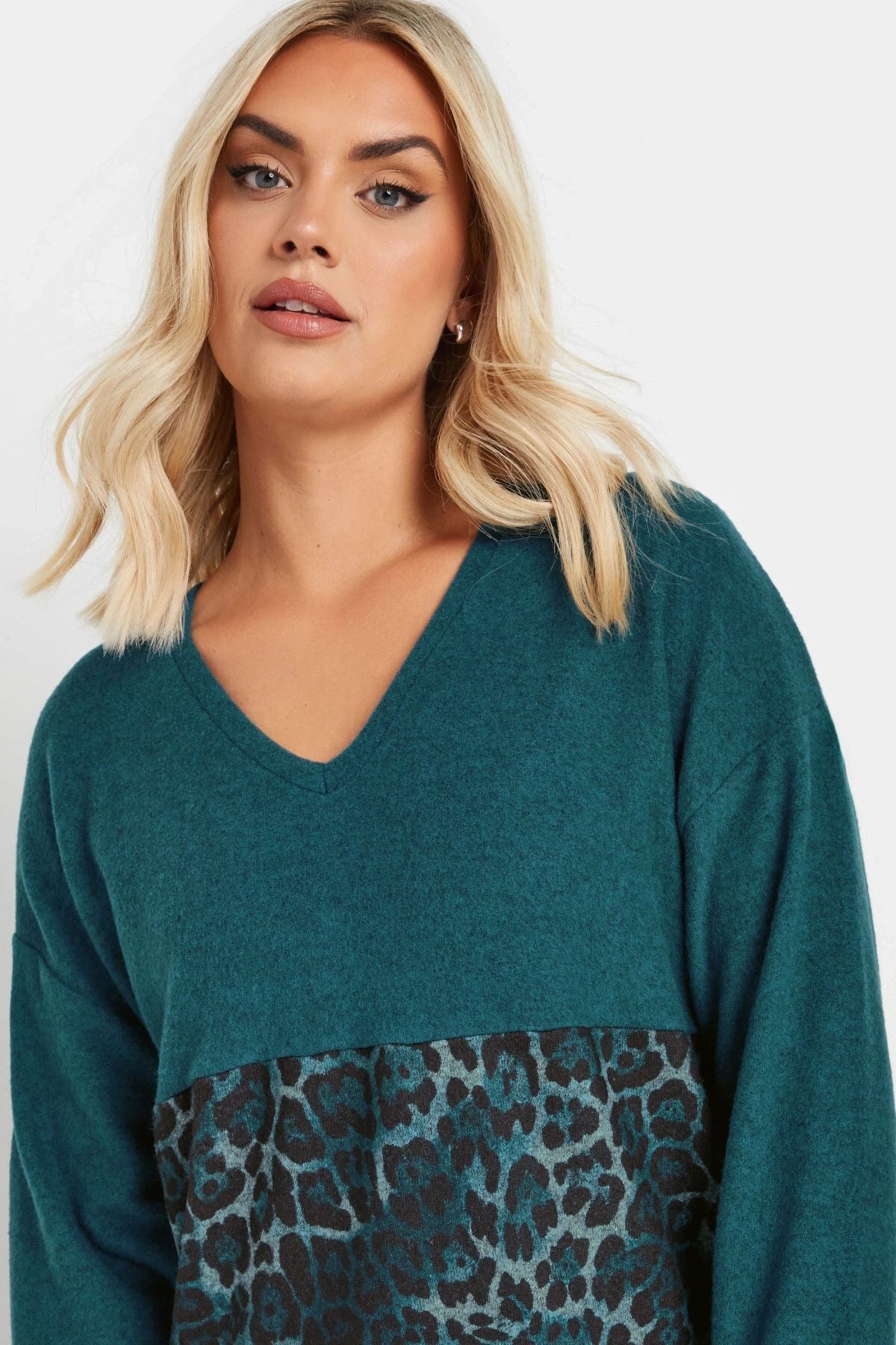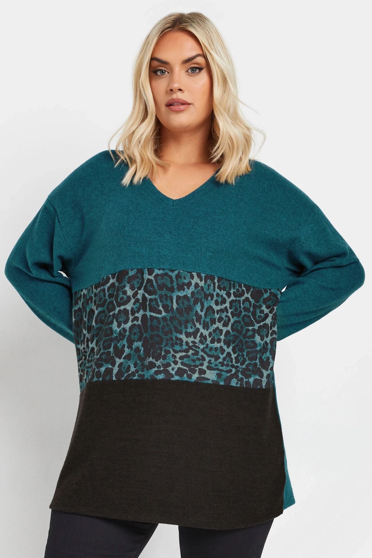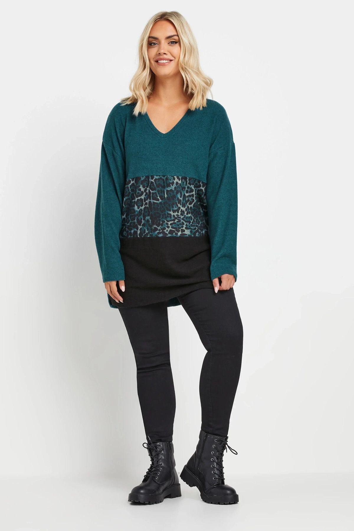 Büyük Beden V Yaka Uzun Kollu Renk Bloklu Kazak 322192