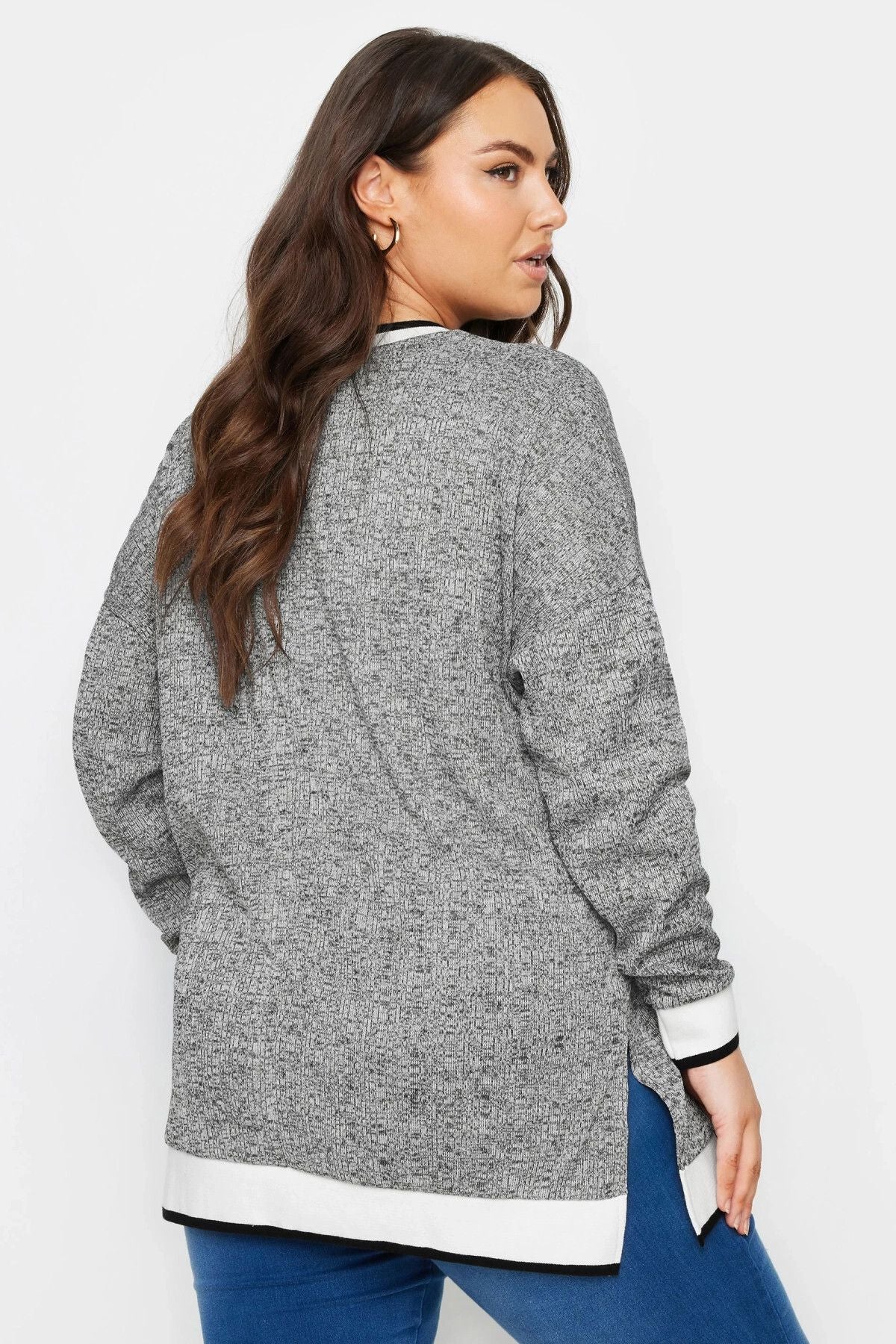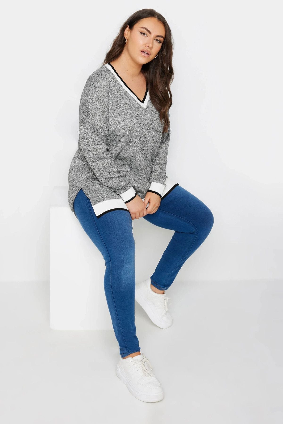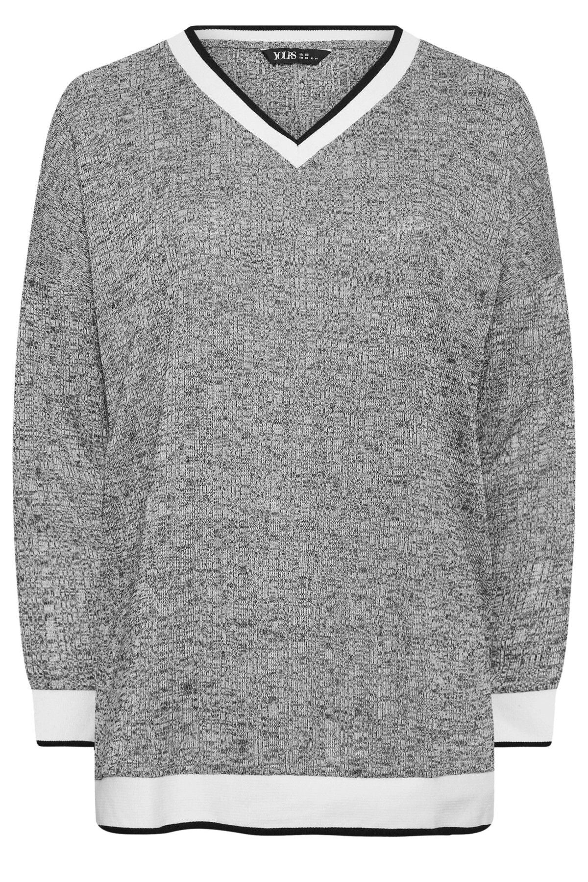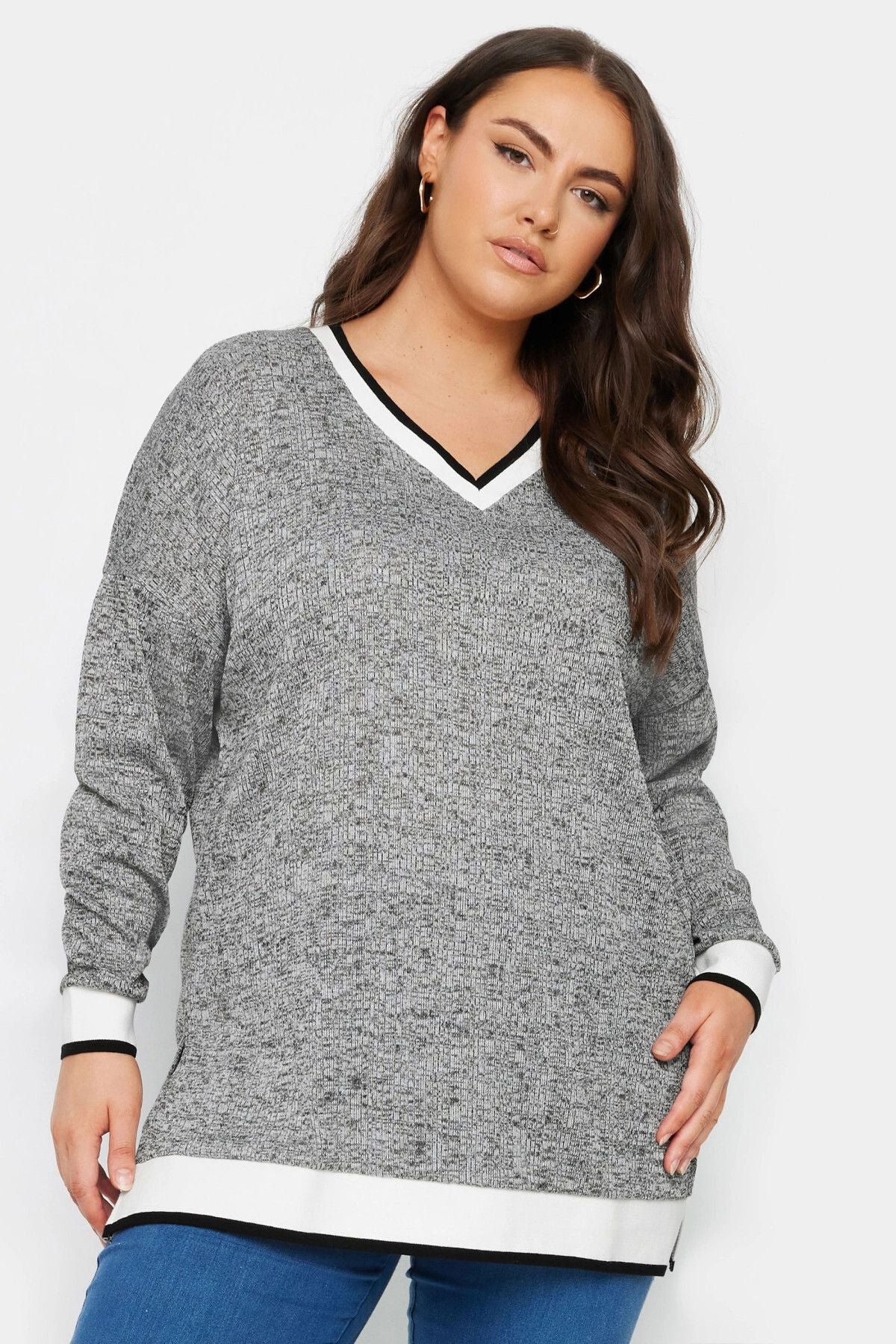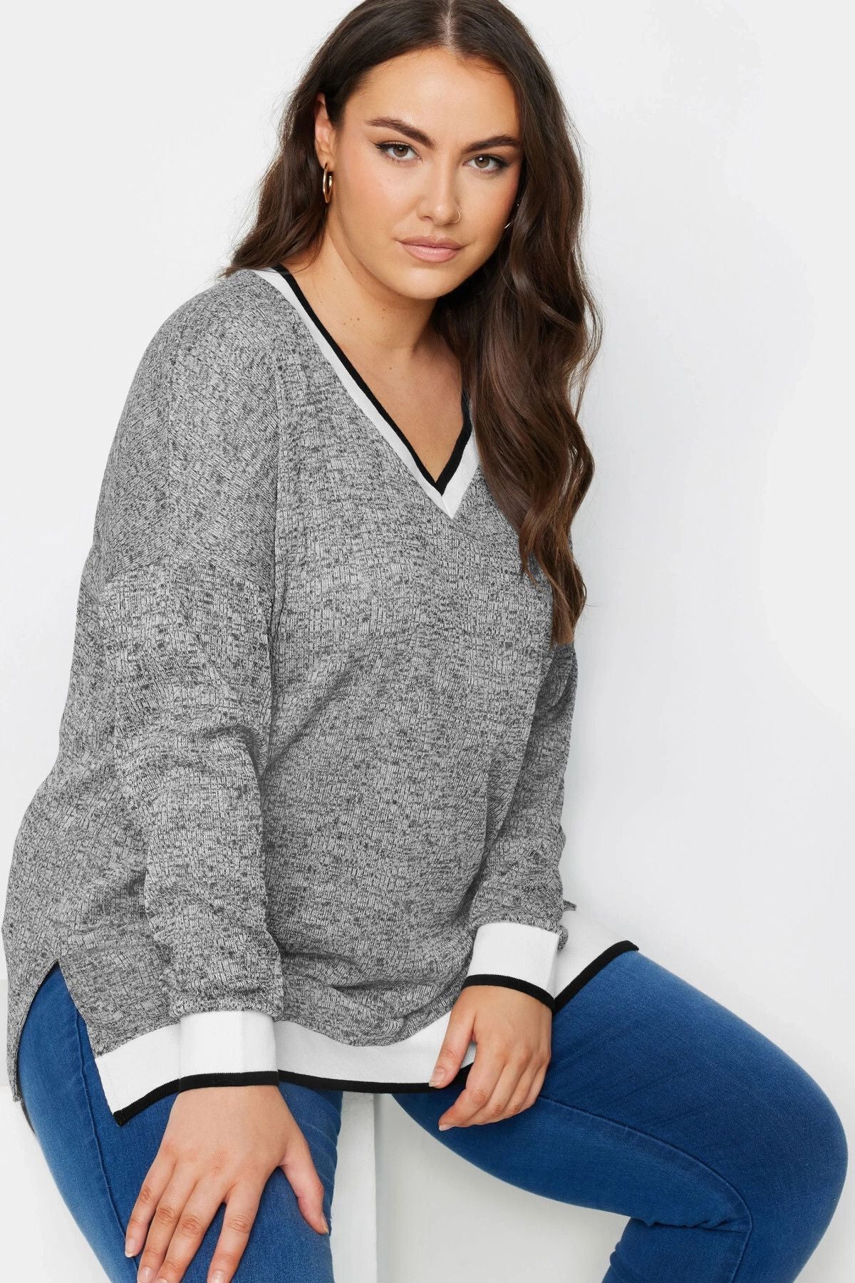 Büyük Beden V Yaka Uzun Kollu Şerit Detaylı Örgü Kazak 303222