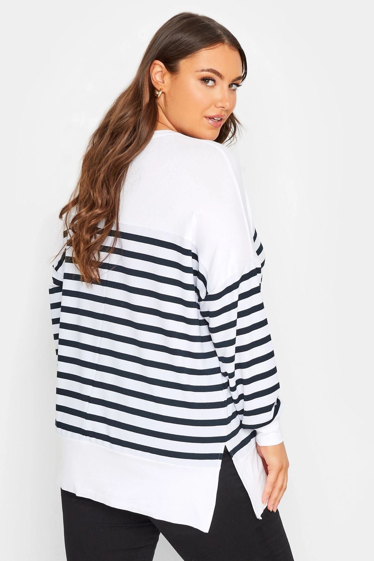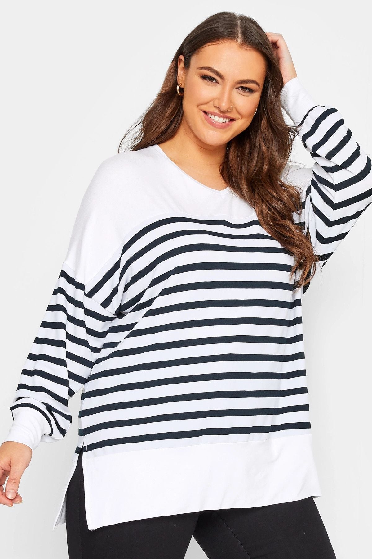 Büyük Beden V Yaka Uzun Kollu Yırtmaç Detaylı T-shirt 301620