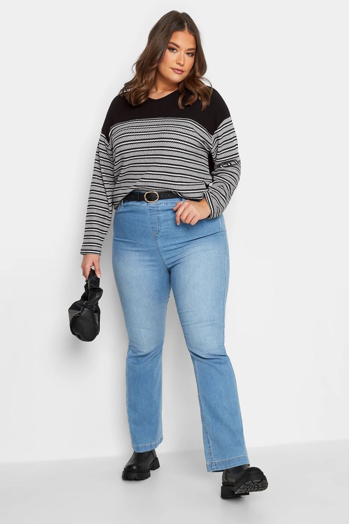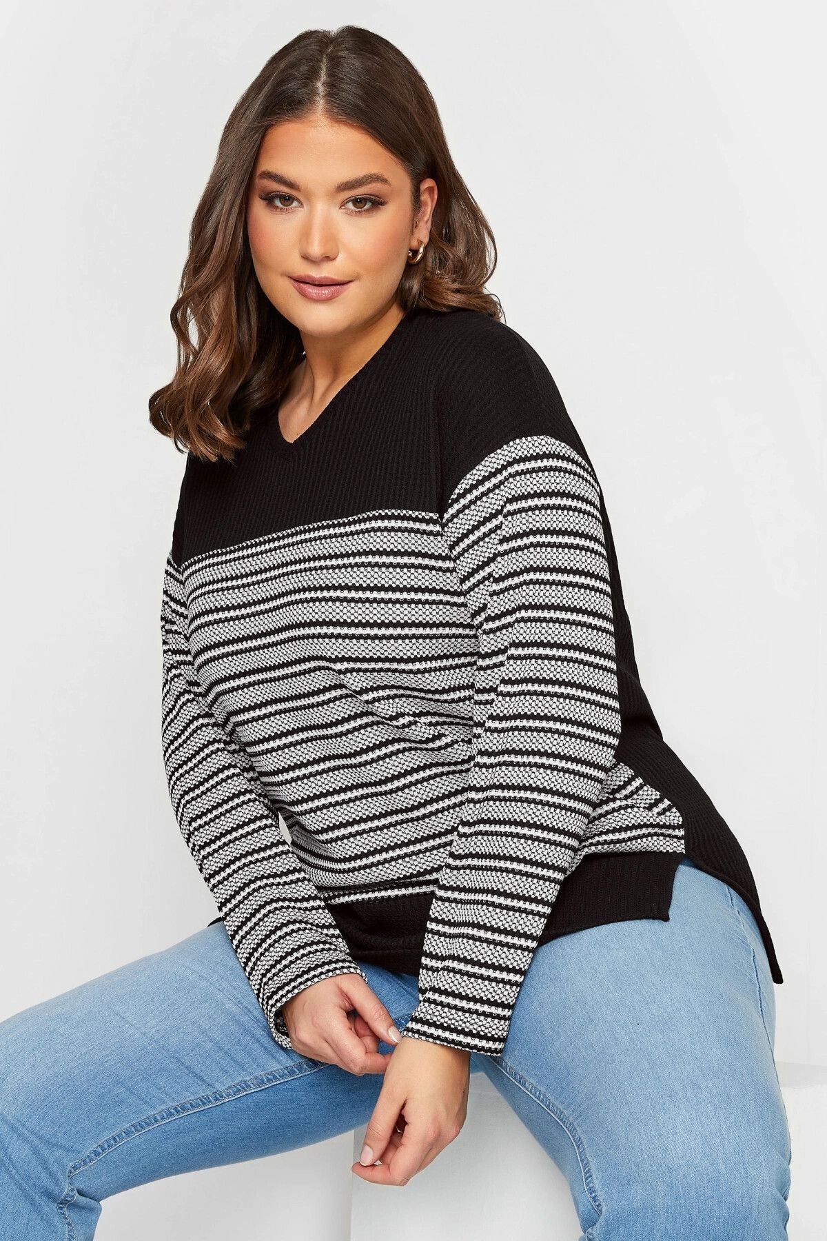 Büyük Beden V Yaka Yanı Yırtmaçlı Uzun Kollu Triko Bluz 301708