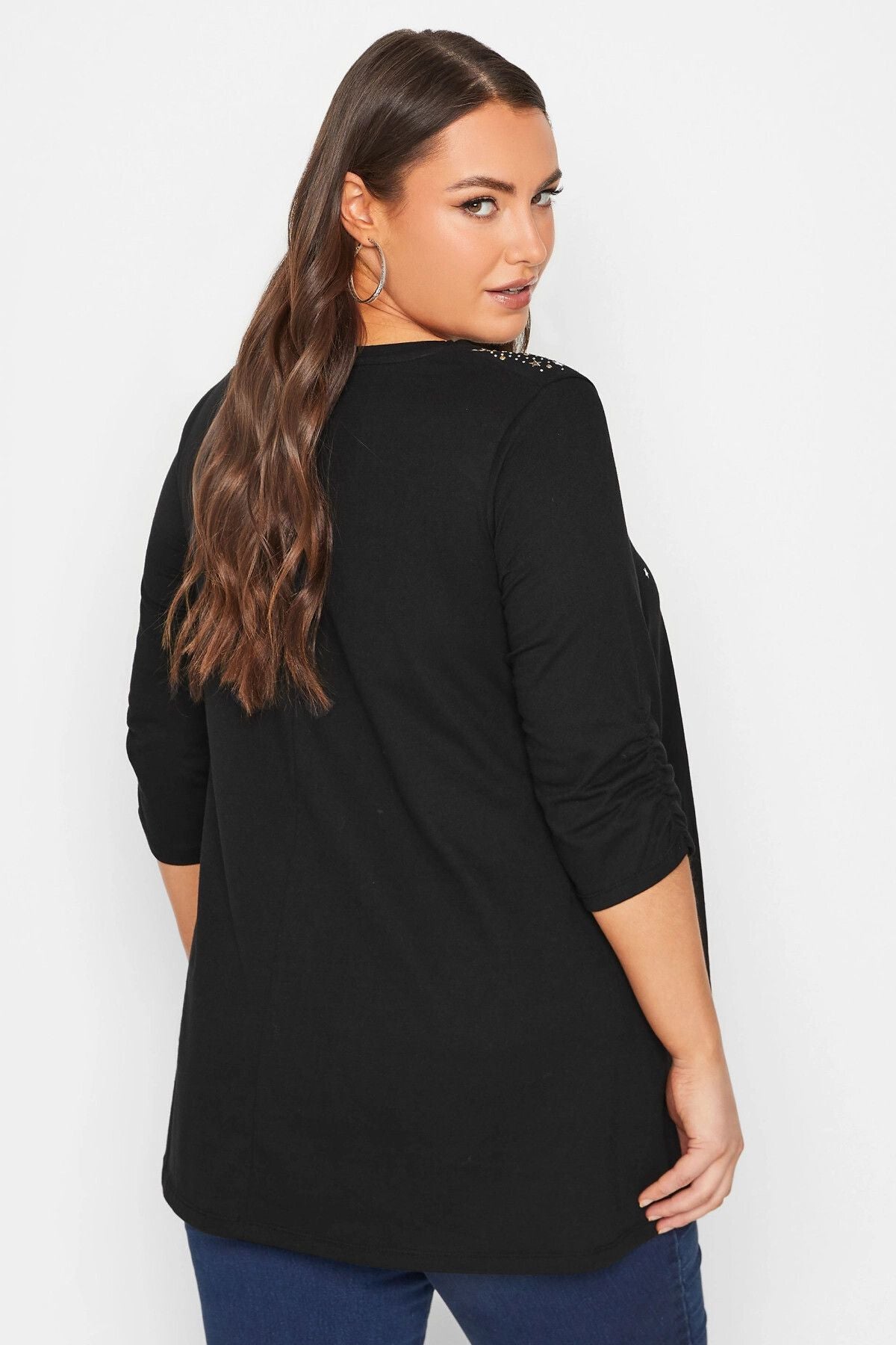 Büyük Beden V Yaka Yarım Kolları Büzgülü Önü İşleme Detaylı Bluz 302045