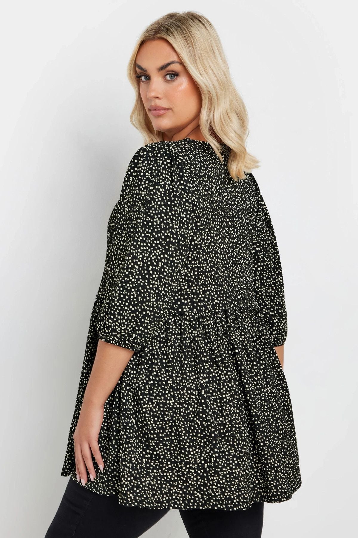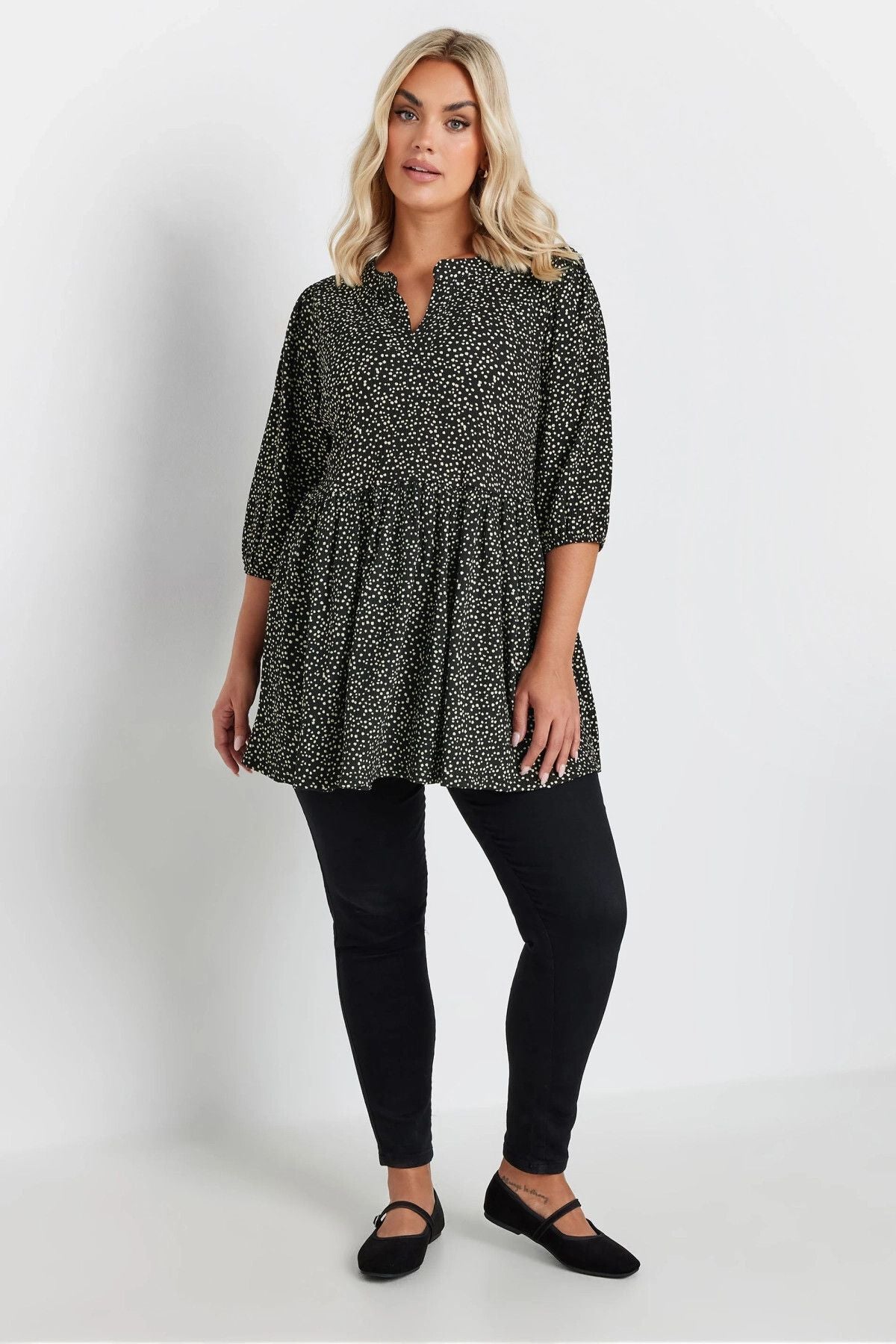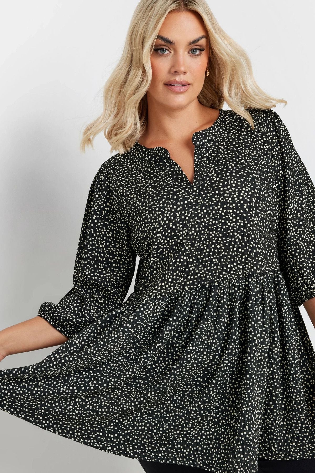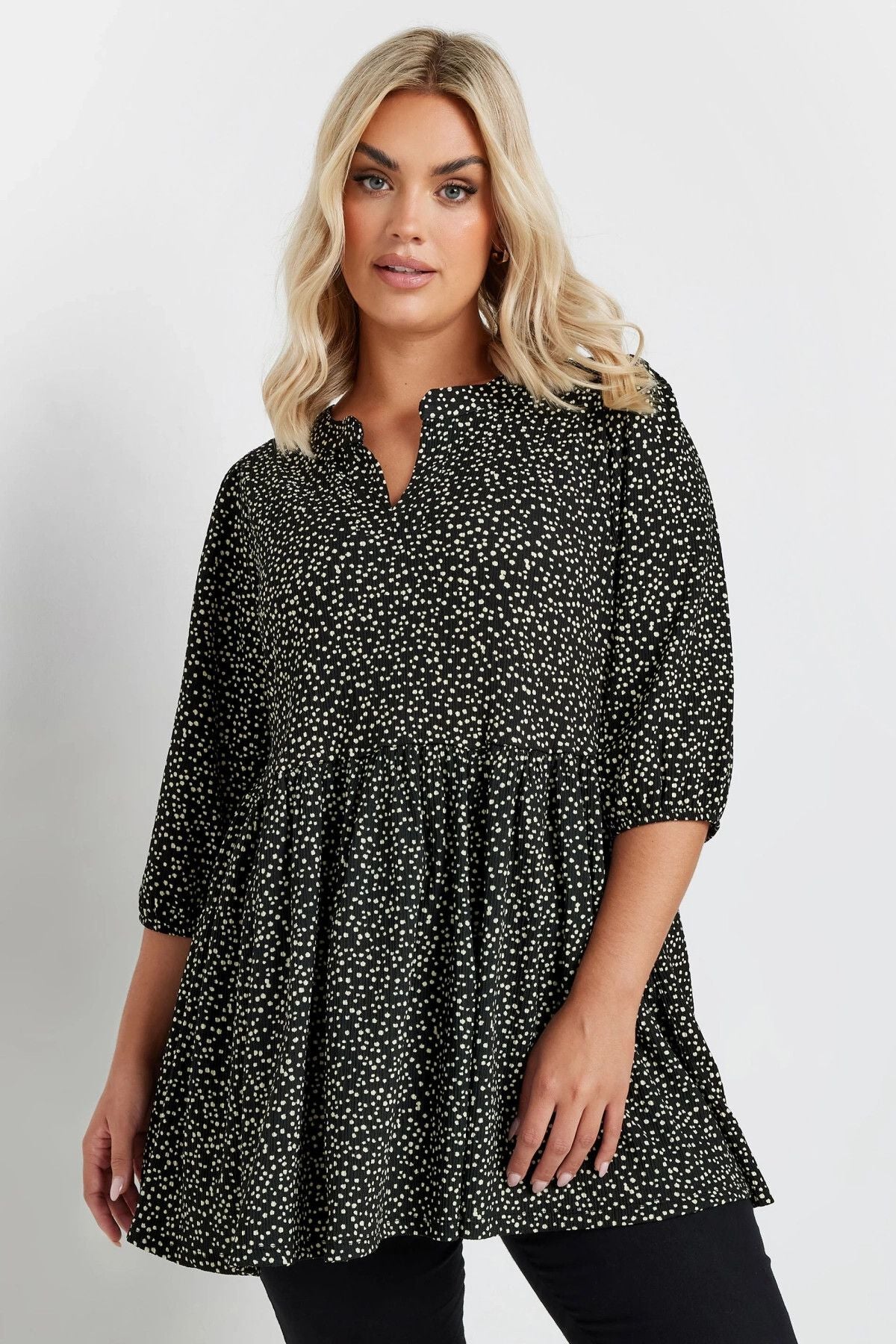 Büyük Beden V Yaka Yarım Kollu Bileği Lastikli Desenli Bluz 322213