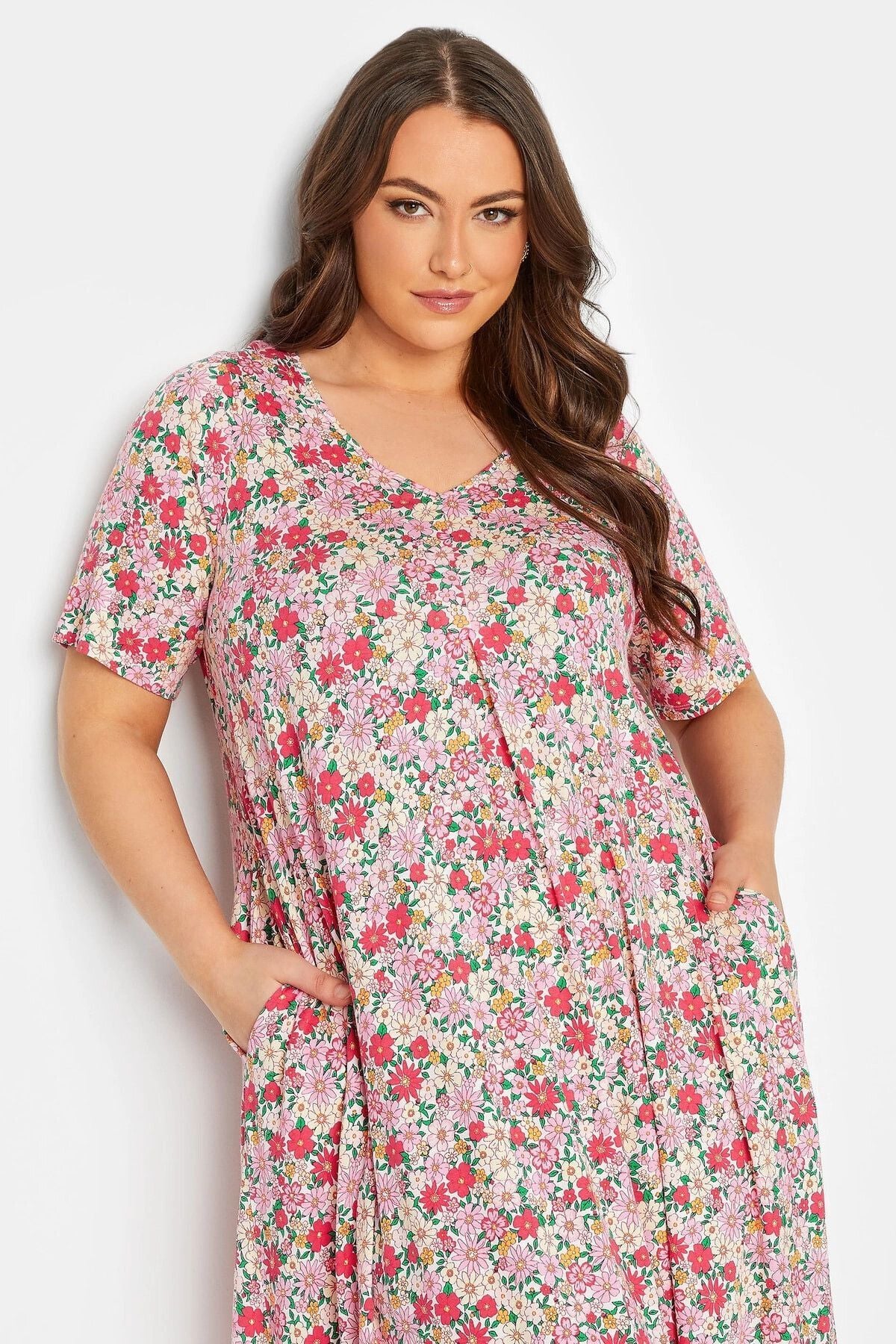 Büyük Beden V Yaka Yarım Kollu Cepli Desenli Uzun Elbise 137278