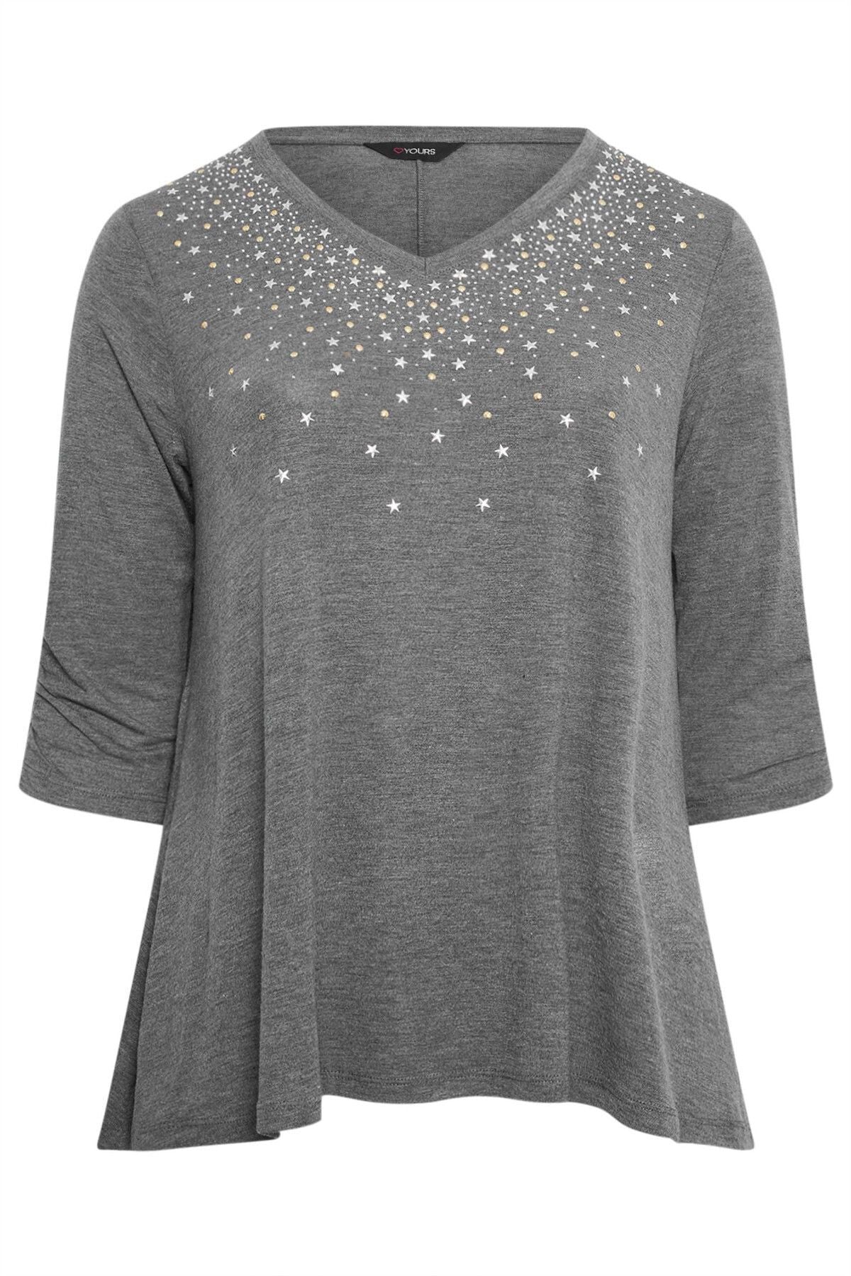Büyük Beden V Yaka Yıldız Zımba Detaylı Yarım Kollu Bluz 302677