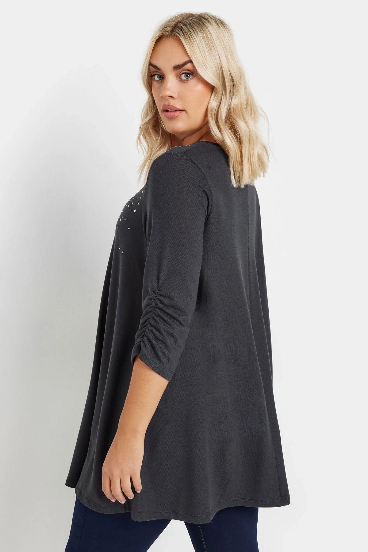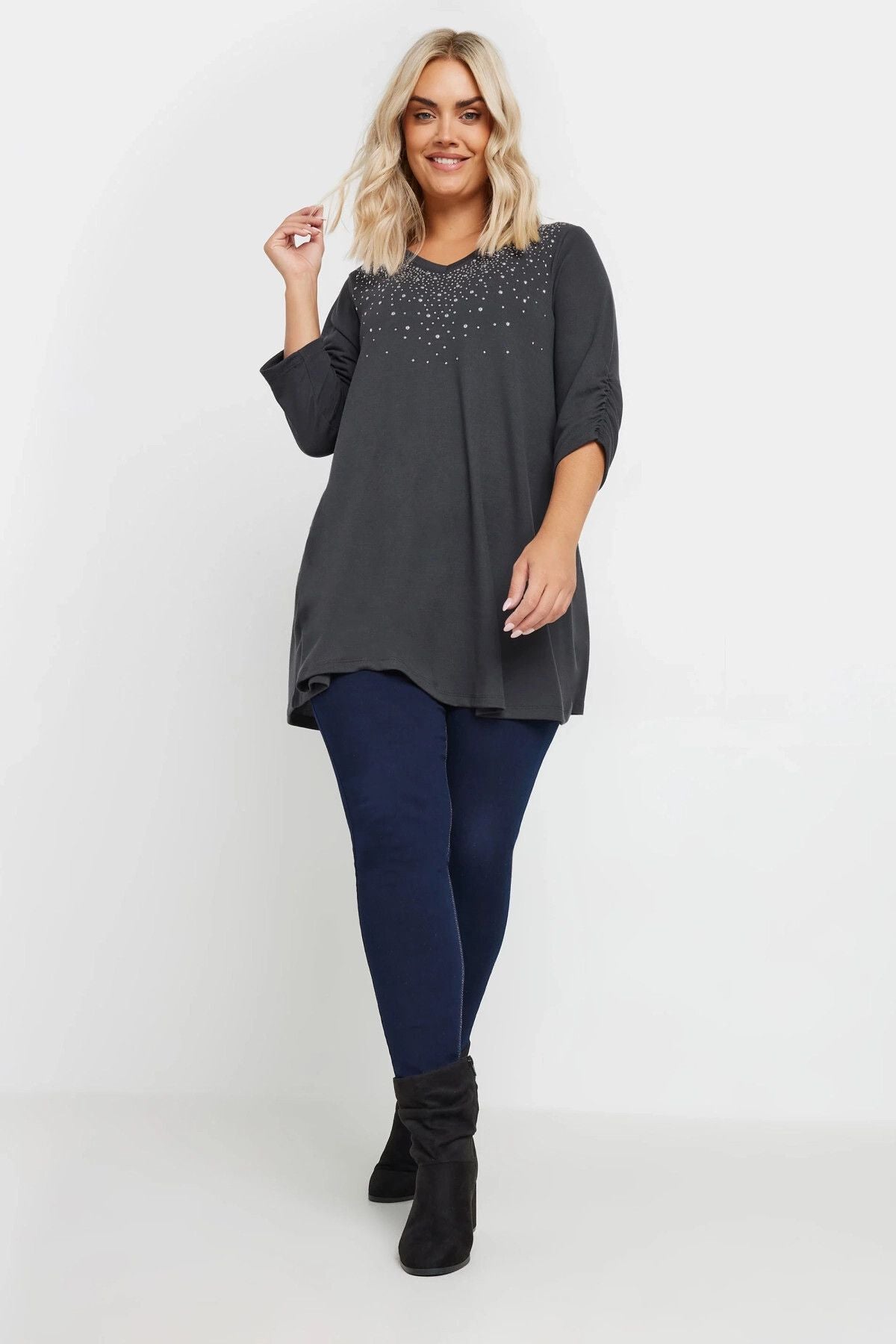 Büyük Beden V Yakası Taş İşlemeli Kolları Büzgülü Bluz 322226